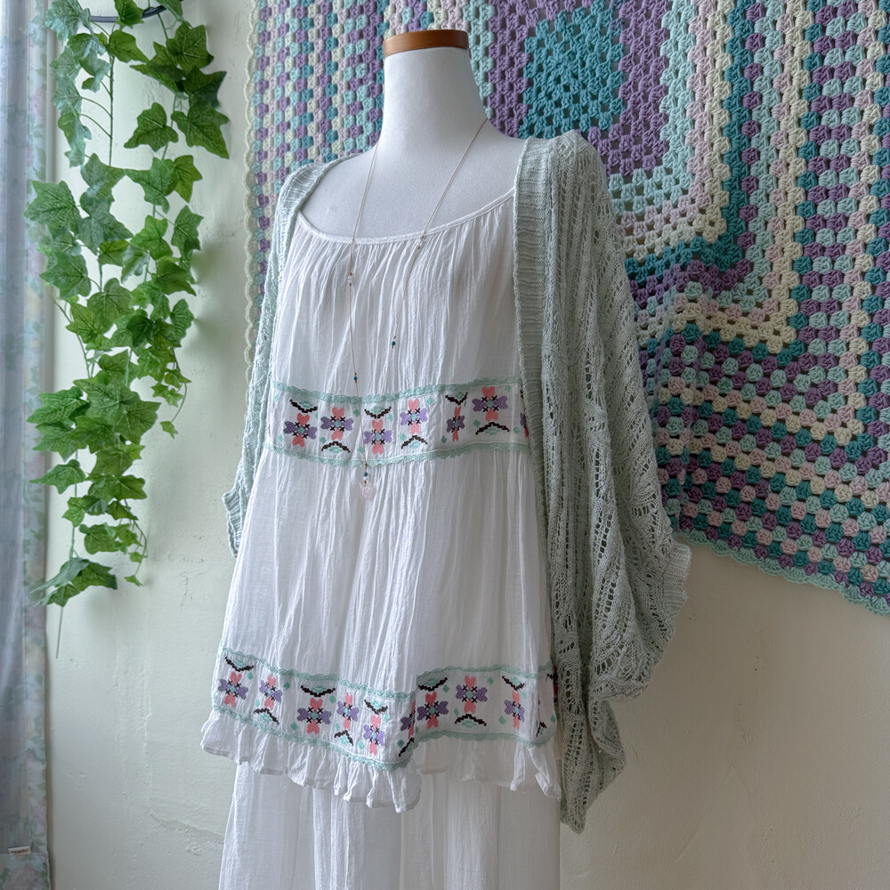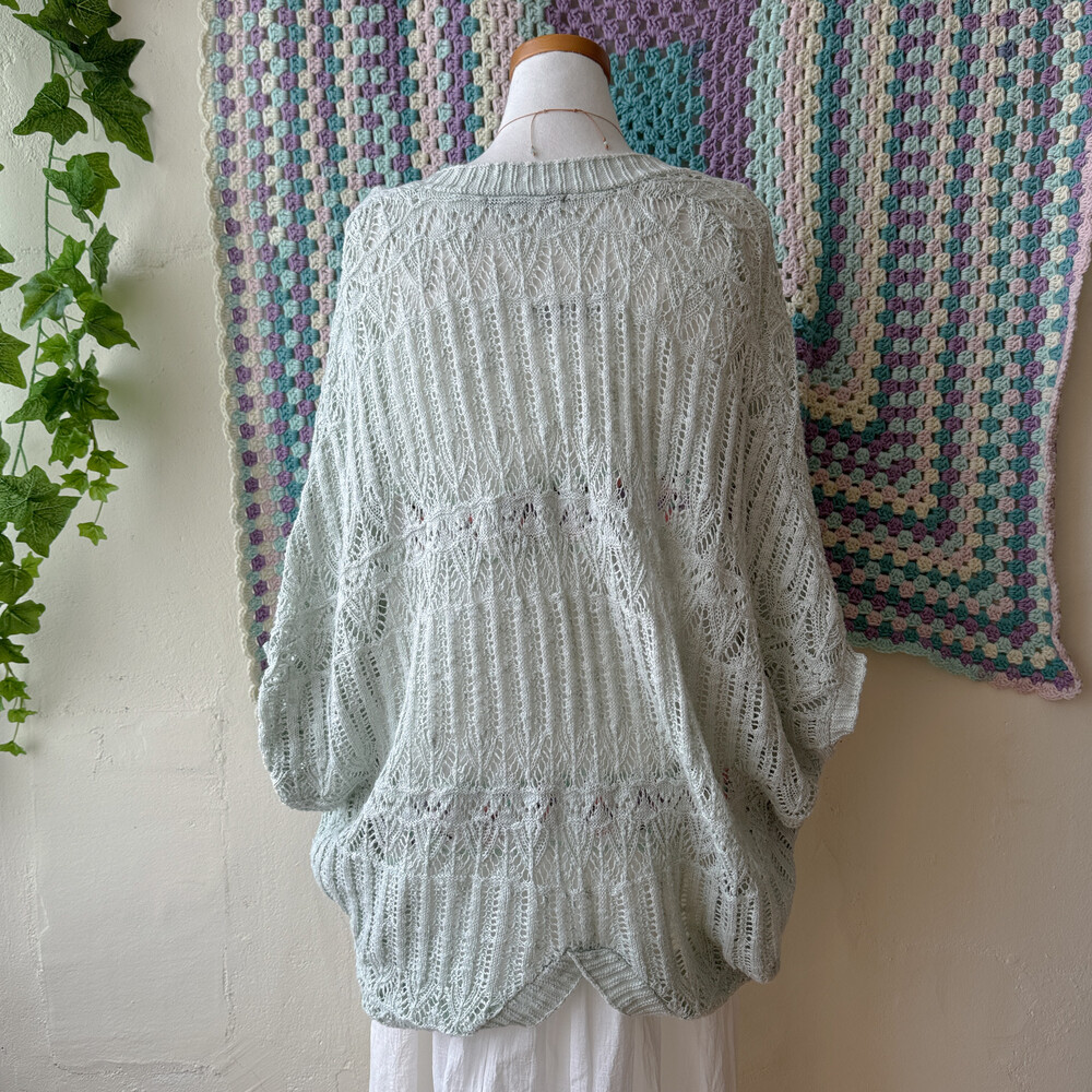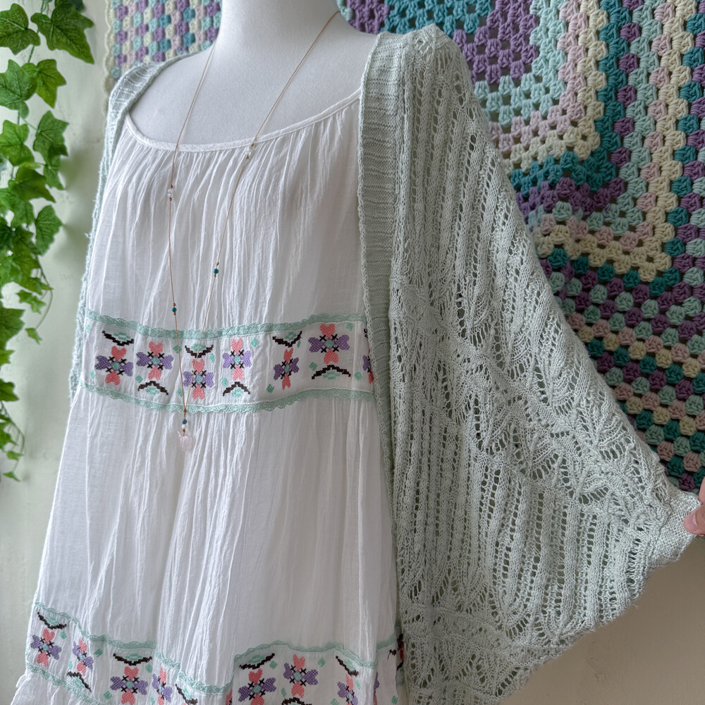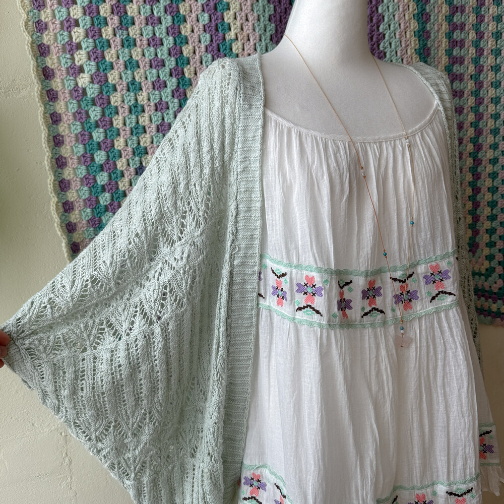 민트 색감의 크로셰 롱 볼레로 가디건이에요