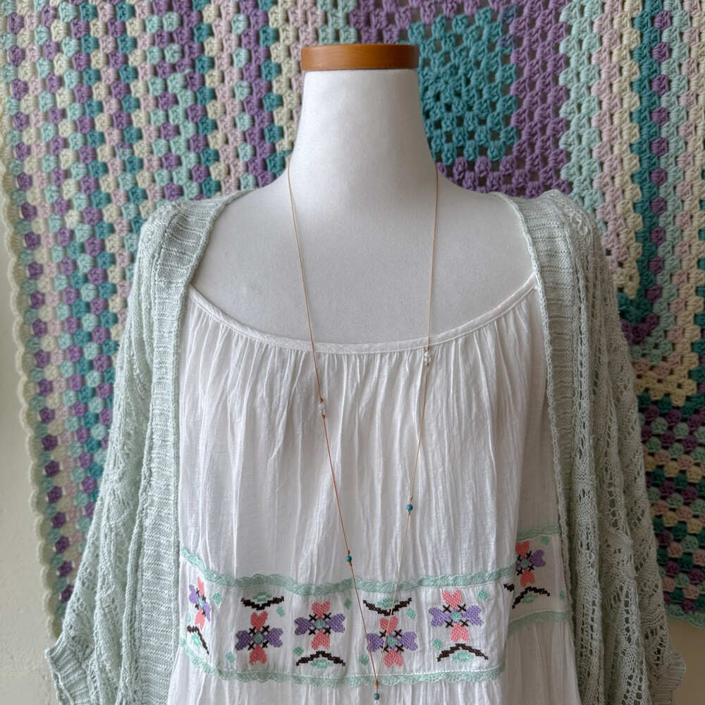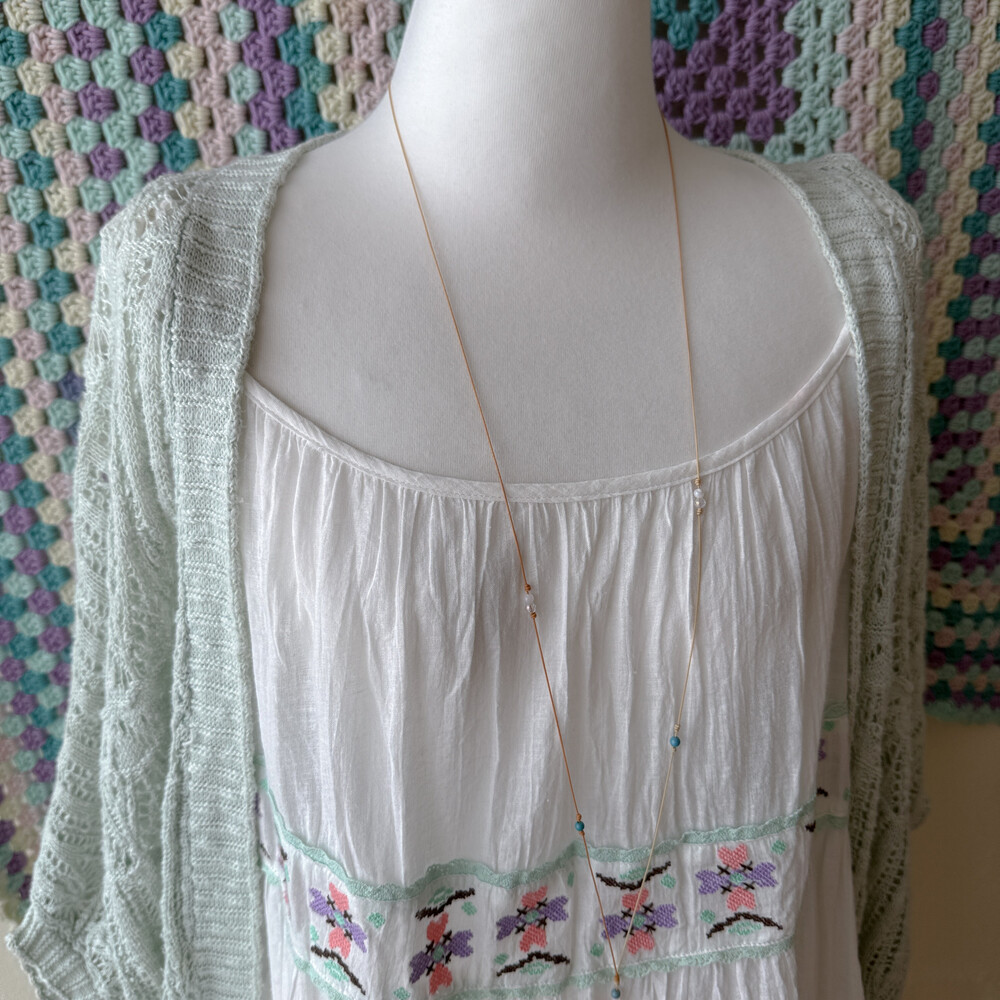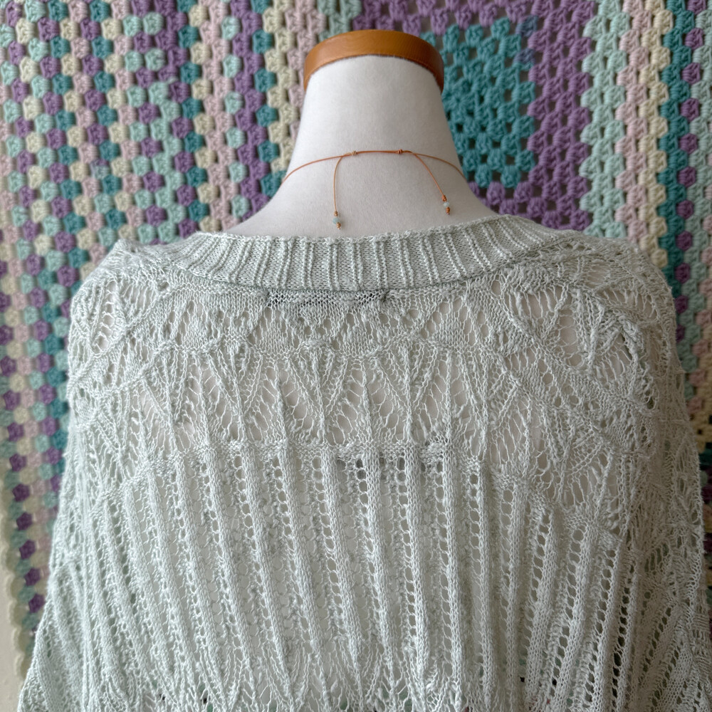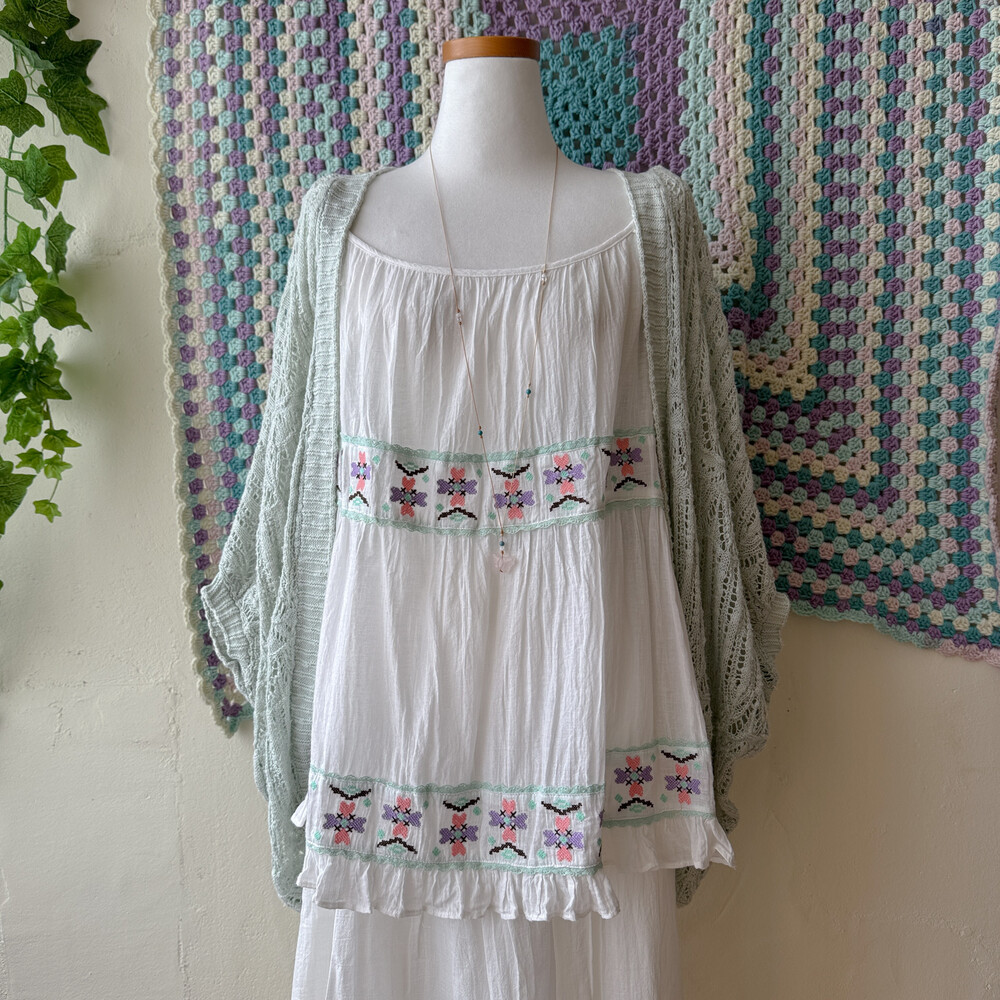 민트 색감의 크로셰 롱 볼레로 가디건이에요