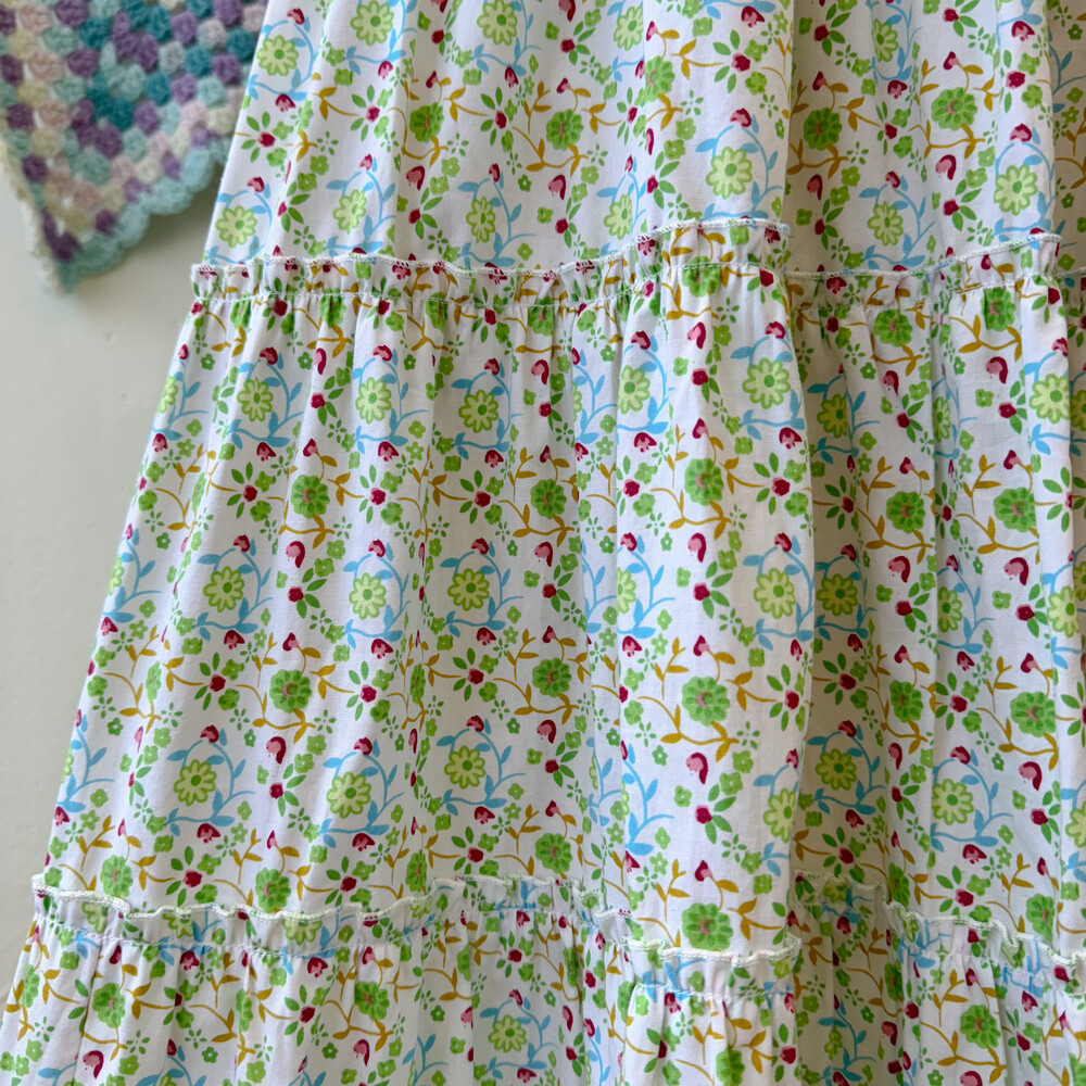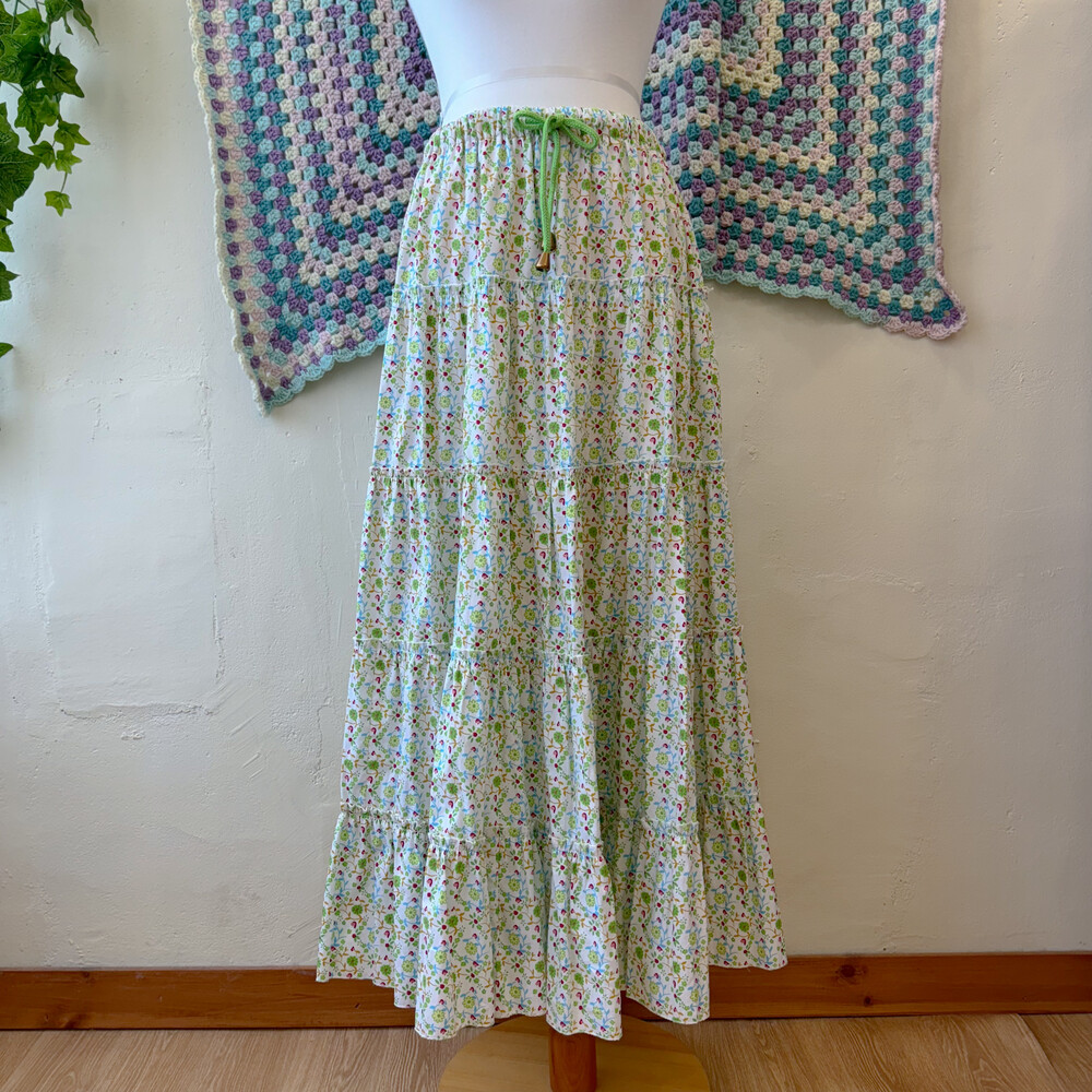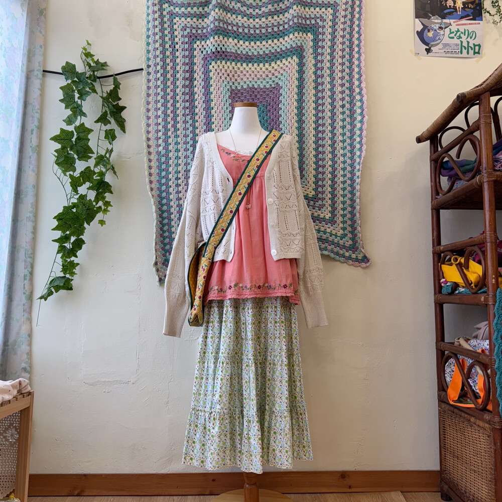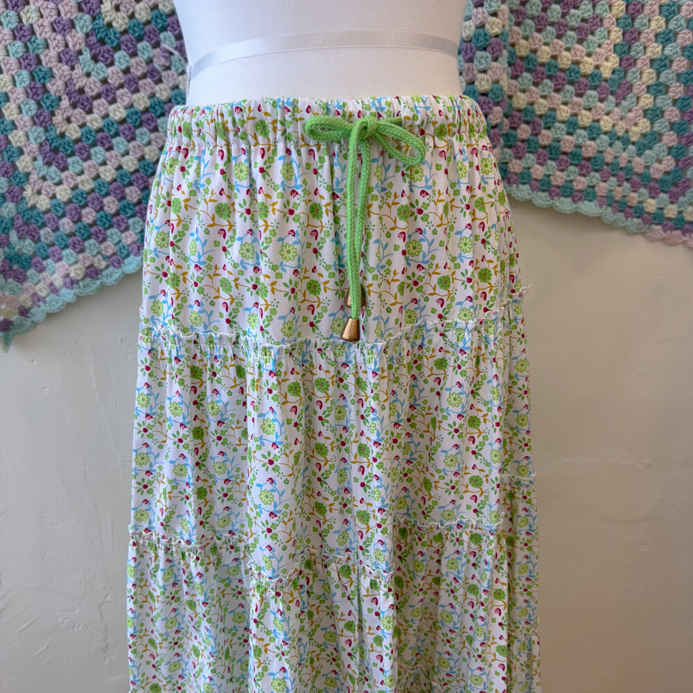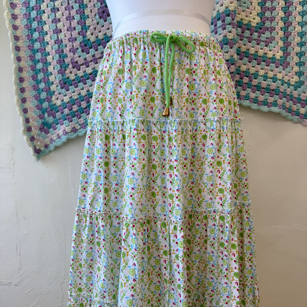 그리너리한 색감의 꽃무늬 코튼 스커트예요