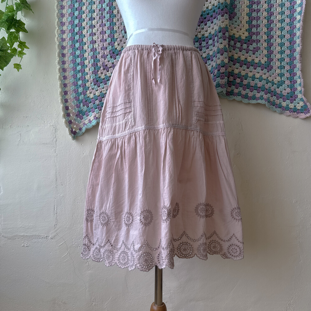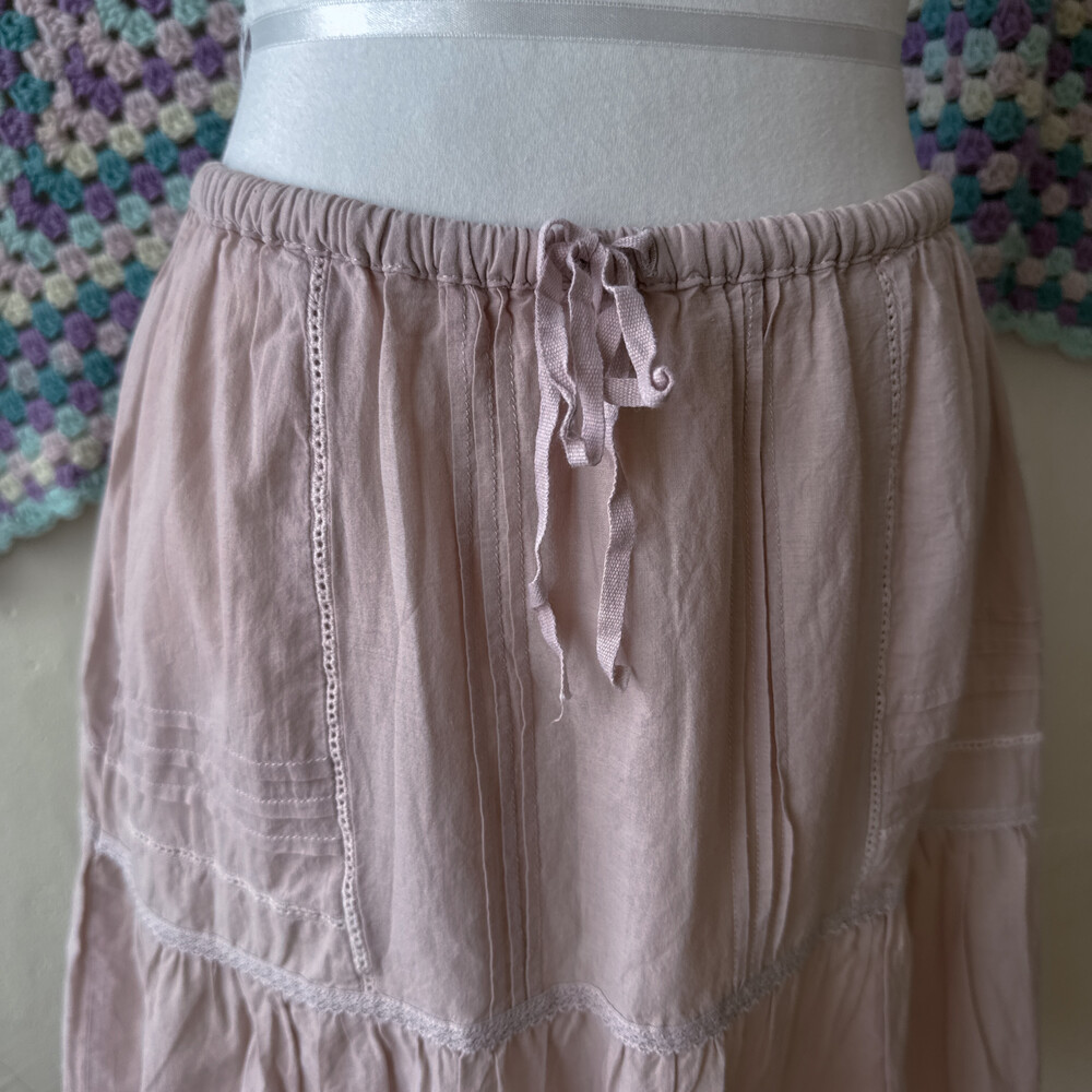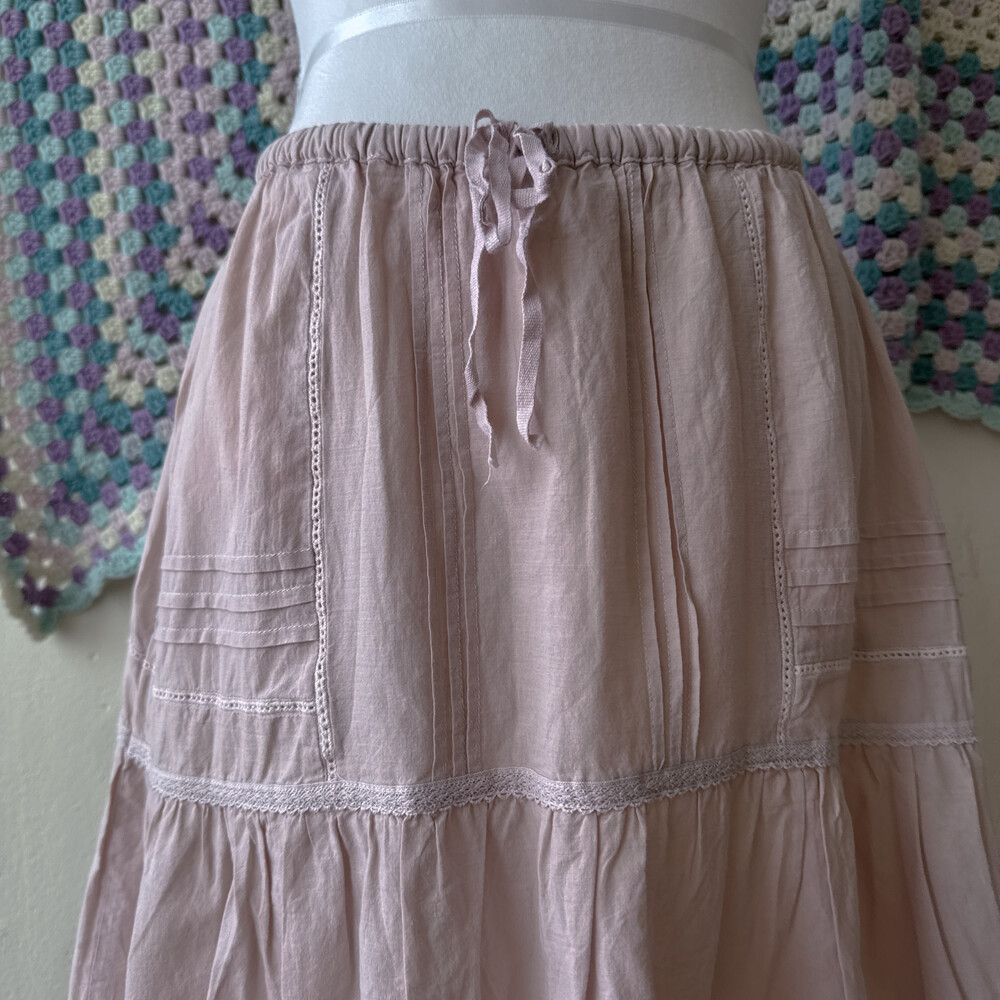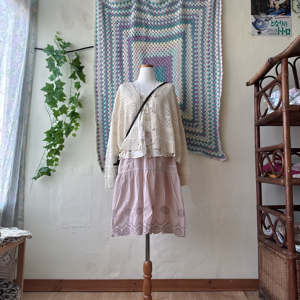 핑크 색감의 미디 코튼 스커트예요