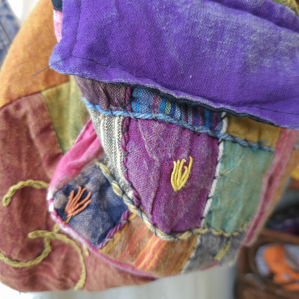 코튼 소재로 추정되고, 가방 끈 길이 조절 가능해요:)
