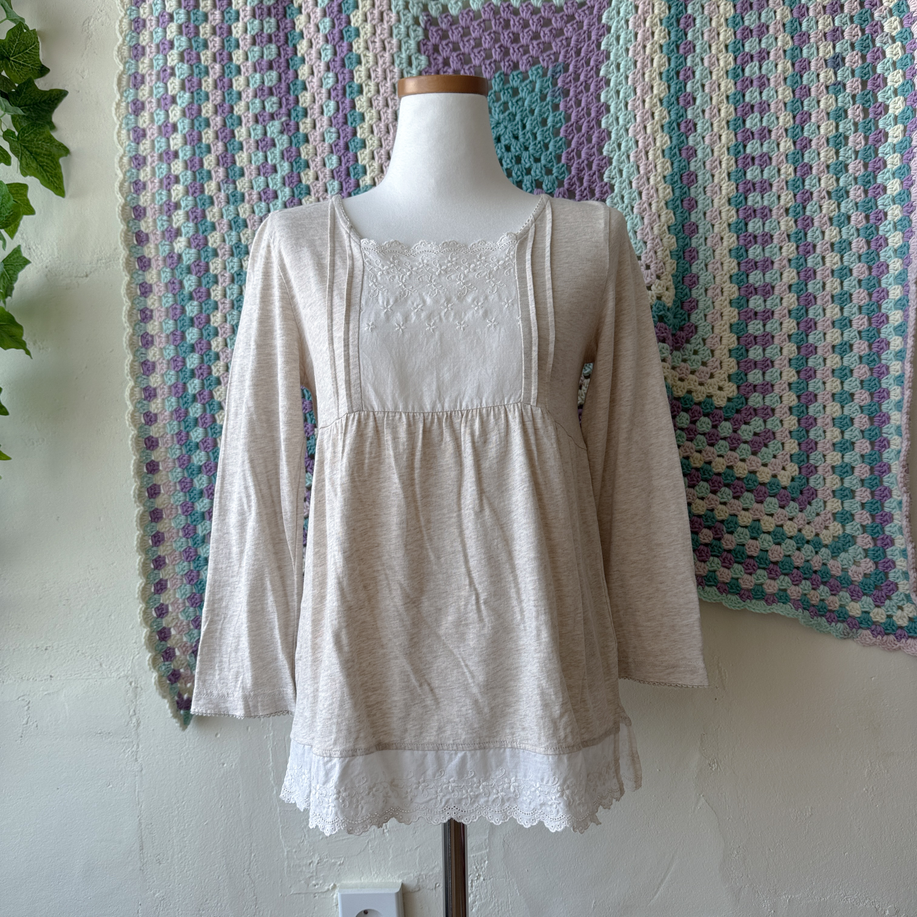 sm2의 오트밀 색감의 긴소매 티셔츠예요