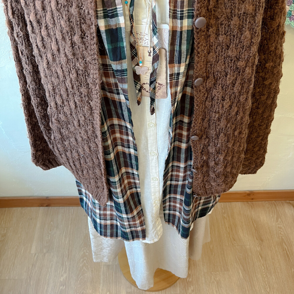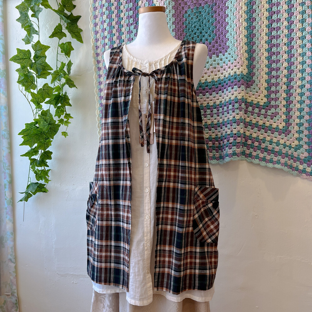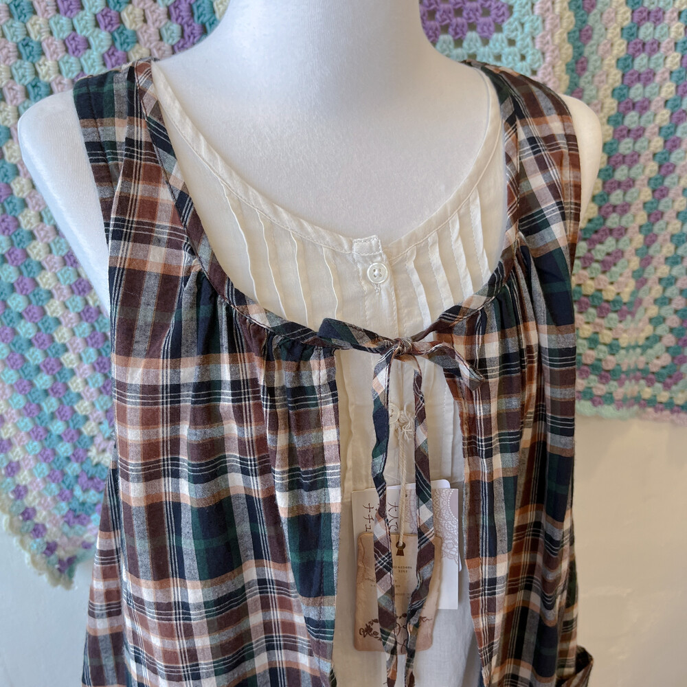 brown&green check layered tunic ops