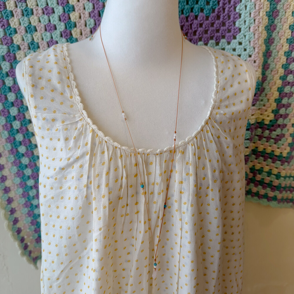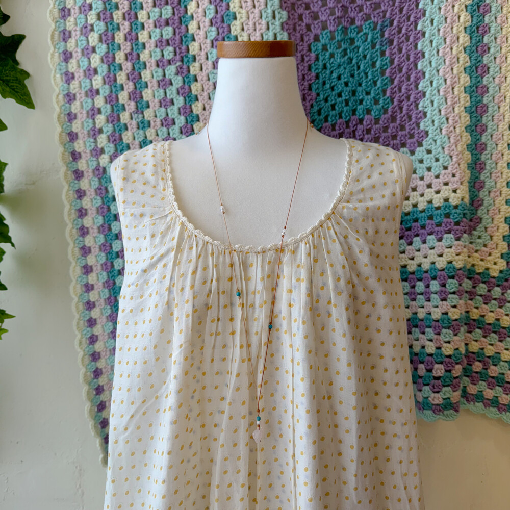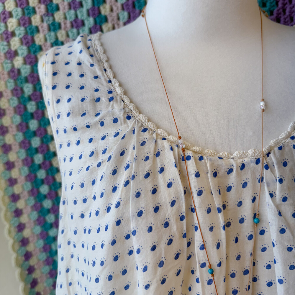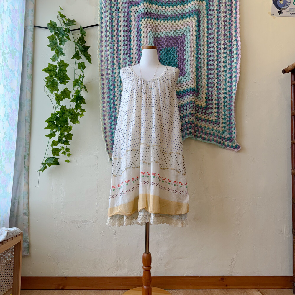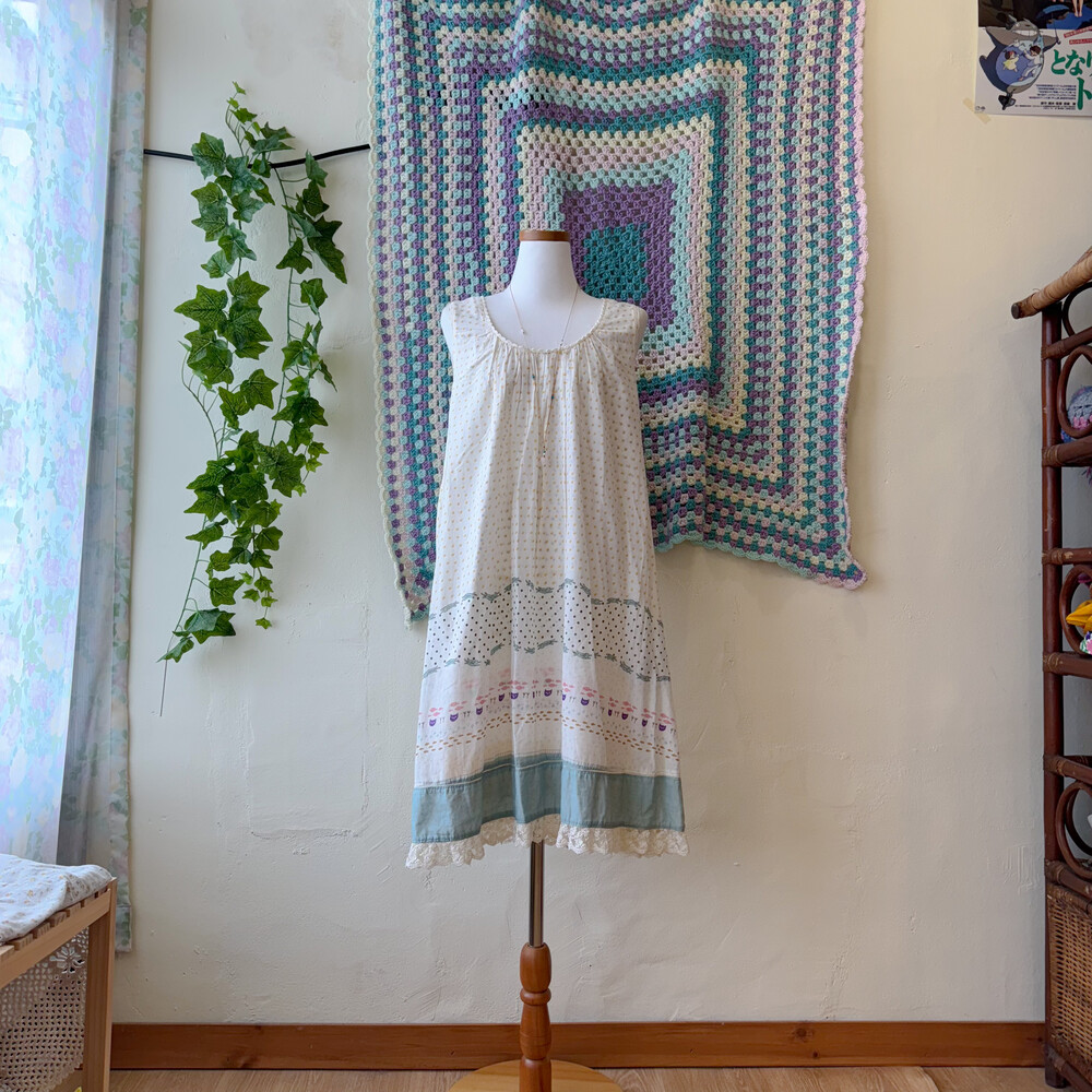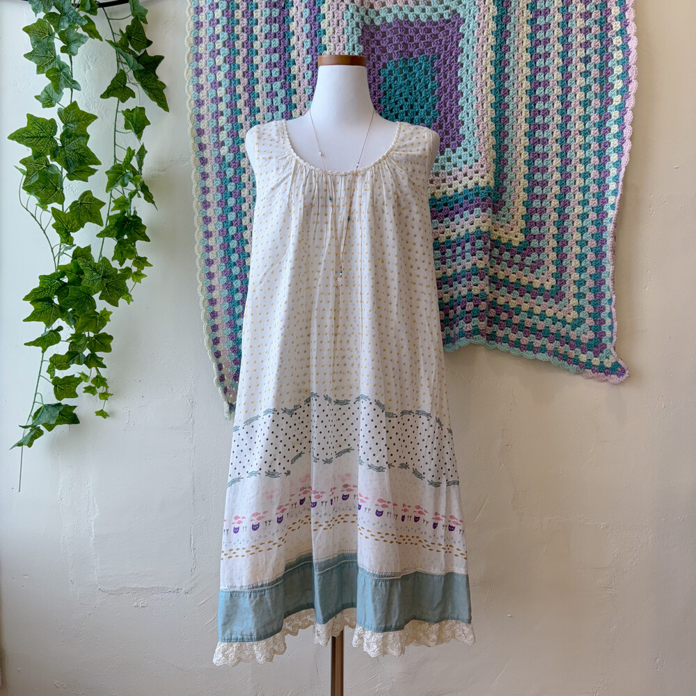 도트, 고양이 패턴의 민소매 코튼 원피스예요