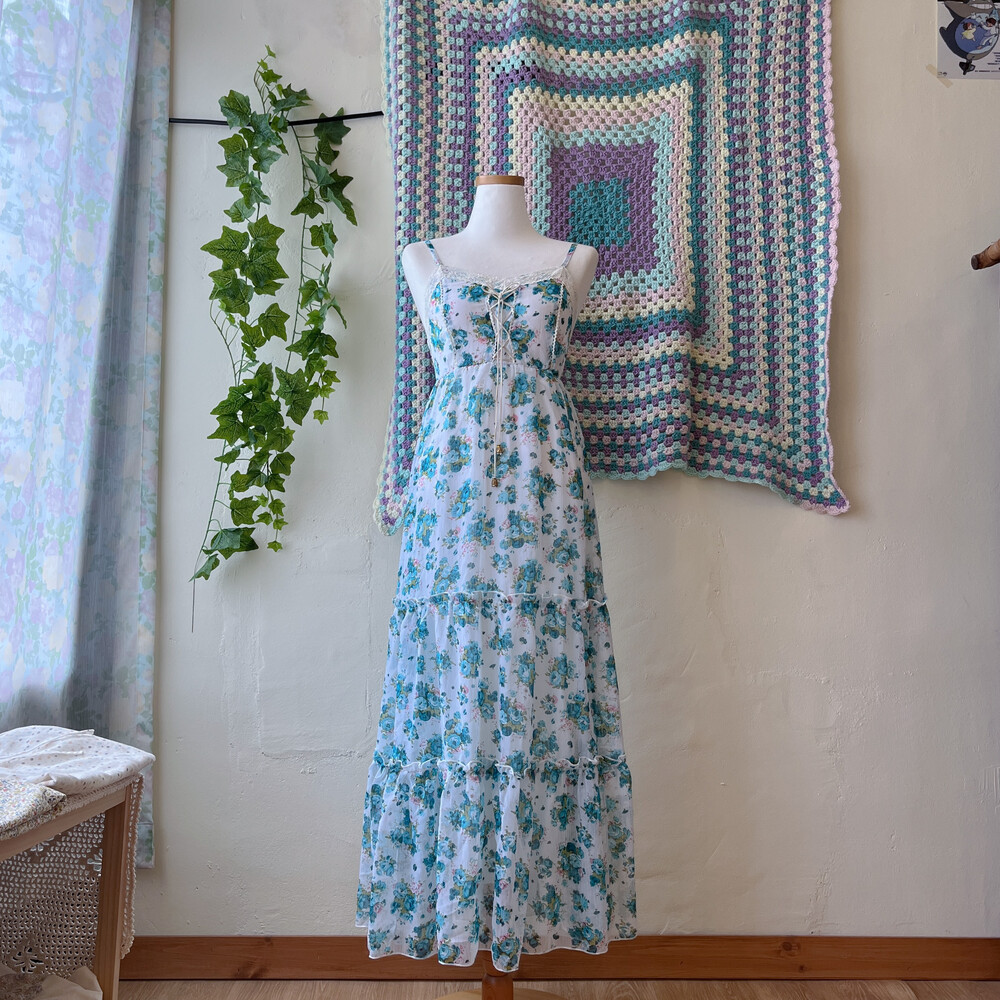 blue rose chiffon eyelet long ops