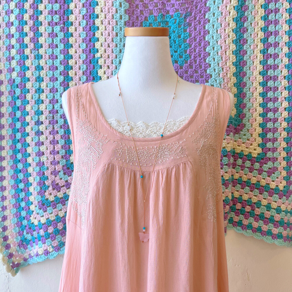cozy pink embroidery sleeveless ops