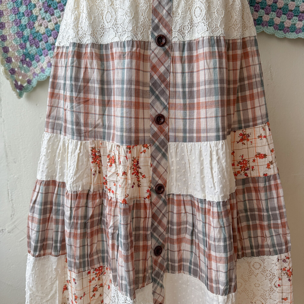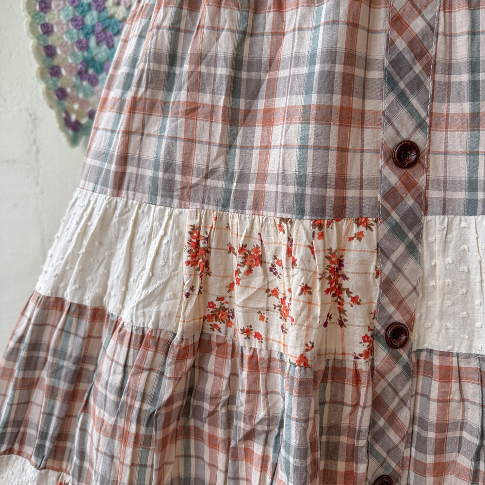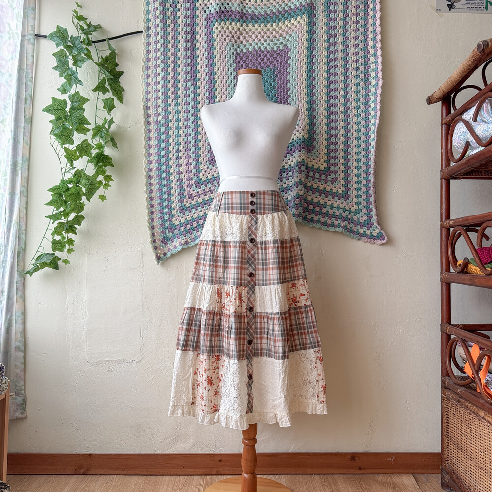 웜한 색감의 패치워크 스커트예요