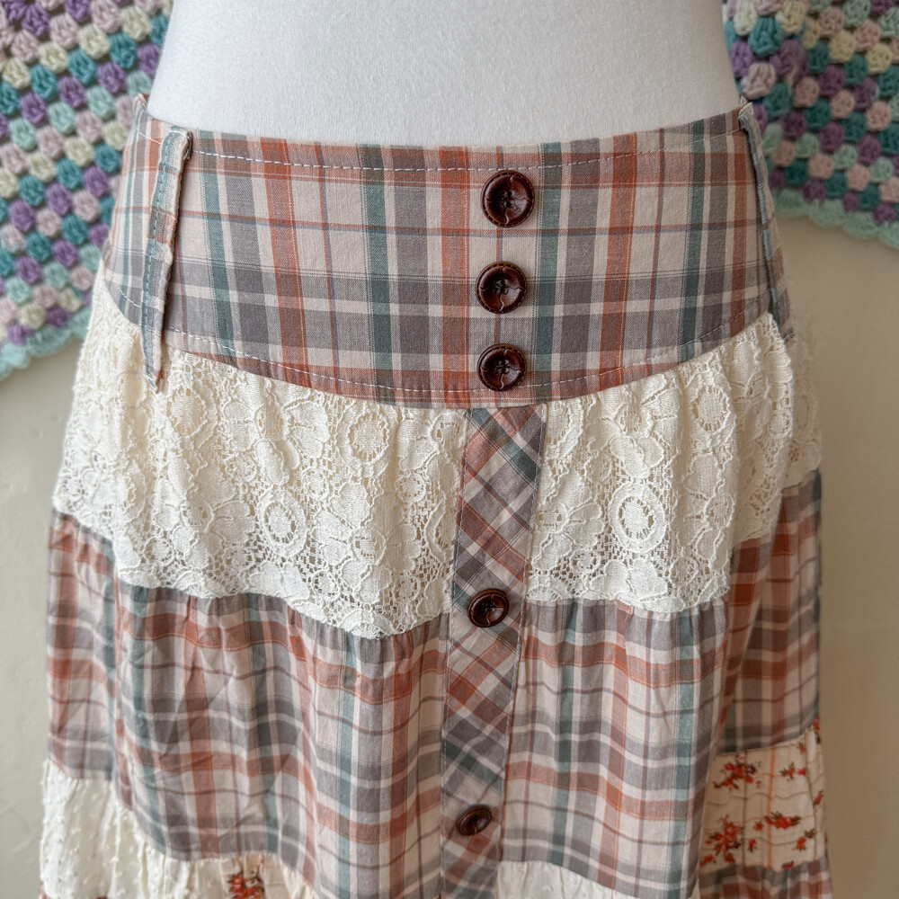 warm check&lace patch sk