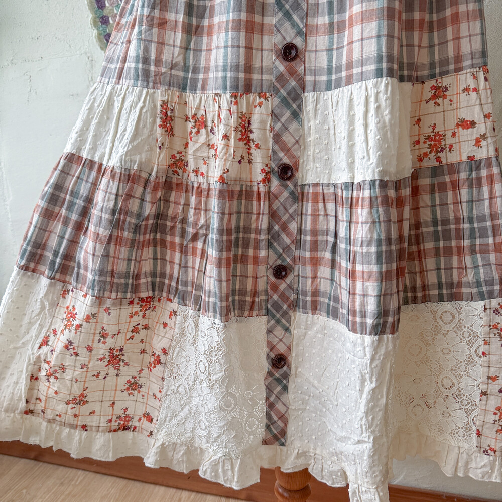 체크, 꽃무늬, 레이스 패치들이 조합되어 있고