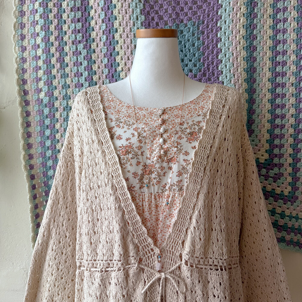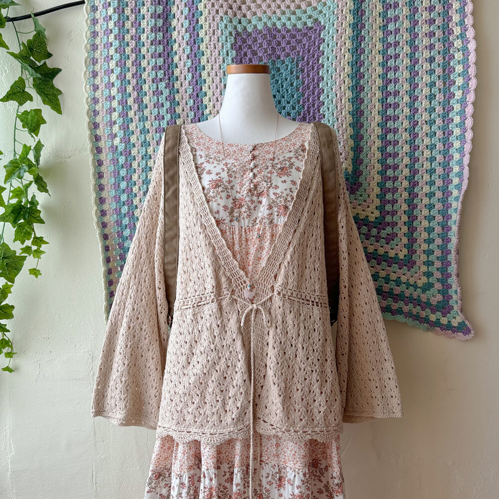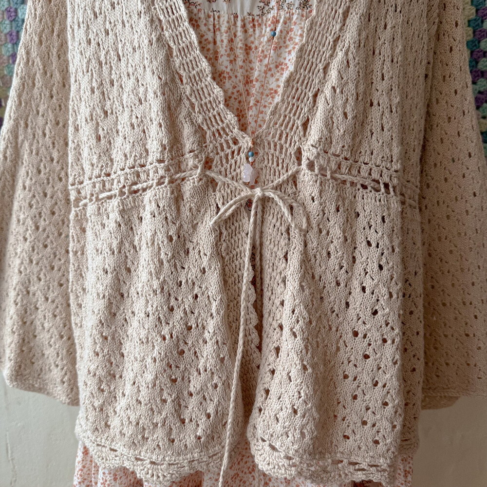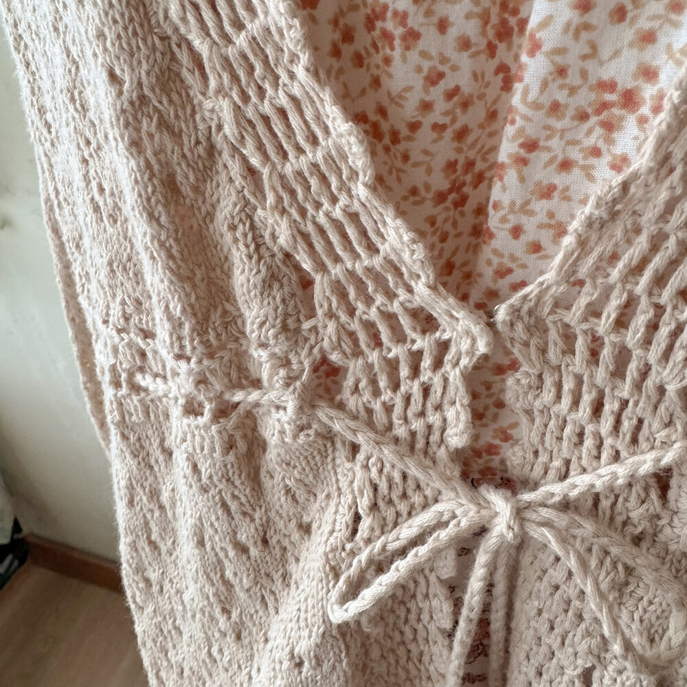 연베이지 색감의 펀칭 크로셰 가디건이에요