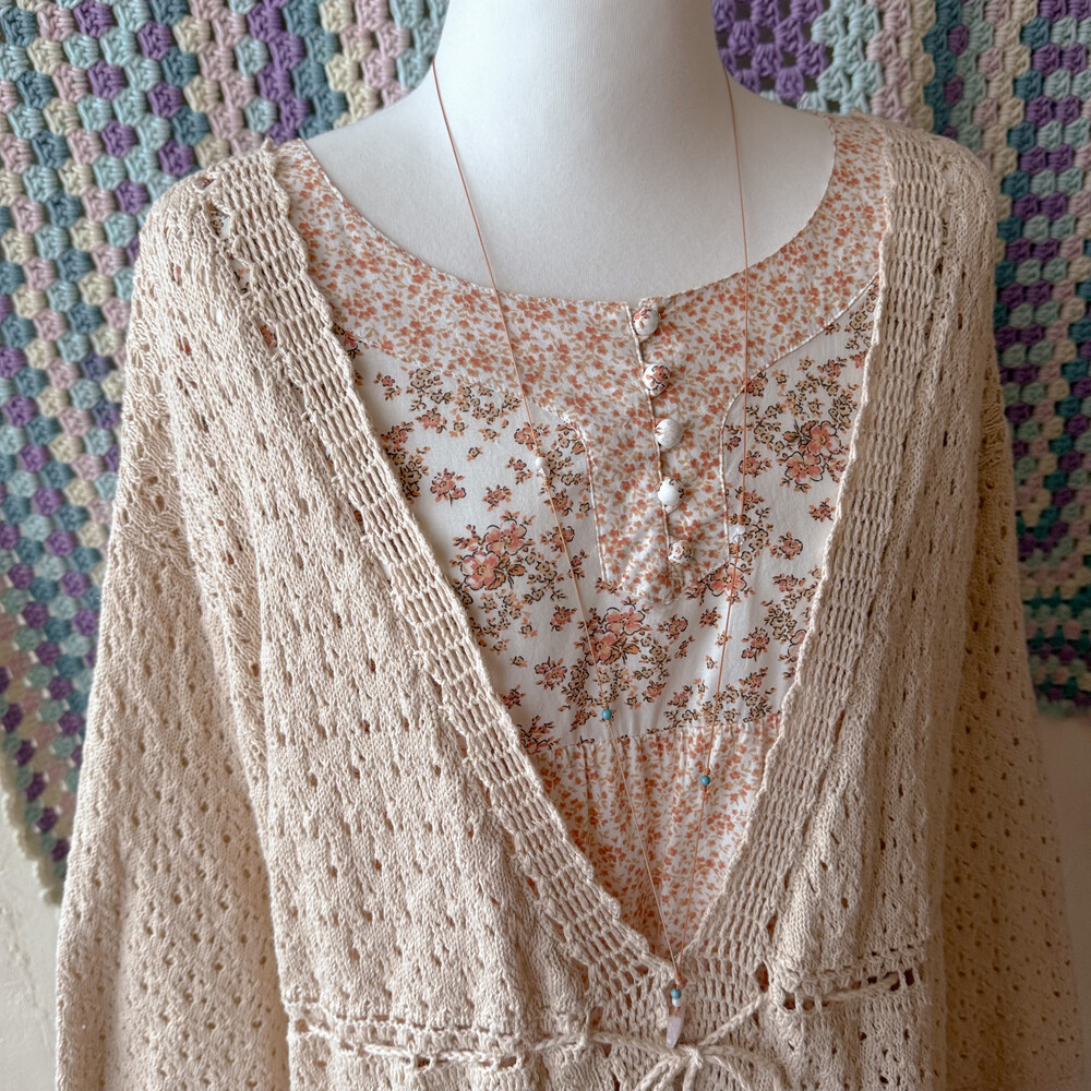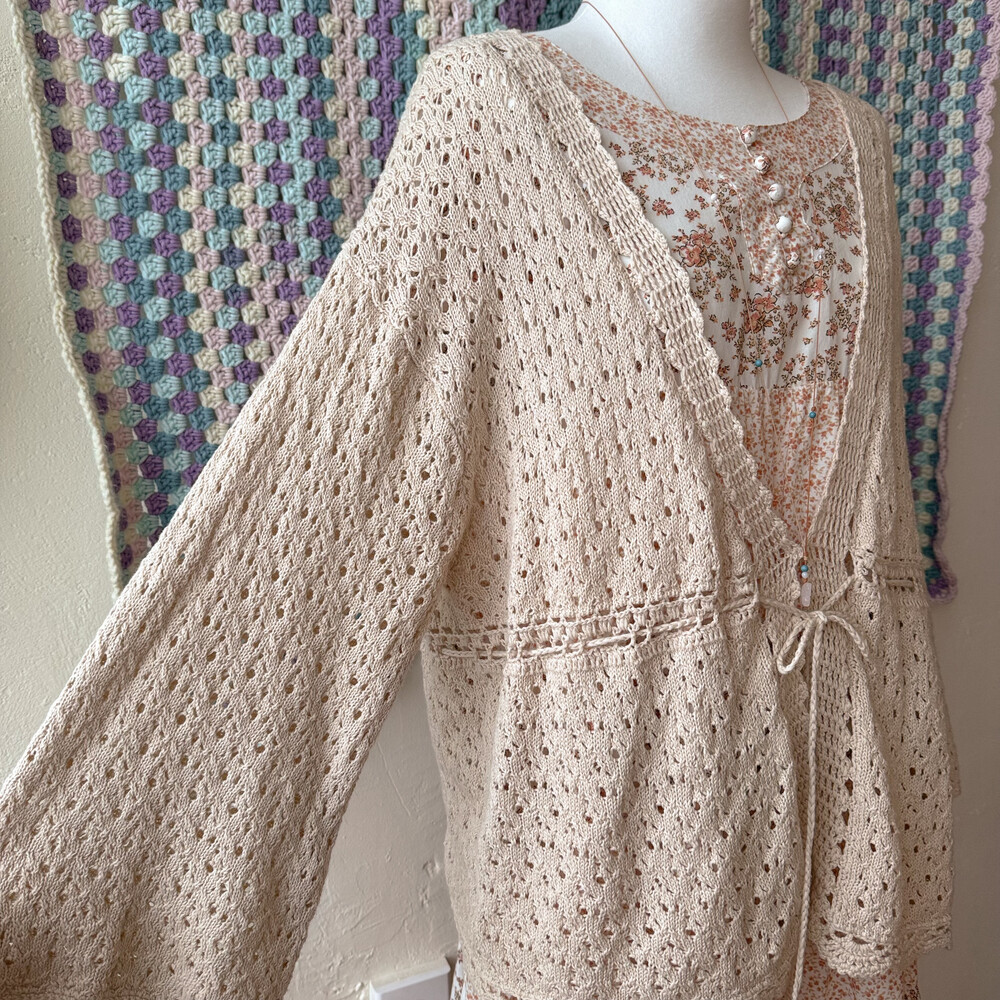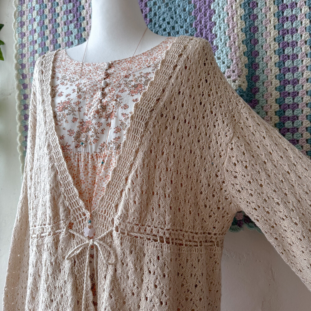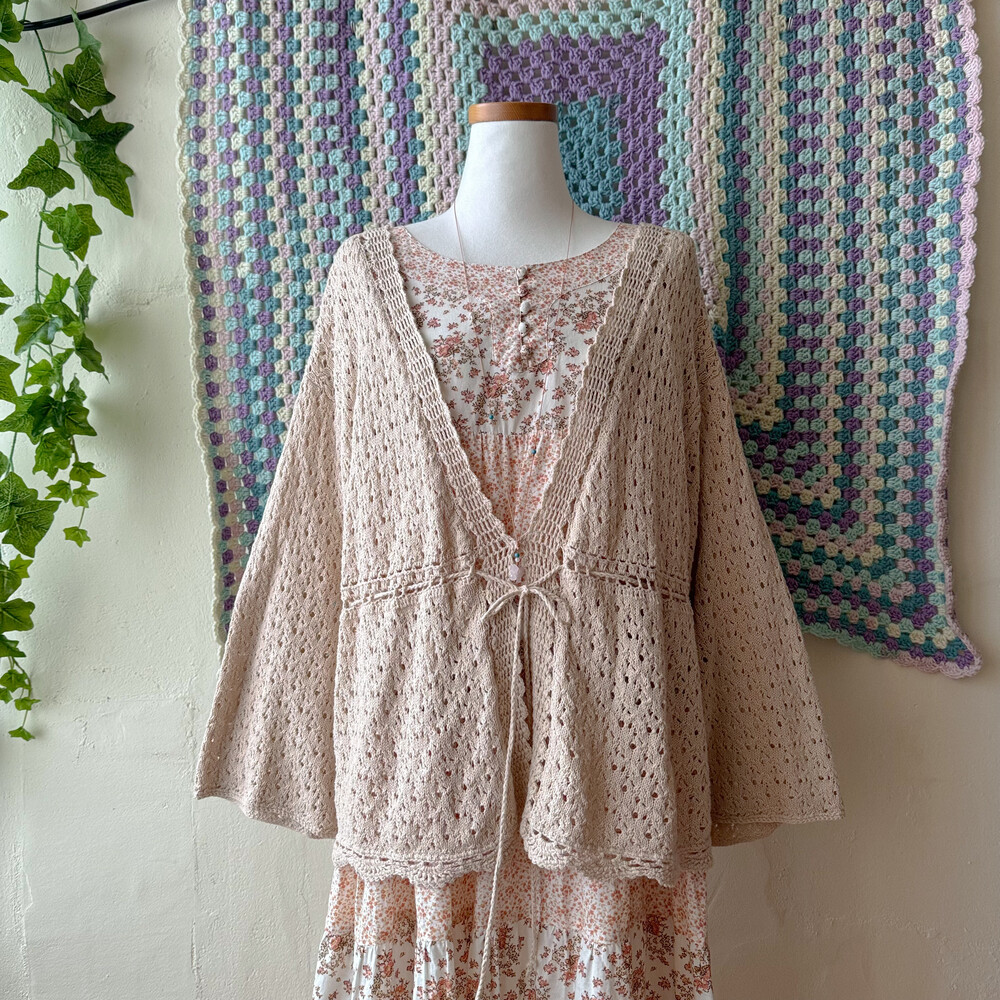 연베이지 색감의 펀칭 크로셰 가디건이에요