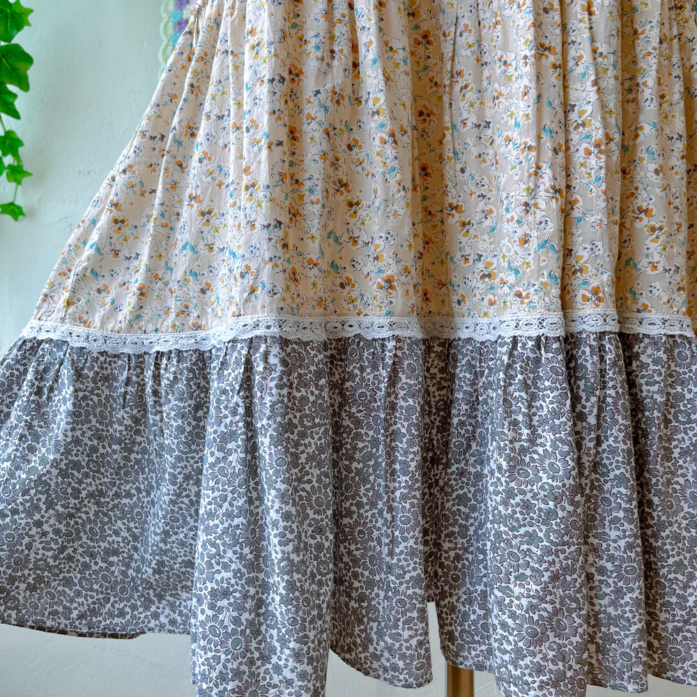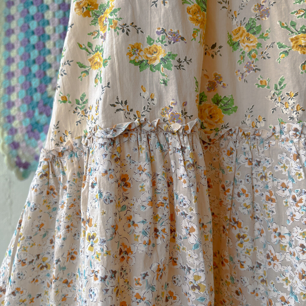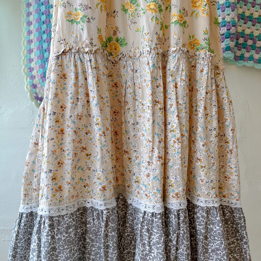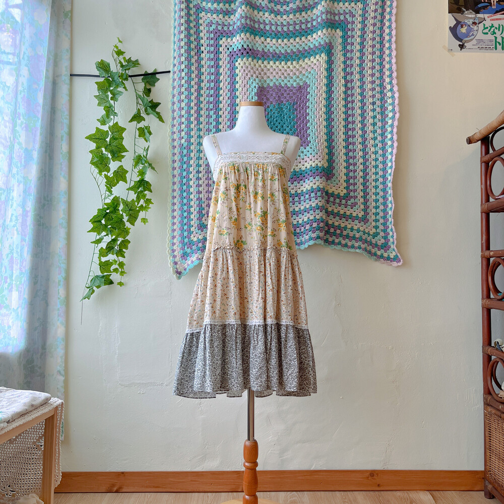 노랑 꽃들이 가득한 패치워크 원피스예요