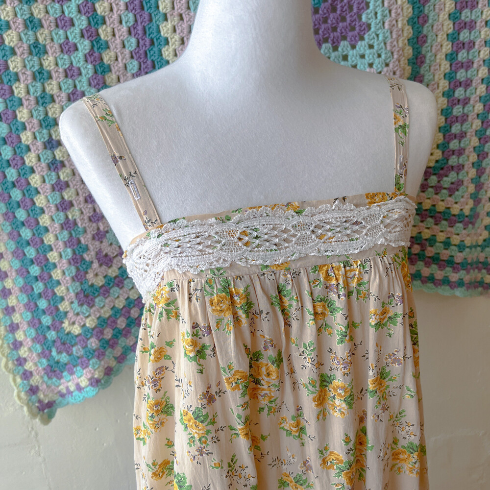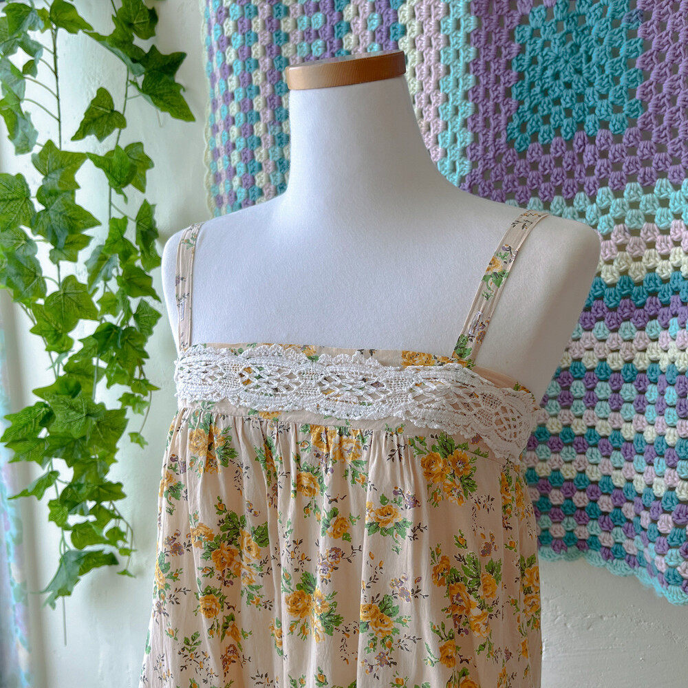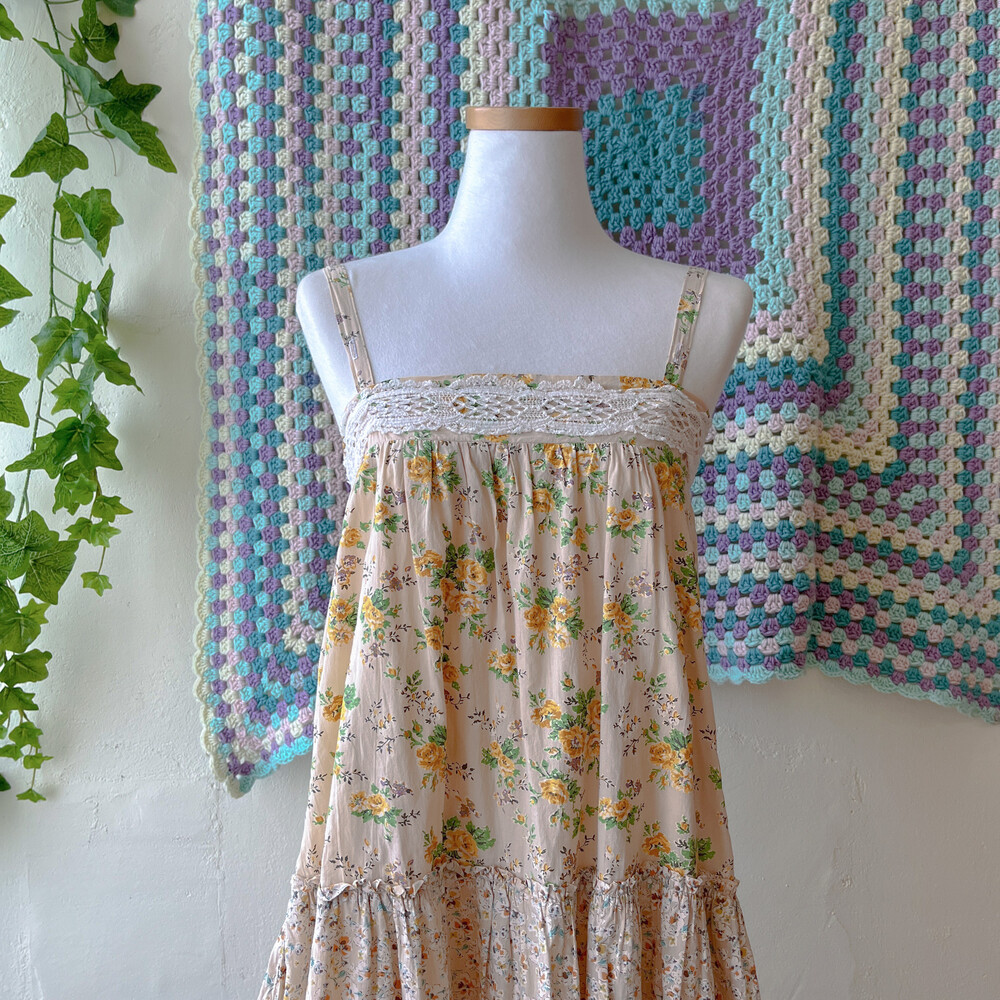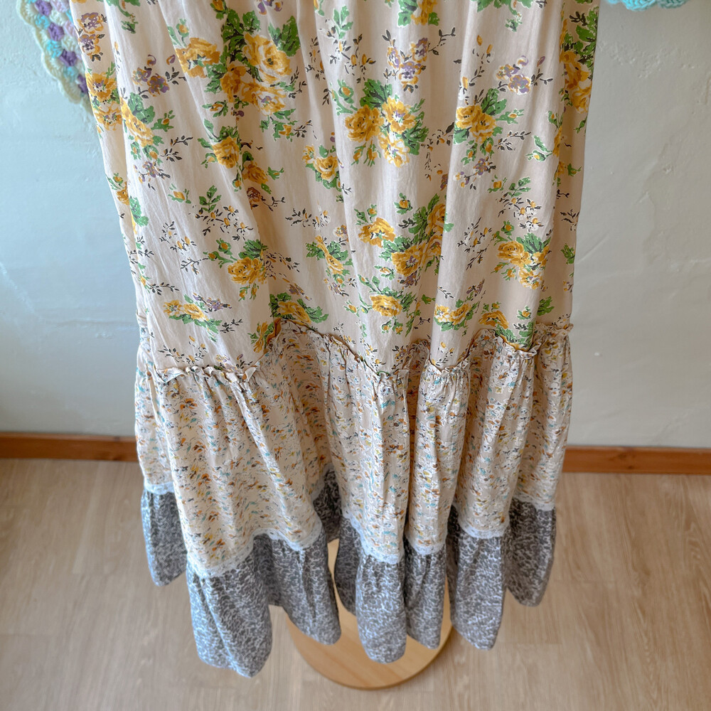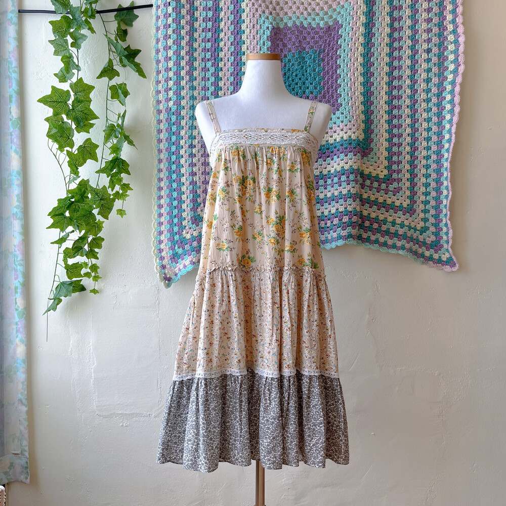 노랑 꽃들이 가득한 패치워크 원피스예요