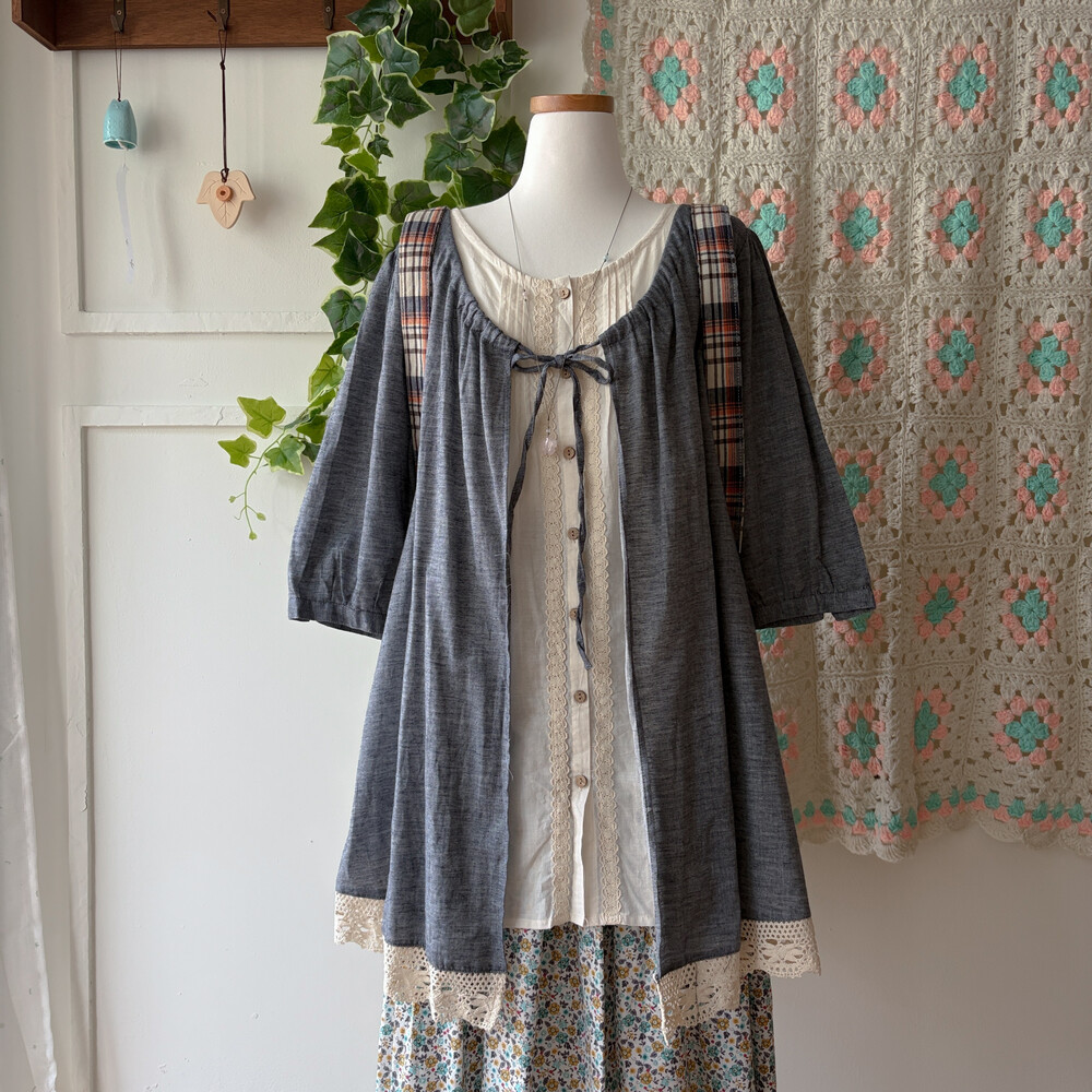 gray-denim pintuck layered tunic