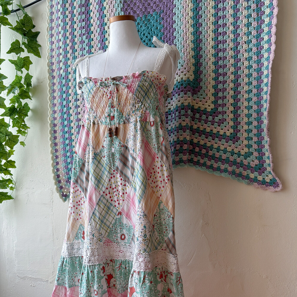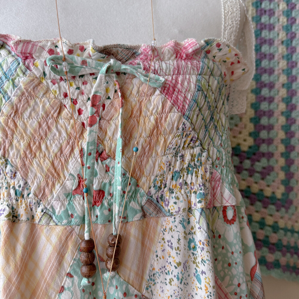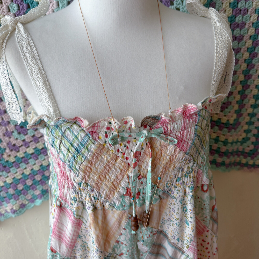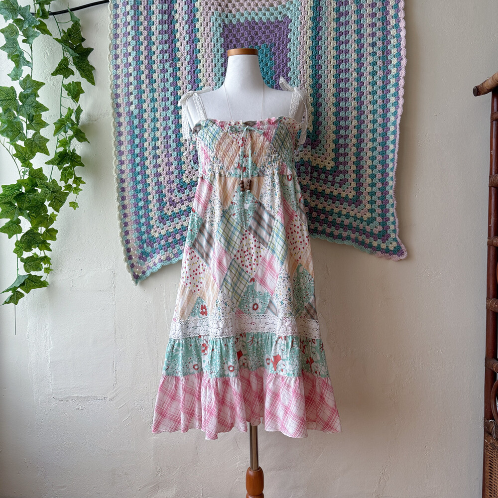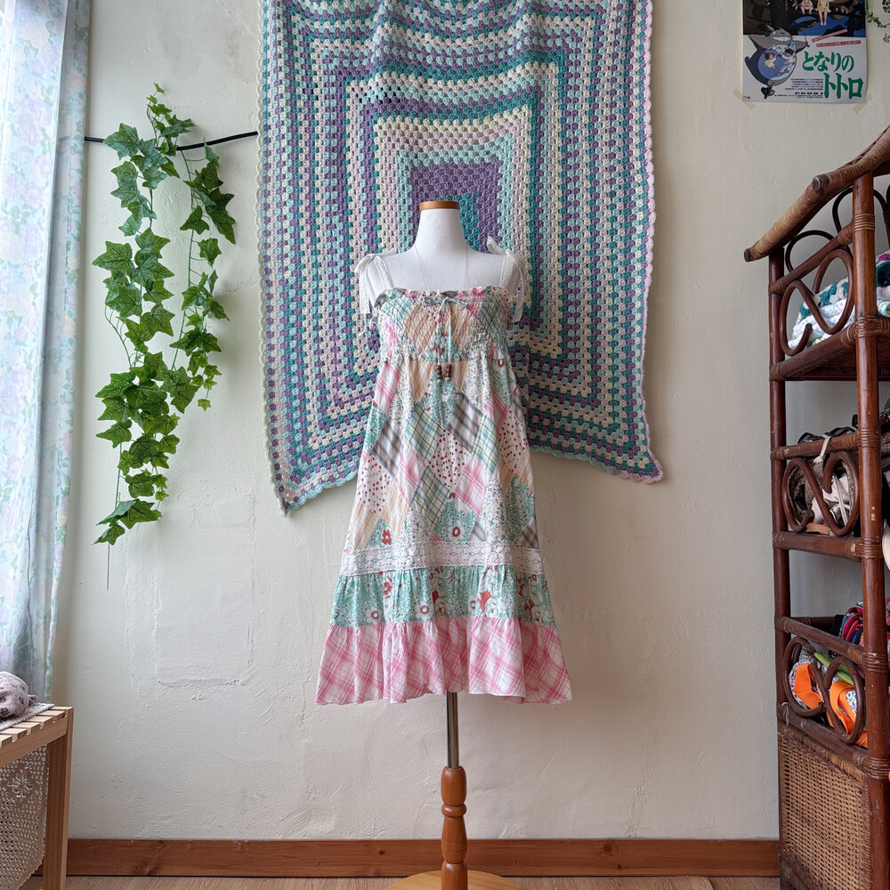 솜사탕 같은 색감의 패치워크 끈원피스예요