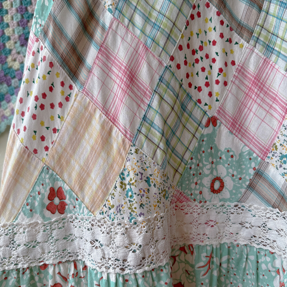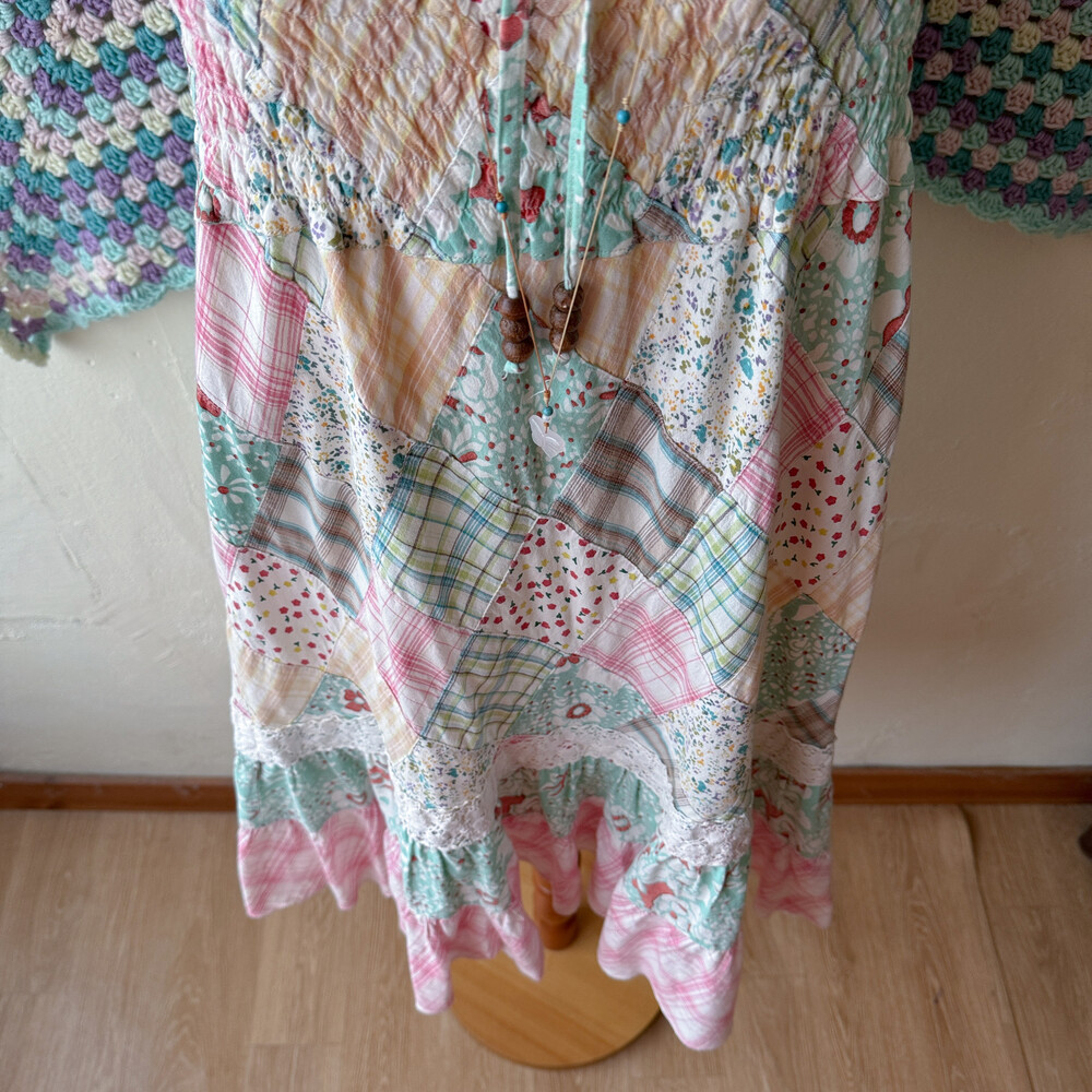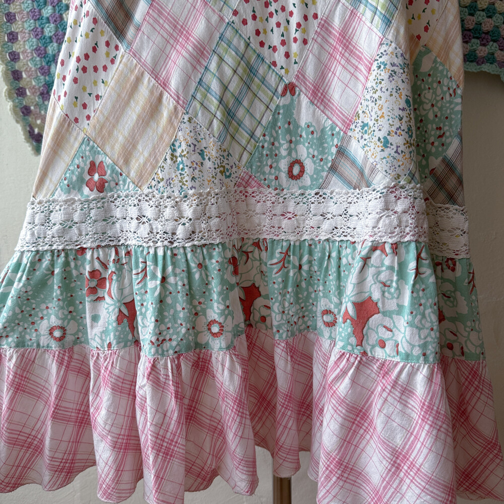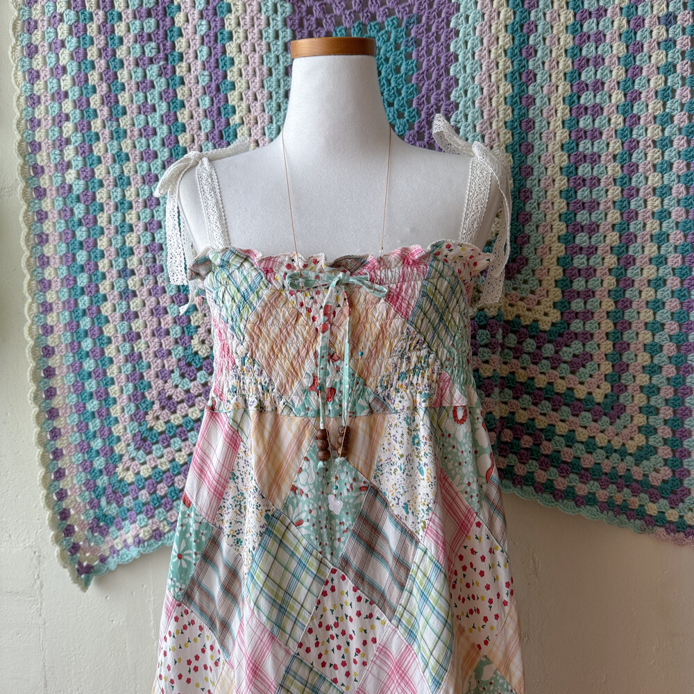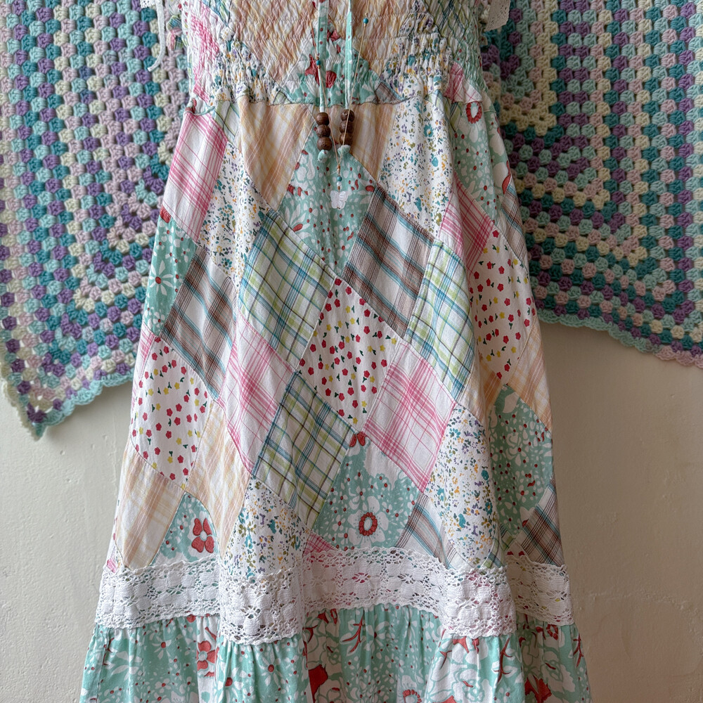 솜사탕 같은 색감의 패치워크 끈원피스예요