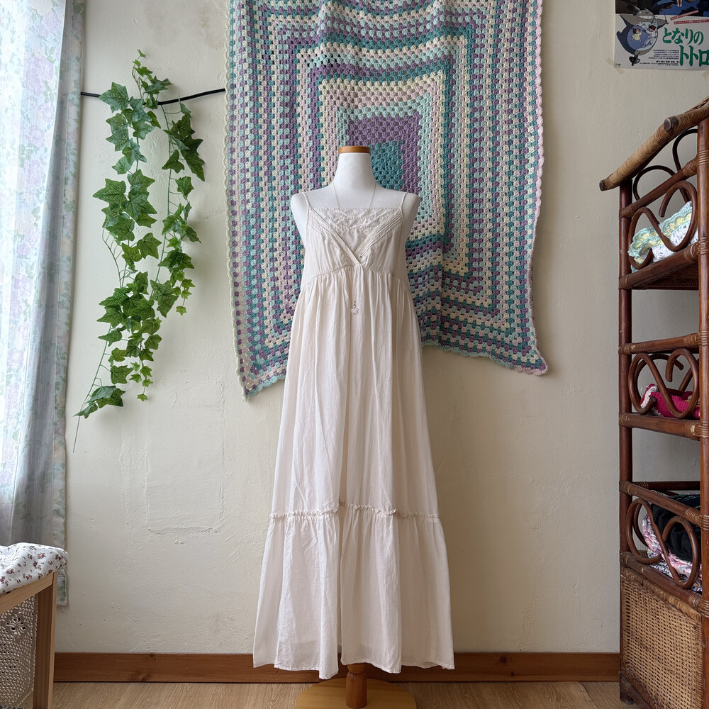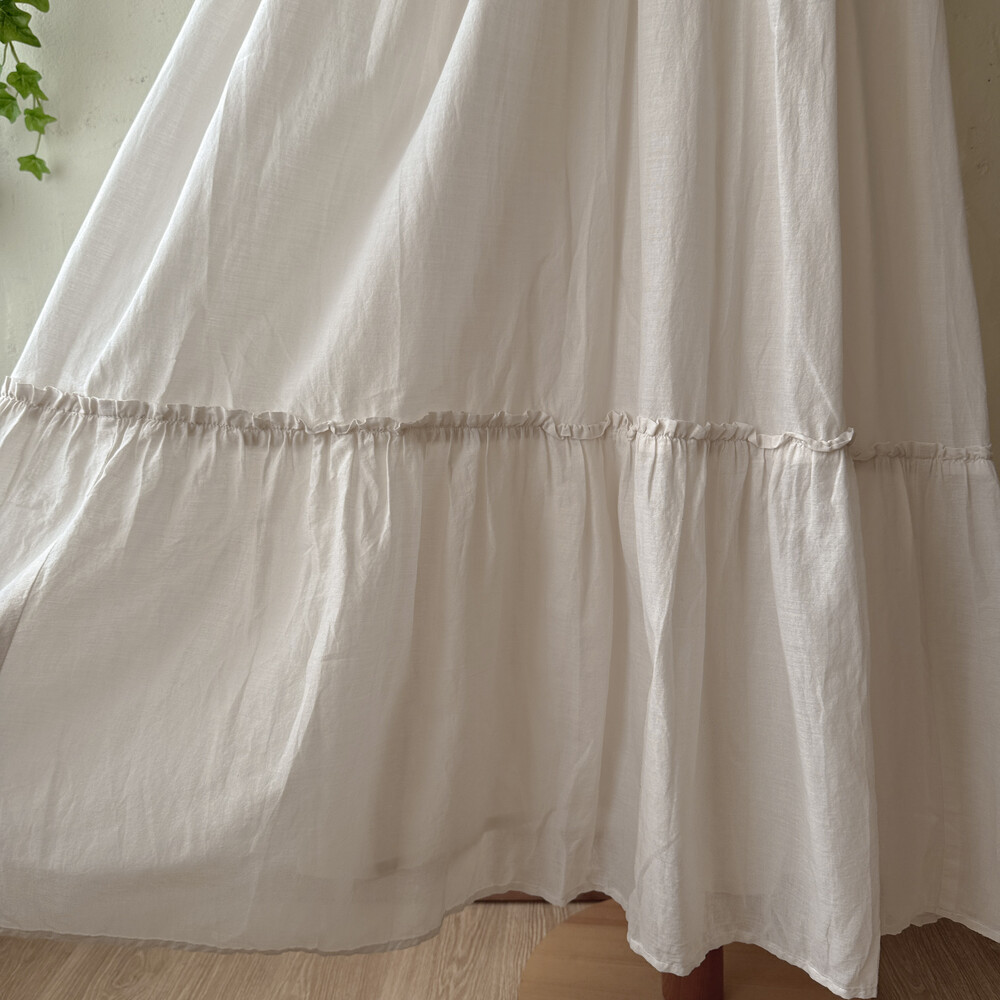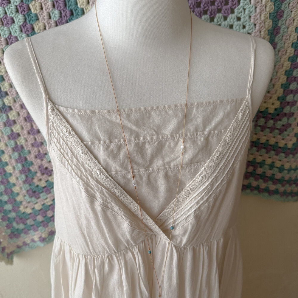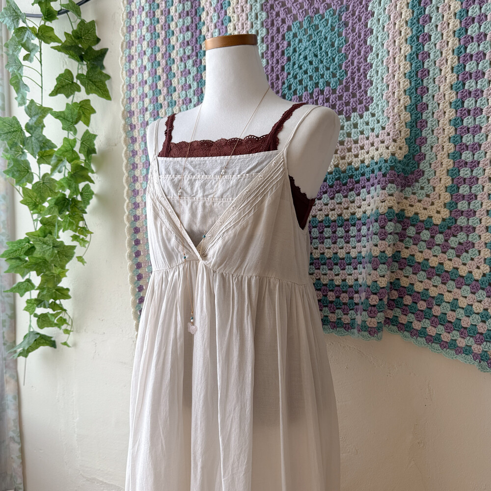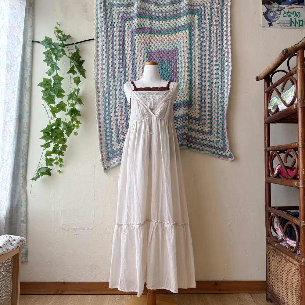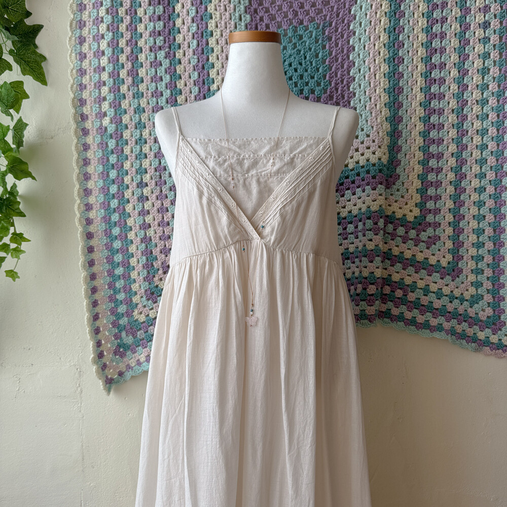 아이보리 색감의 스퀘어넥 끈원피스예요