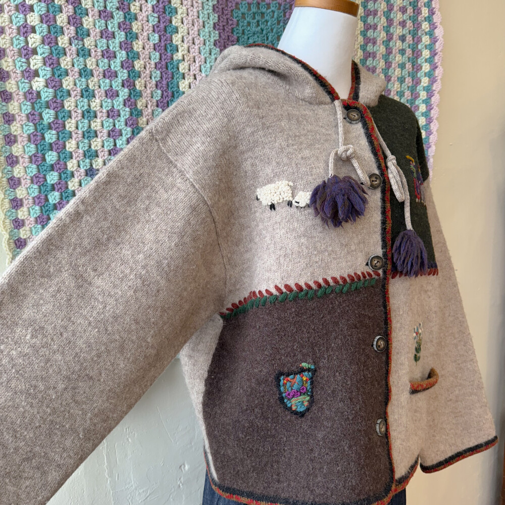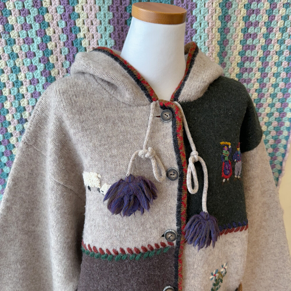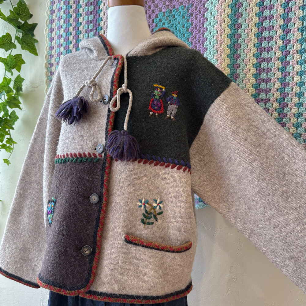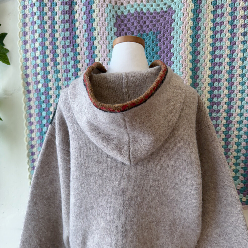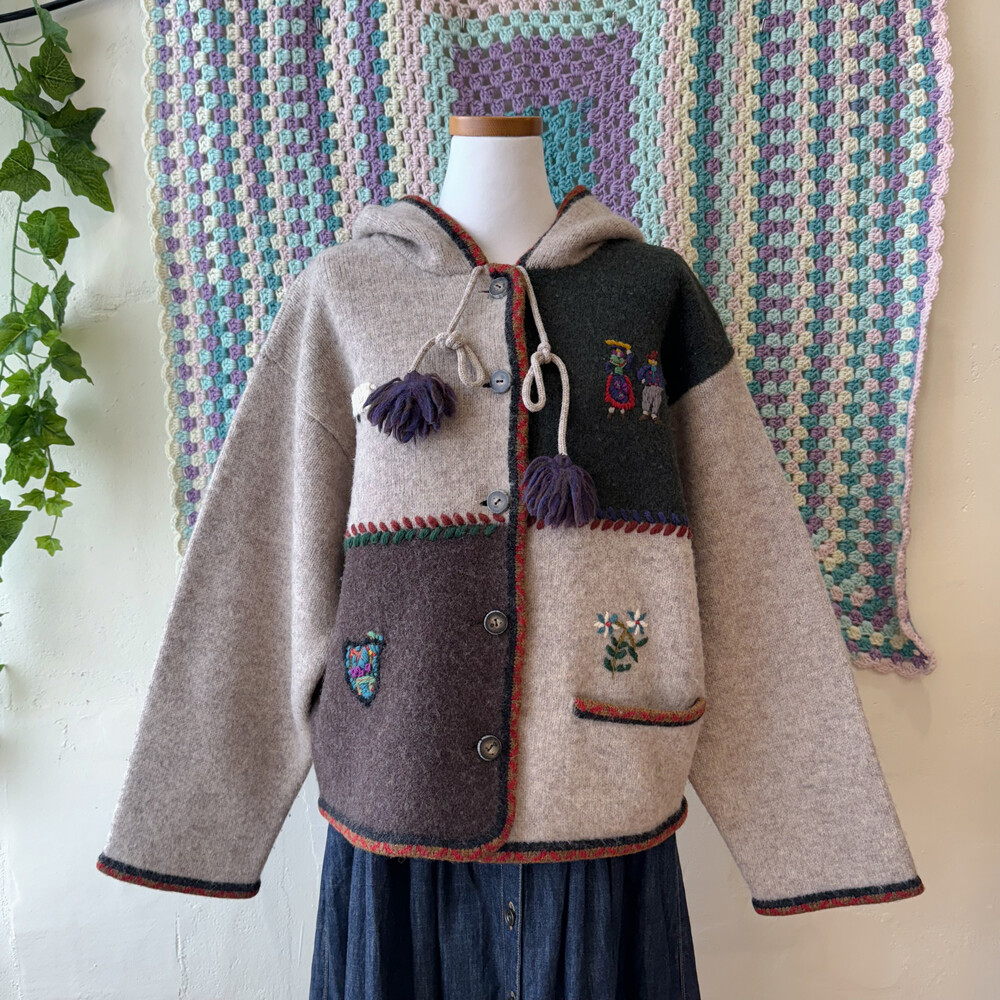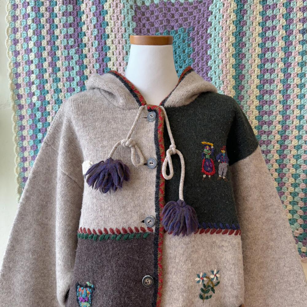 자수 포인트가 들어간 후드 가디건이에요
