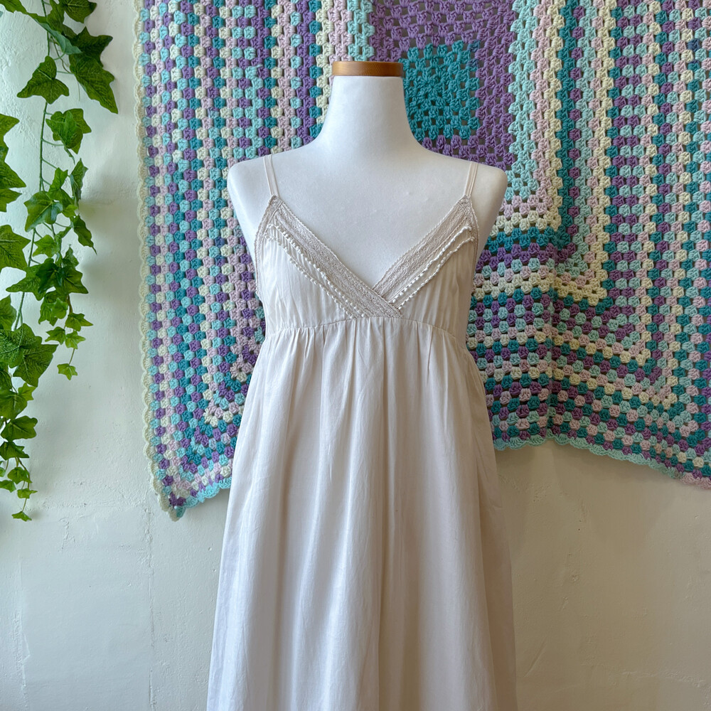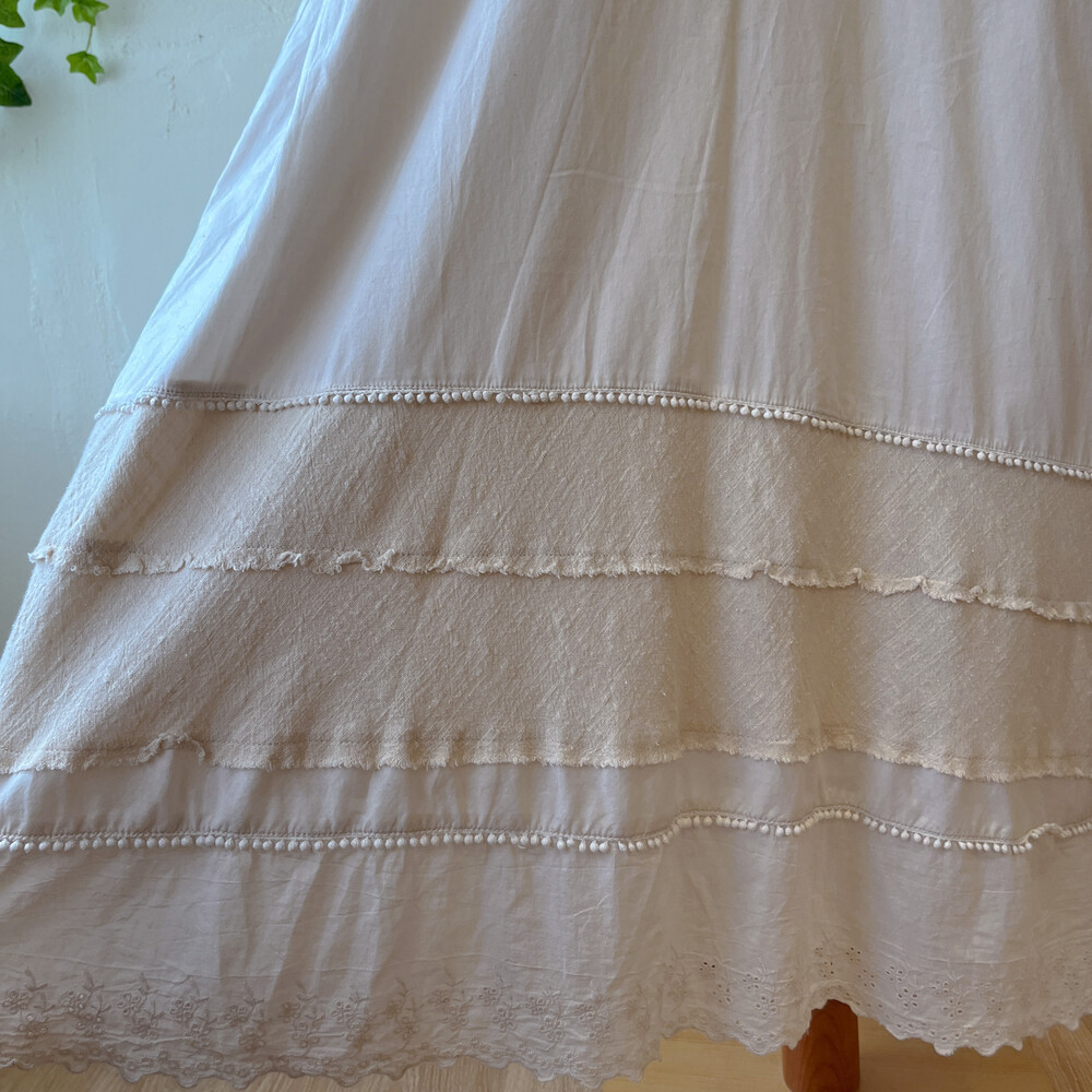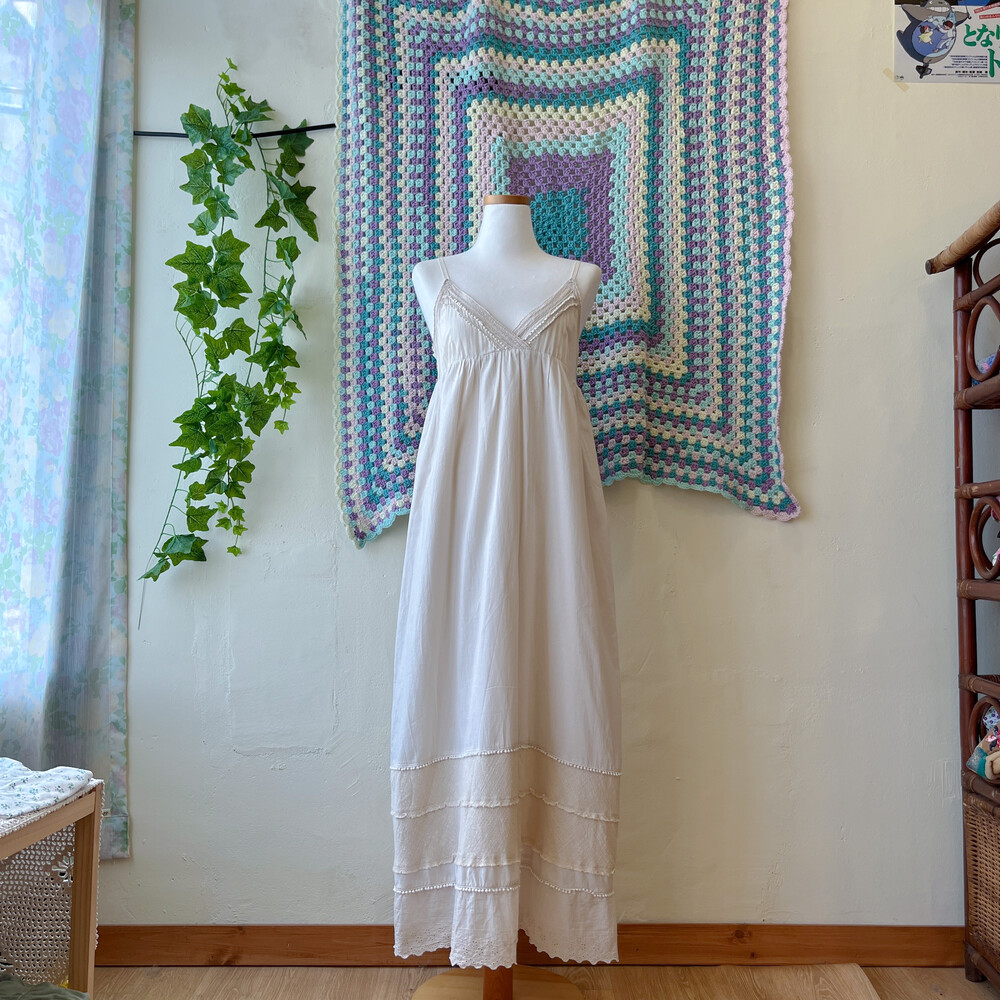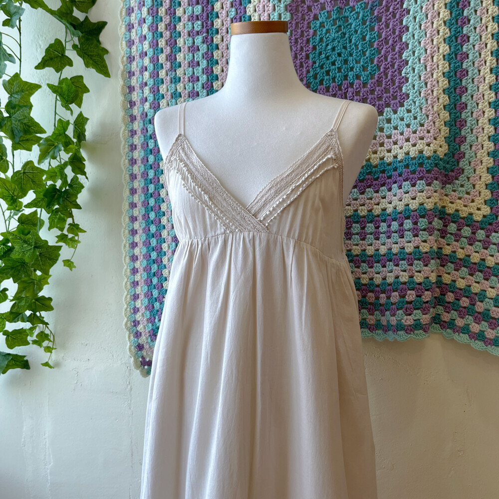 아이보리 색감의 브이넥 코튼 끈원피스예요
