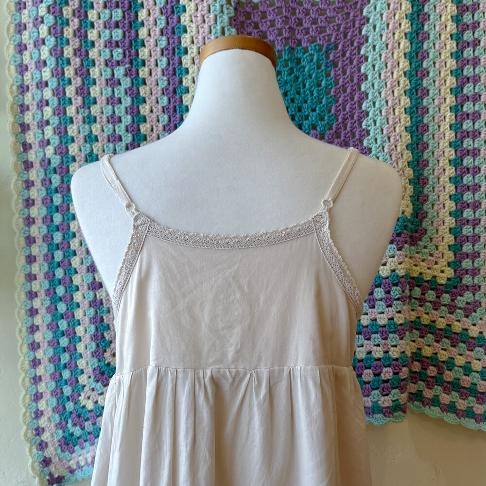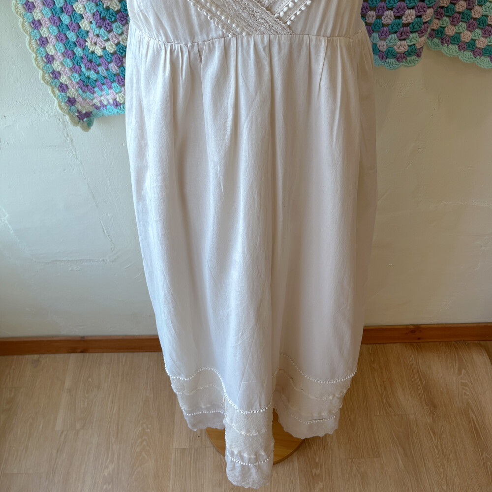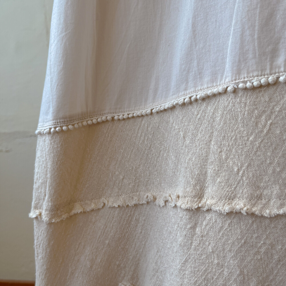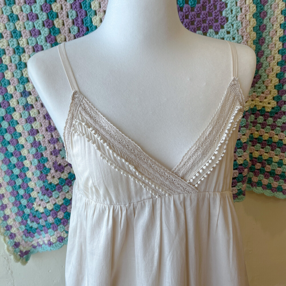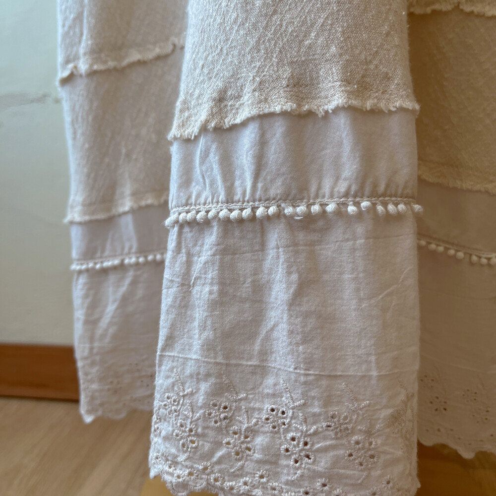 아이보리 색감의 브이넥 코튼 끈원피스예요