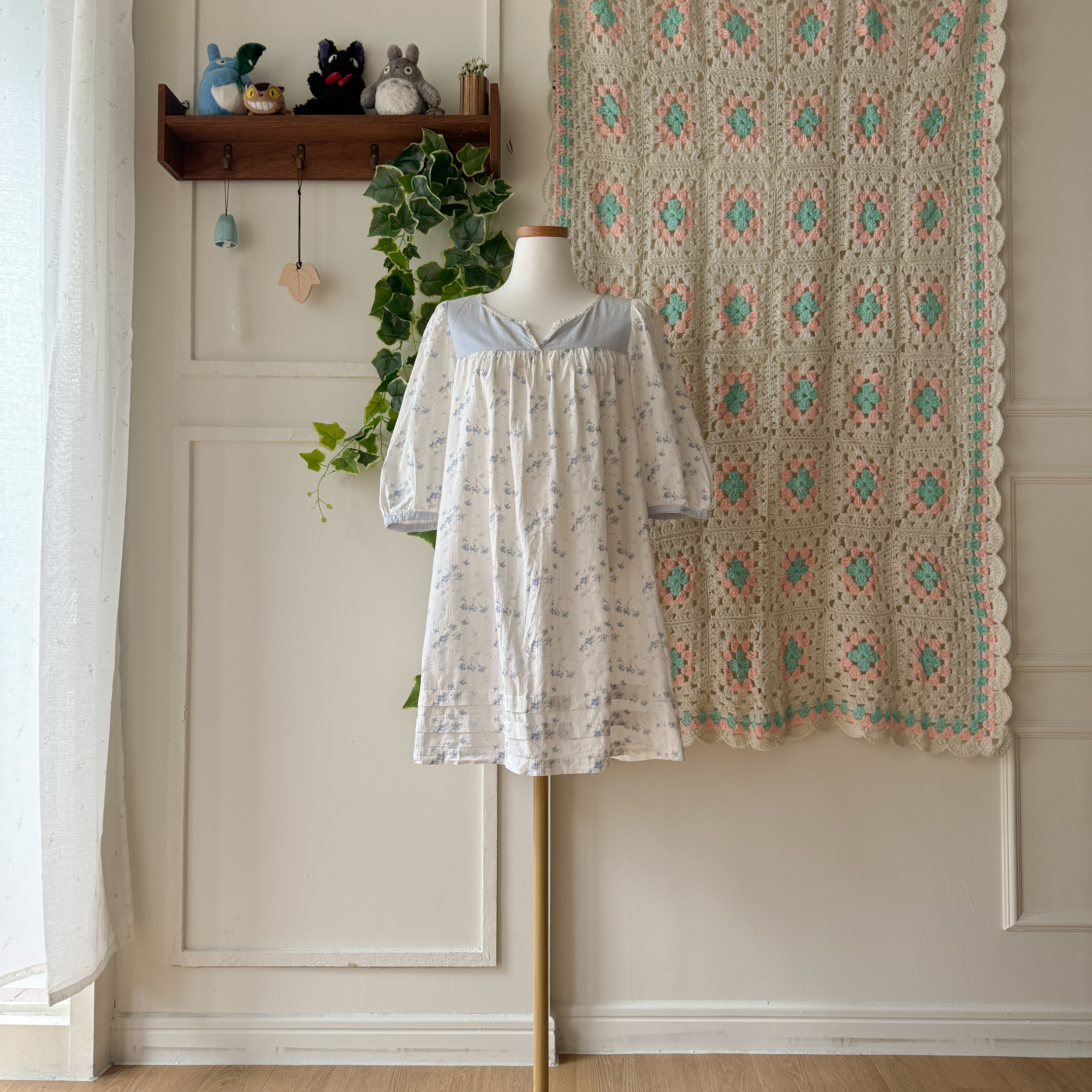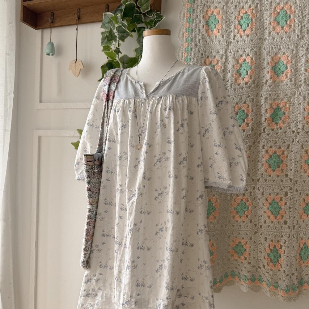 밀키한 하늘색의 꽃무늬 원피스예요