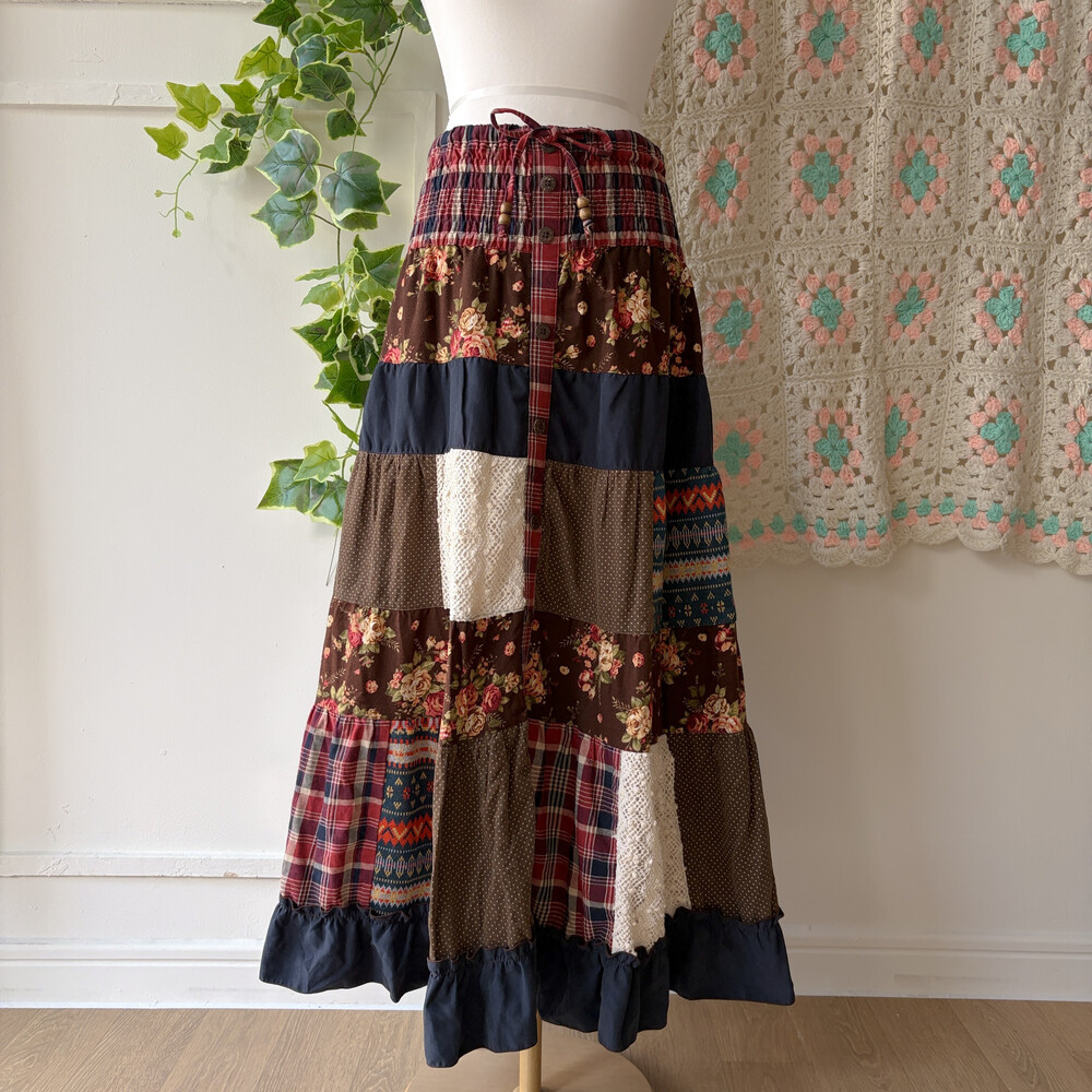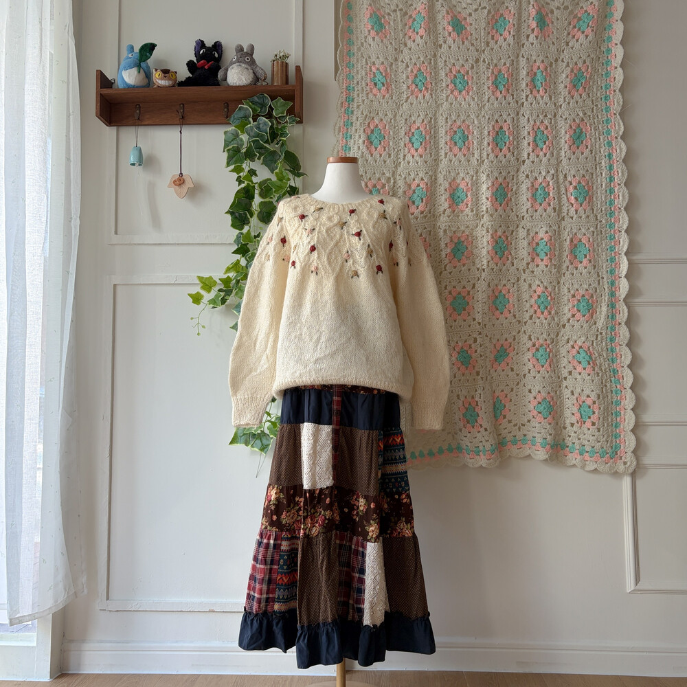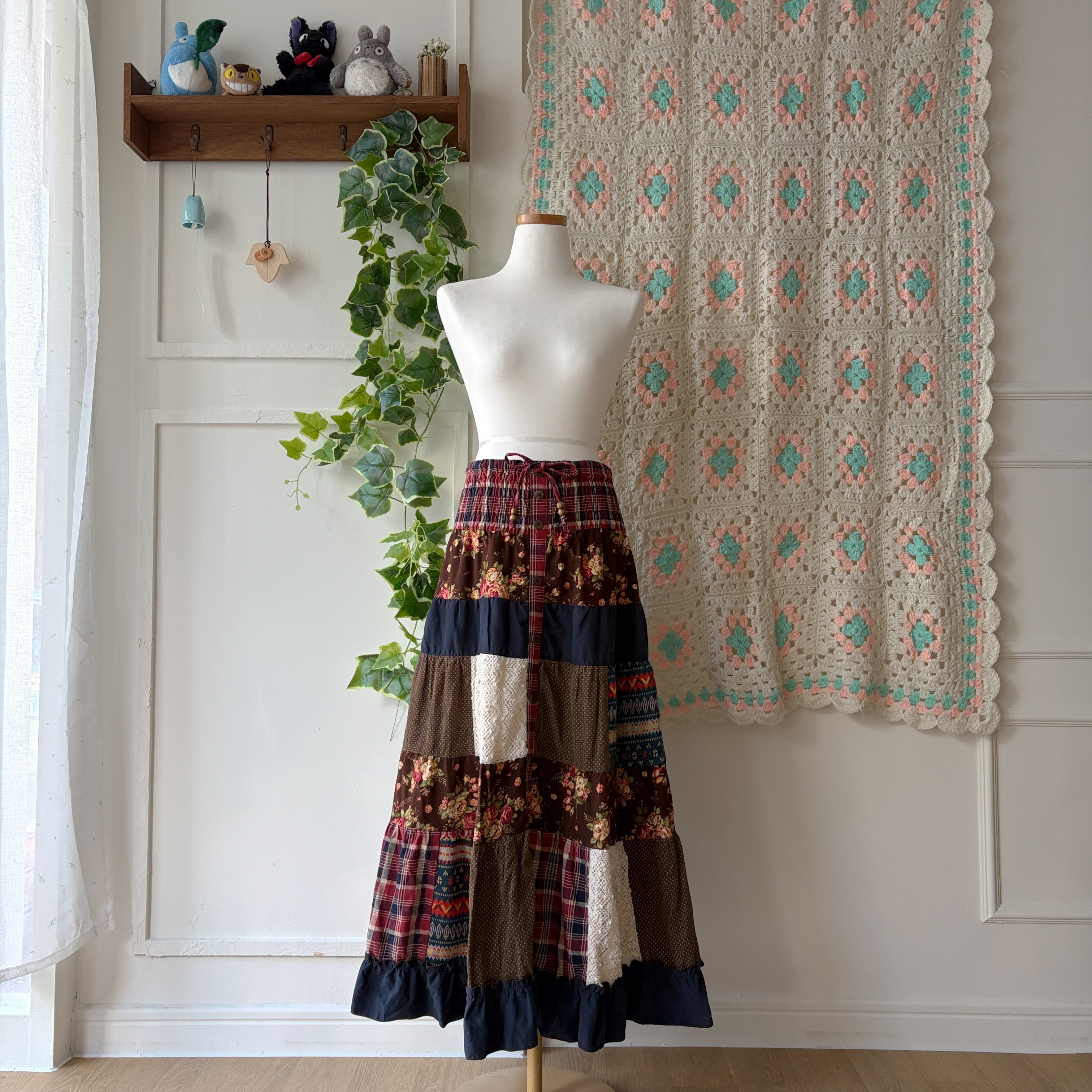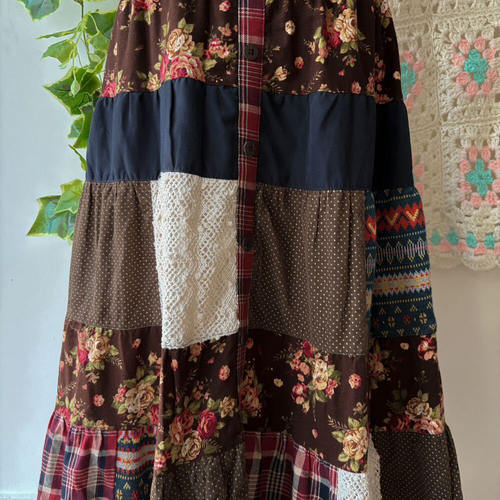 겨울 느낌의 패치워크 롱스커트예요