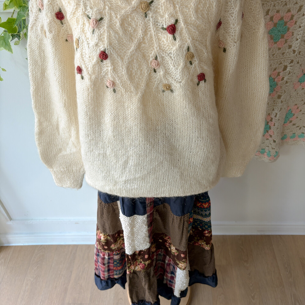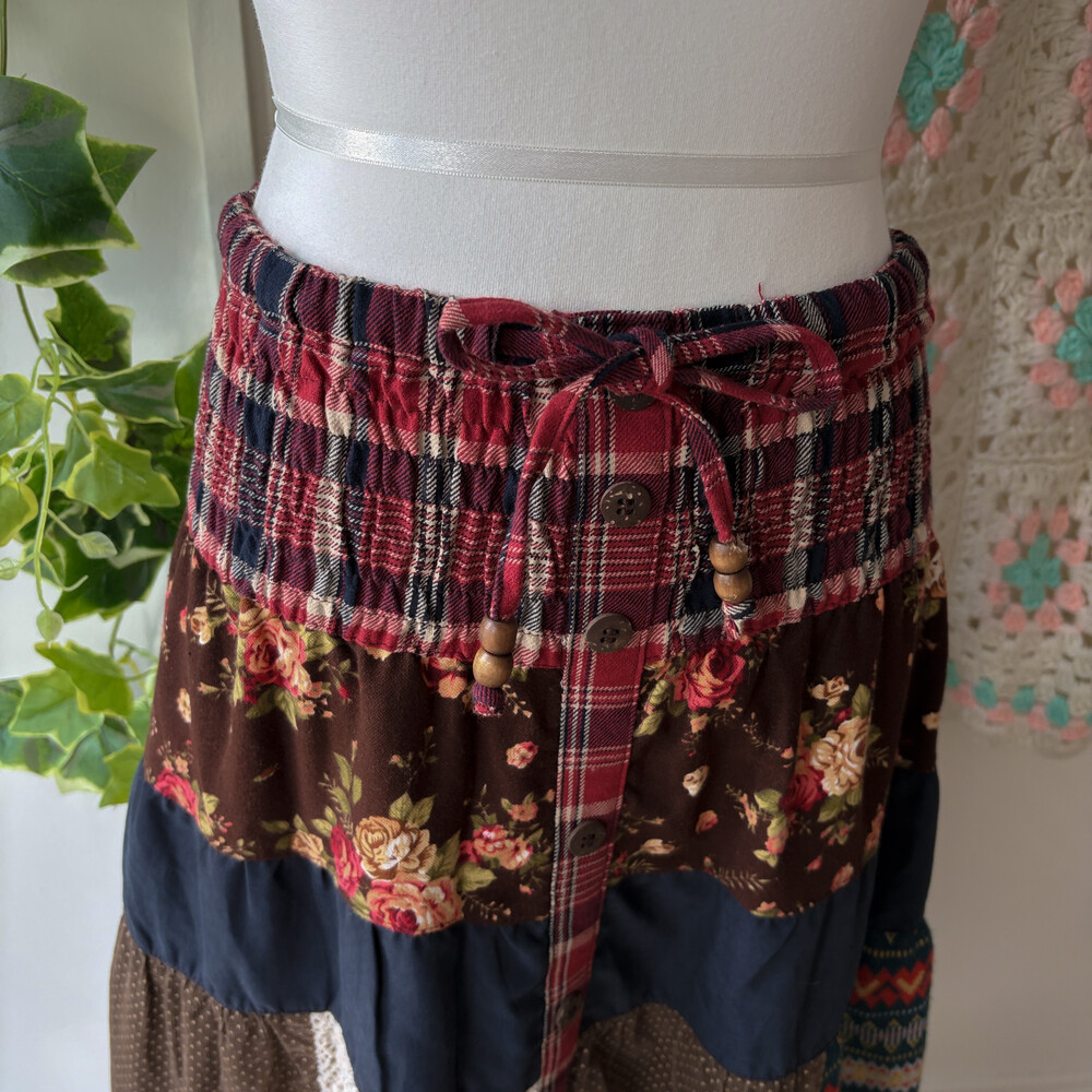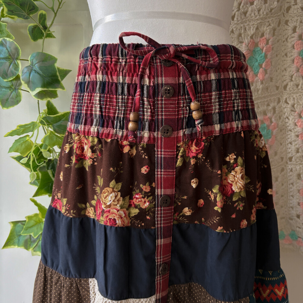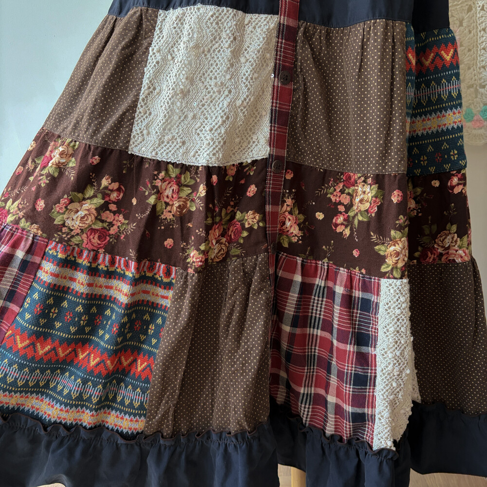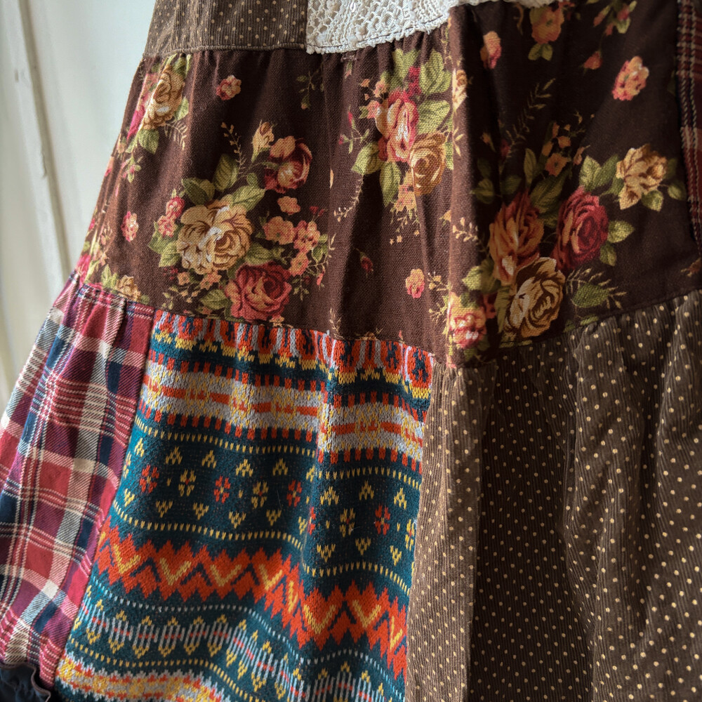 겨울 느낌의 패치워크 롱스커트예요