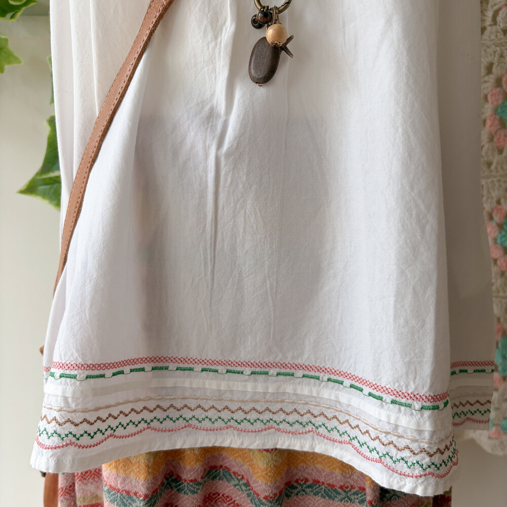 자수 포인트의 코튼 슬리브리스 블라우스예요