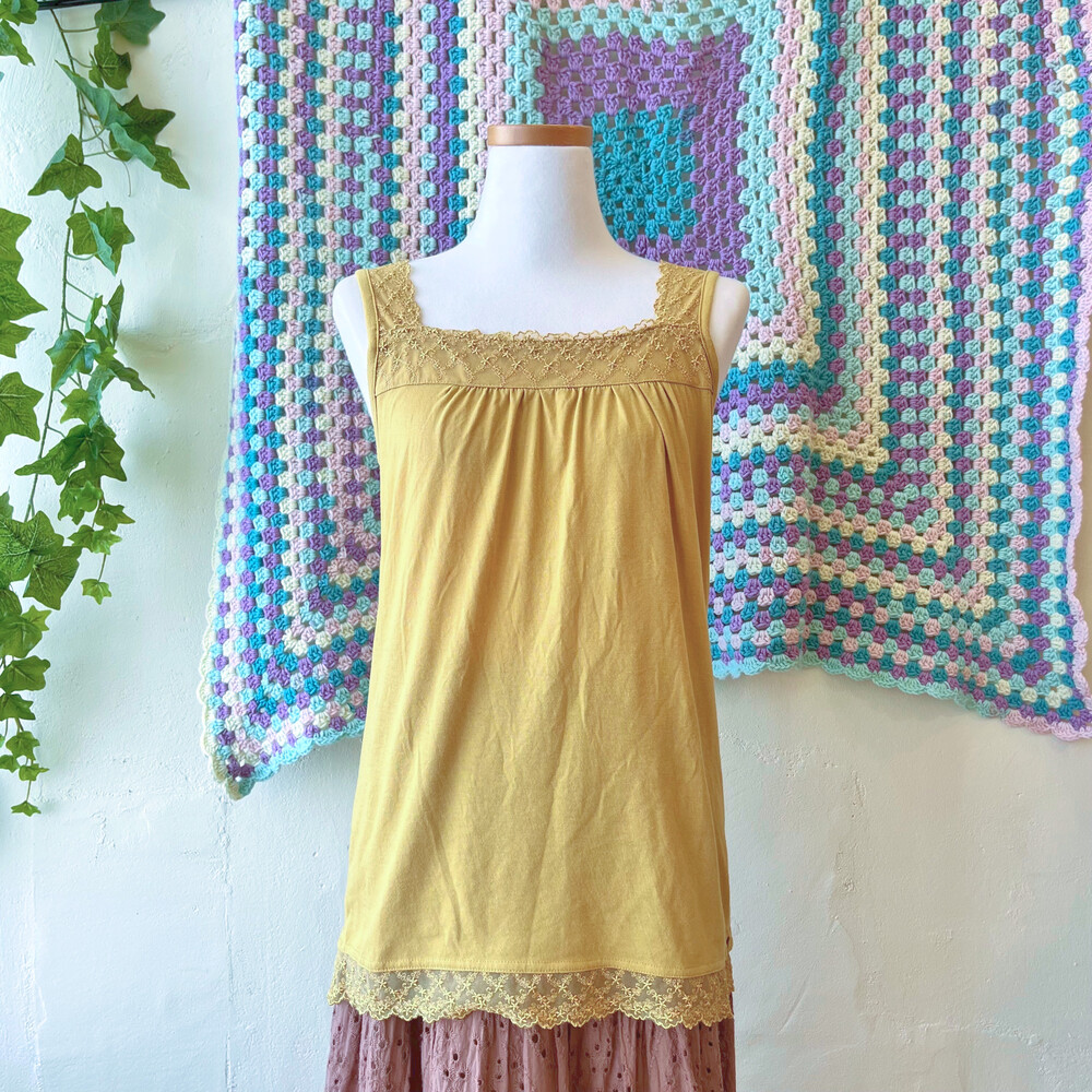 mustard flower lace sleeveless top