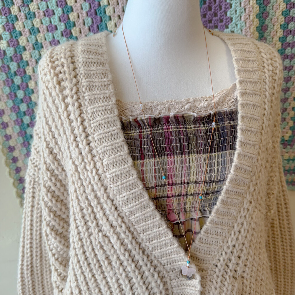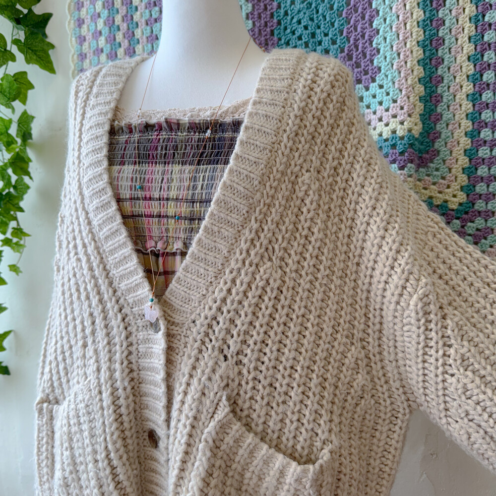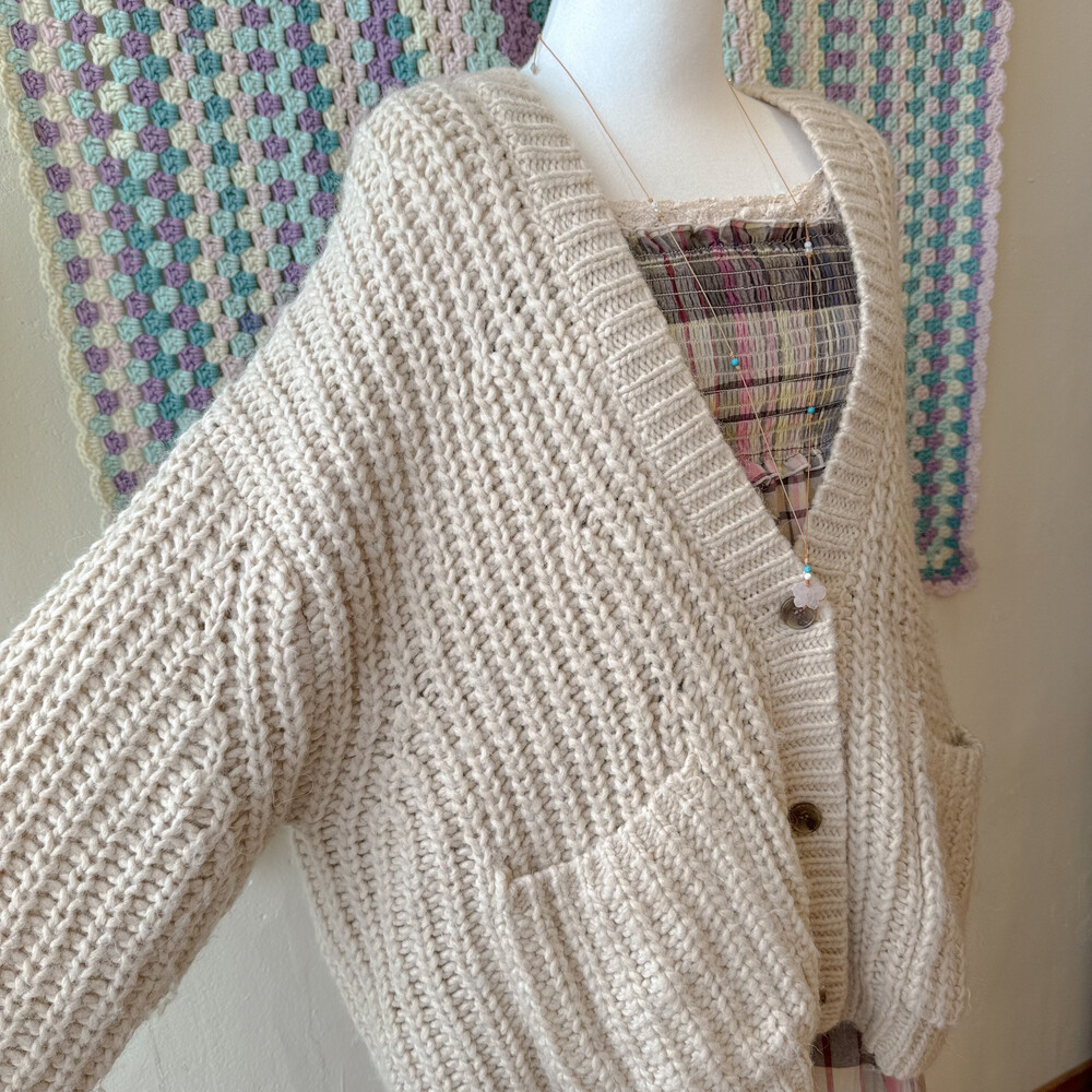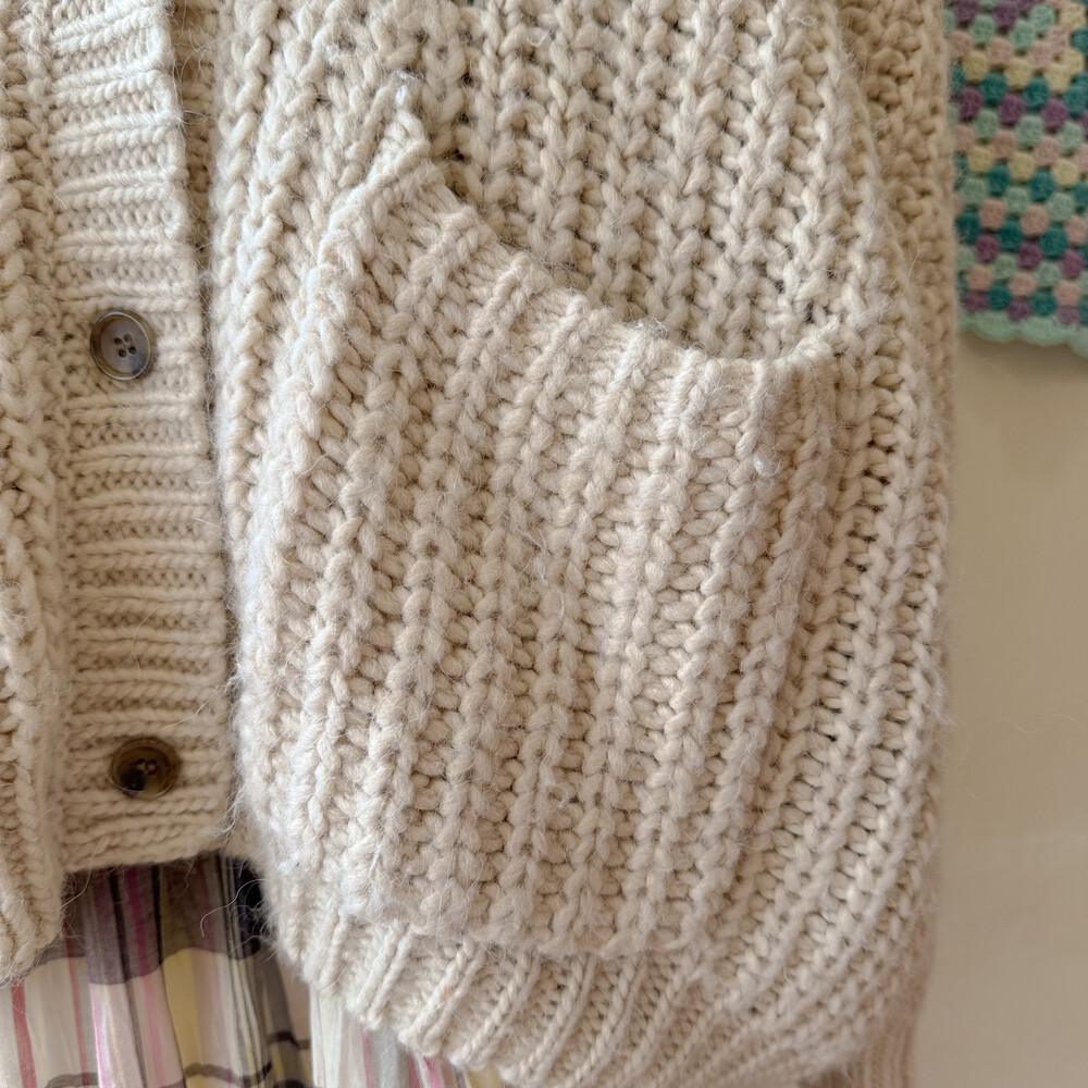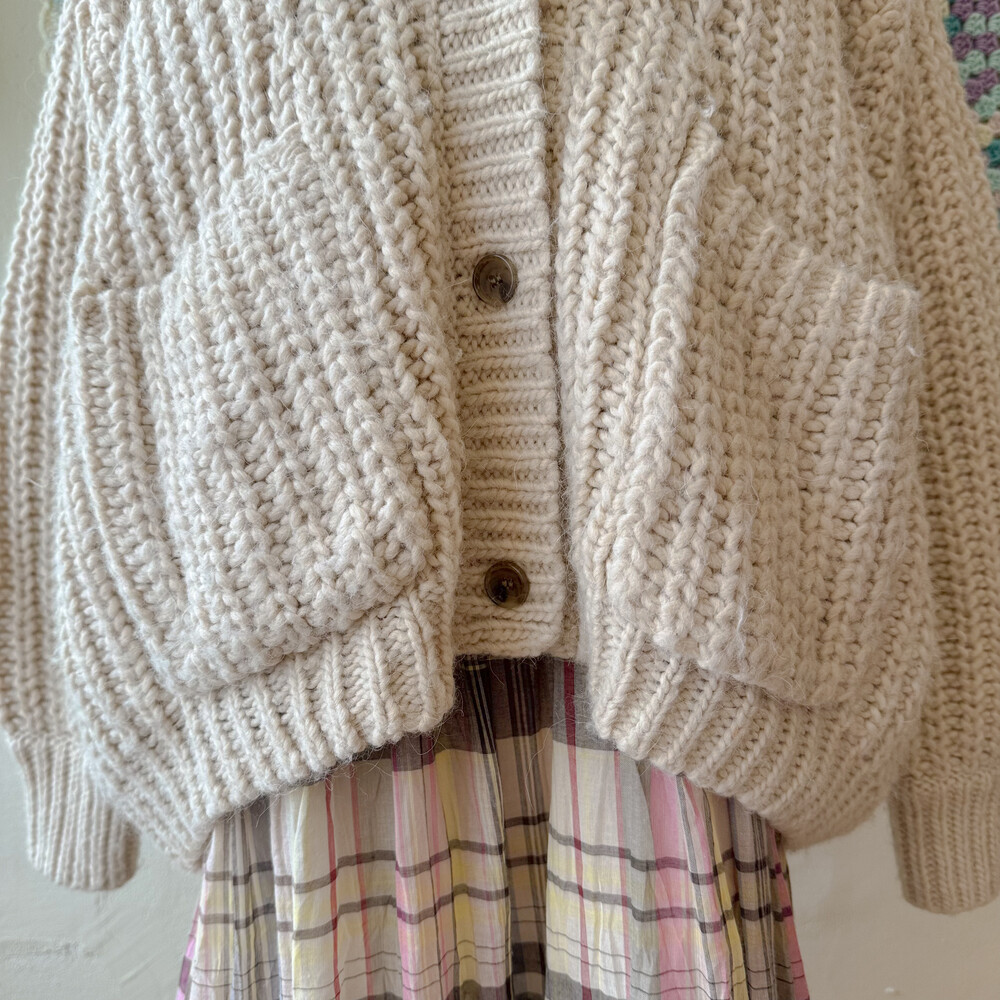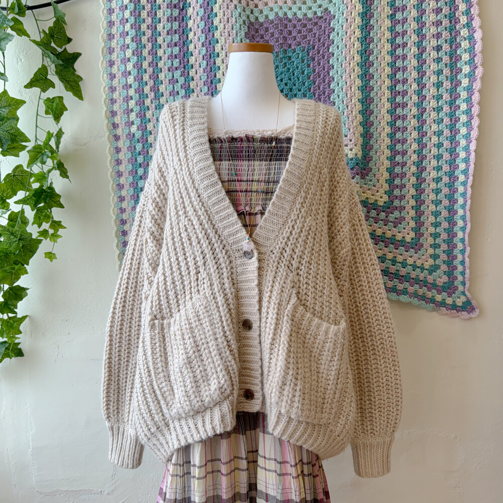 연베이지 색감의 브이넥 오버사이즈 가디건이에요