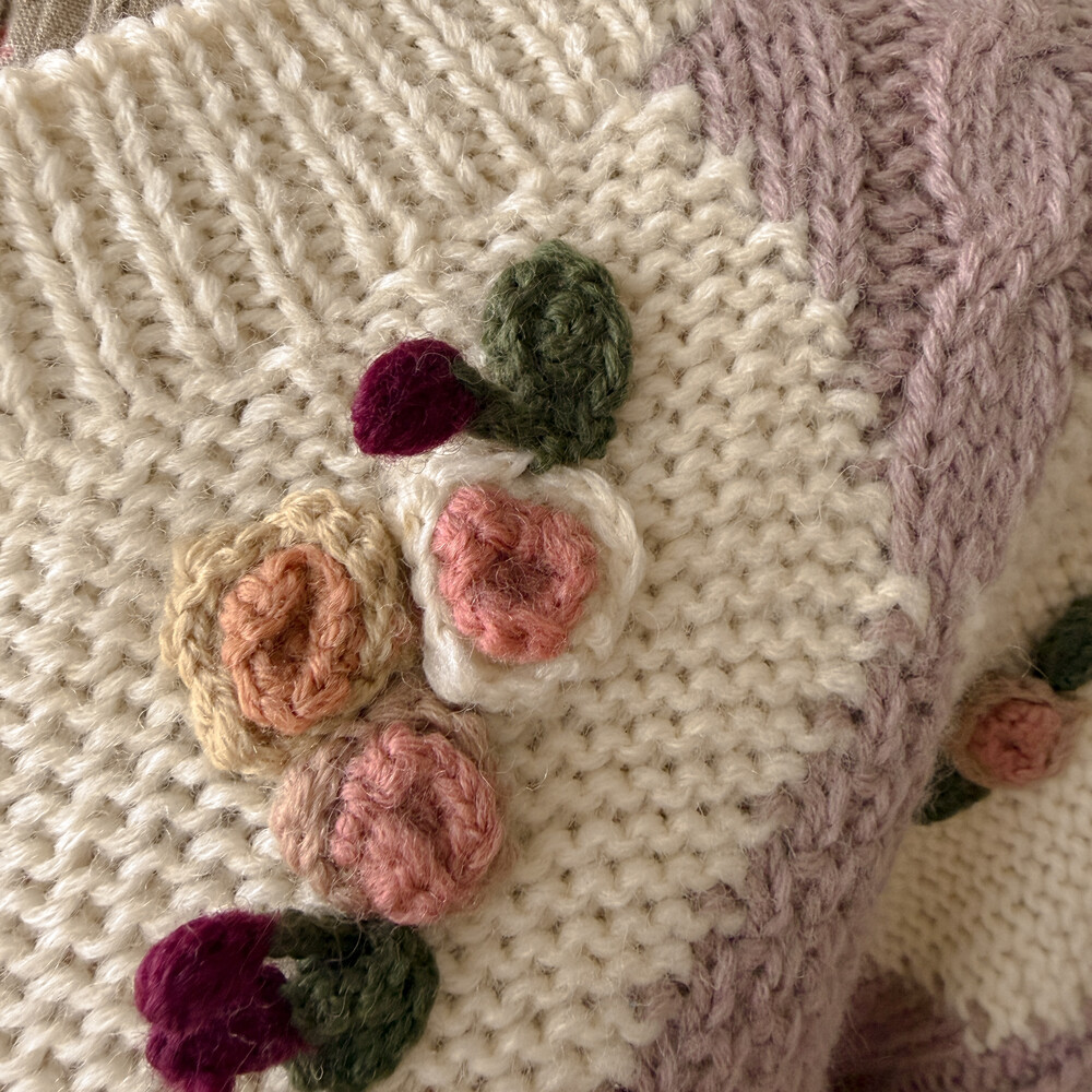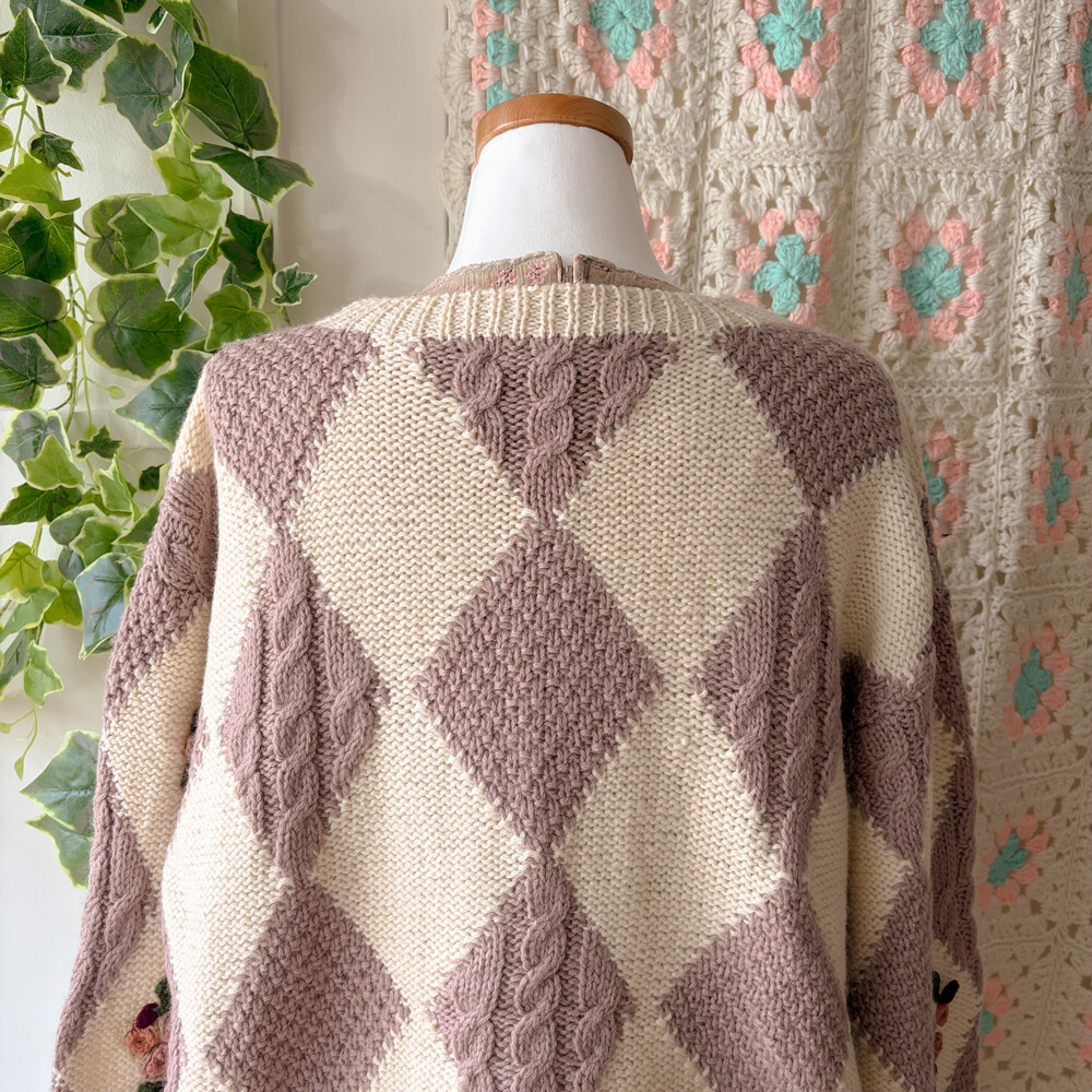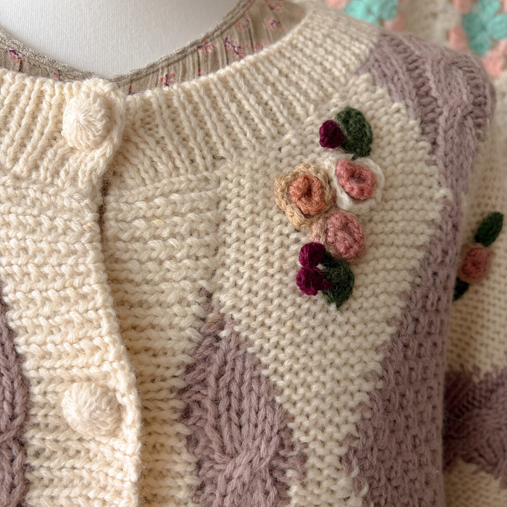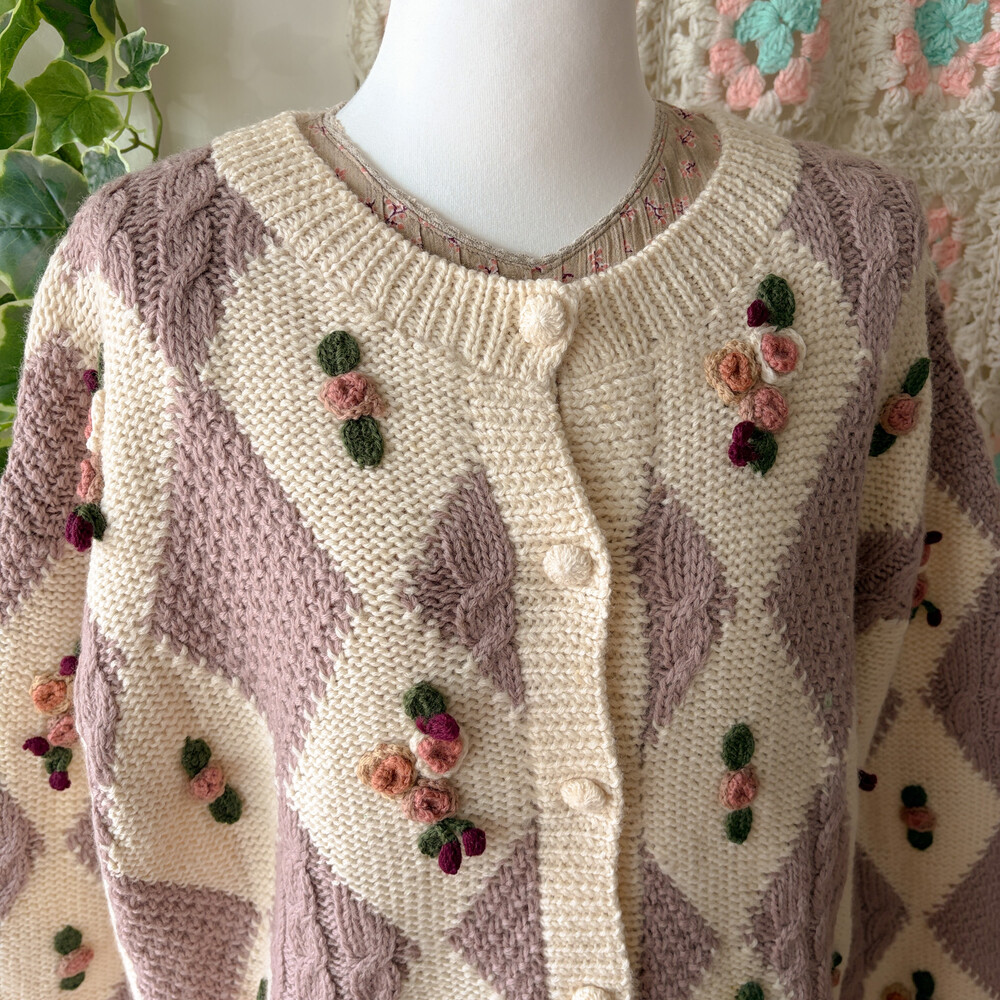 꽃모티브 포인트가 들어간 아가일 가디건이에요