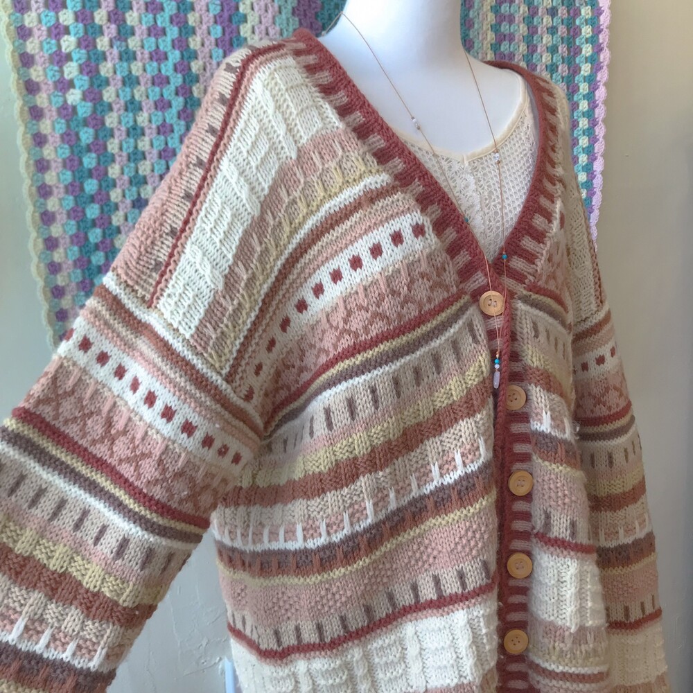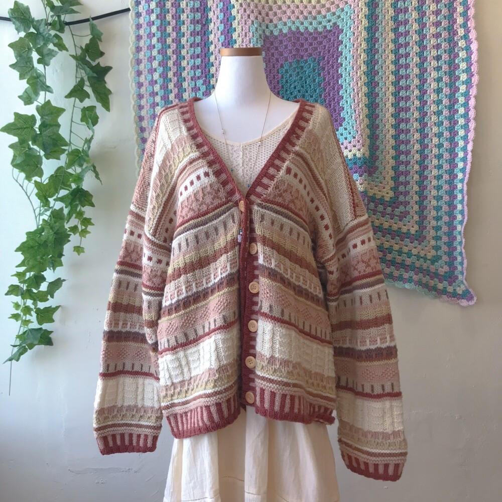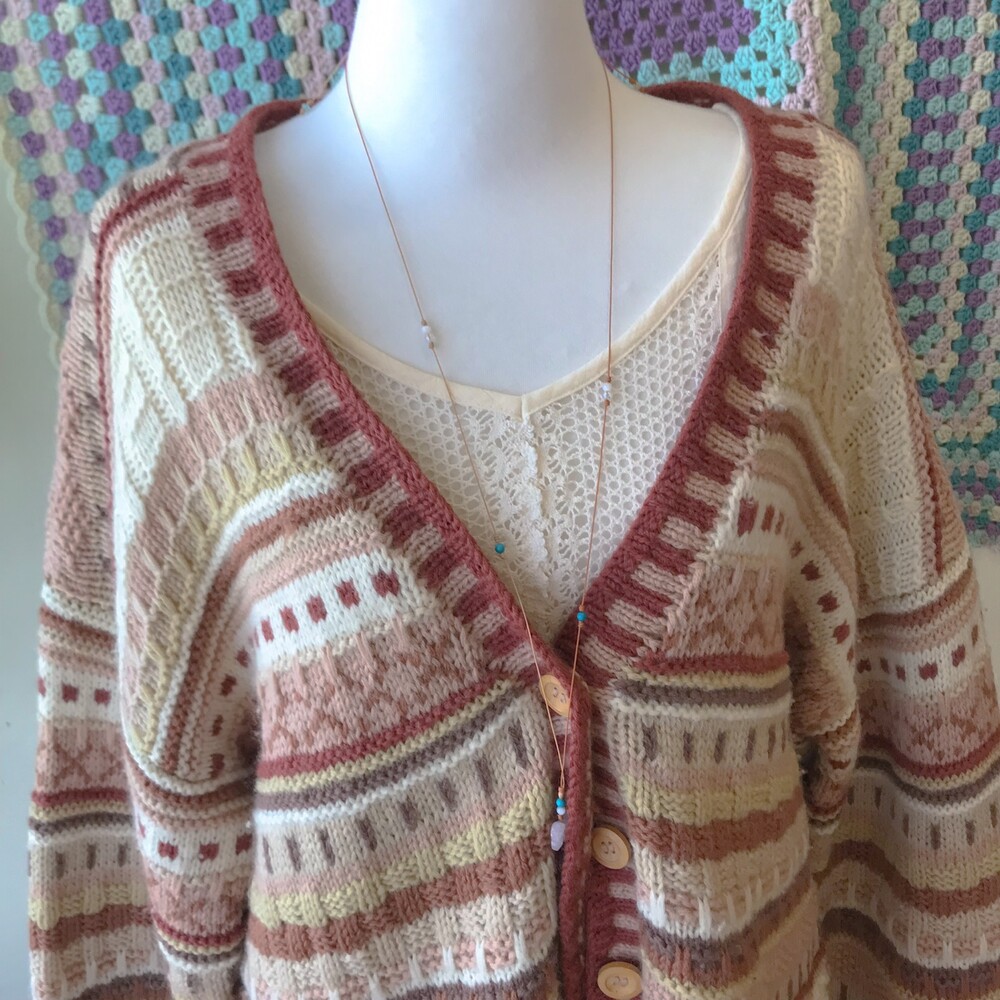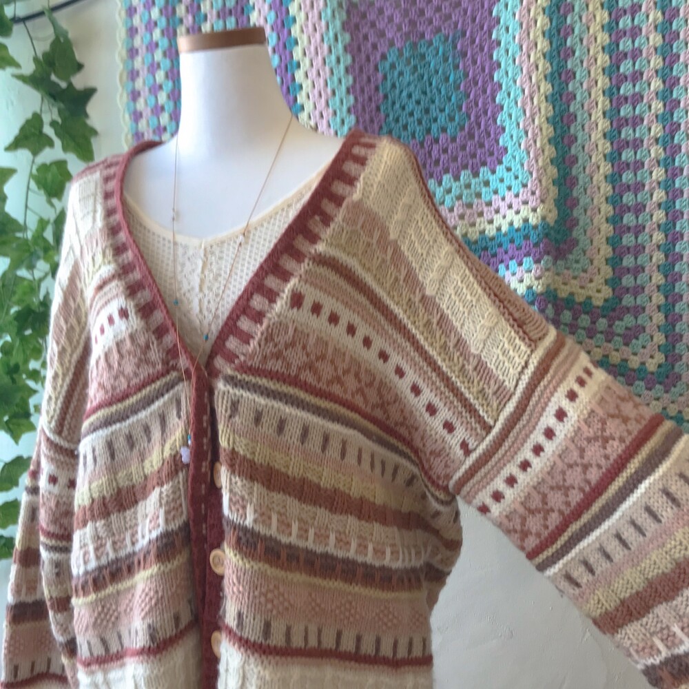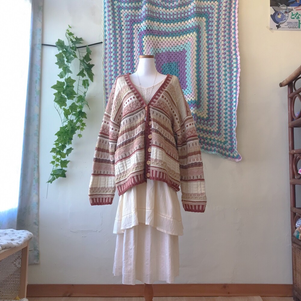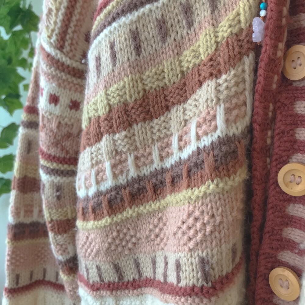 웜한 핑크 색감의 패턴 오버사이즈 가디건이에요