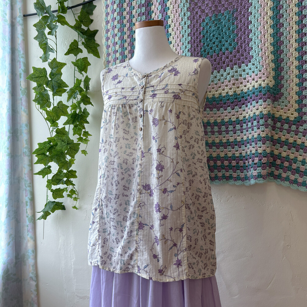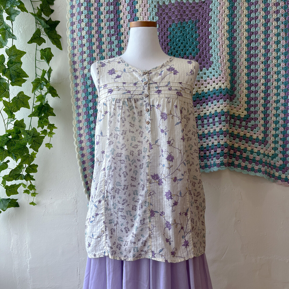 purple&blue flower patch sleeveless bl