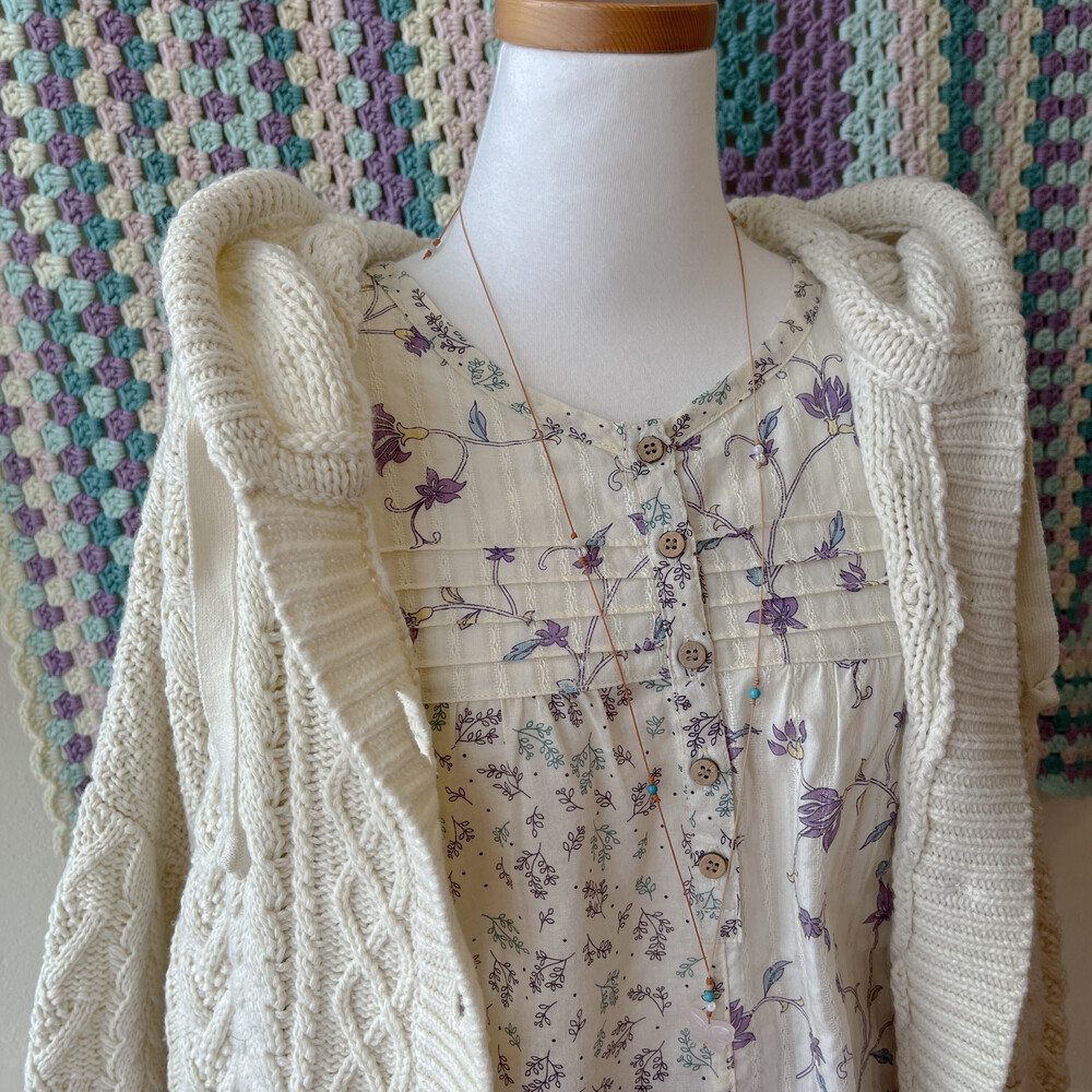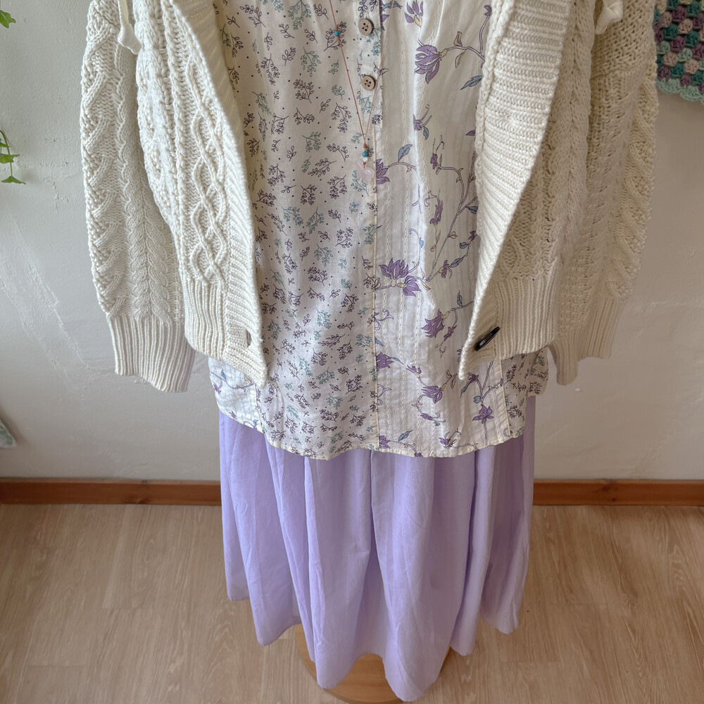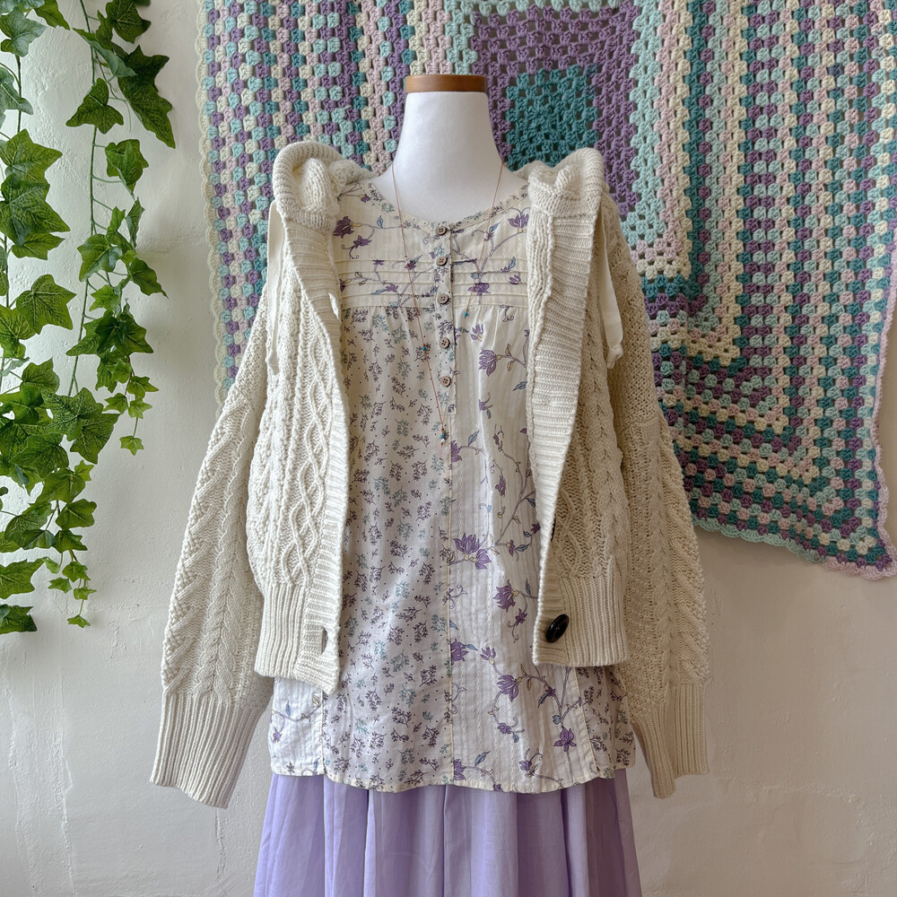 보라, 하늘색 꽃무늬가 가득한 패치워크 블라우스예요