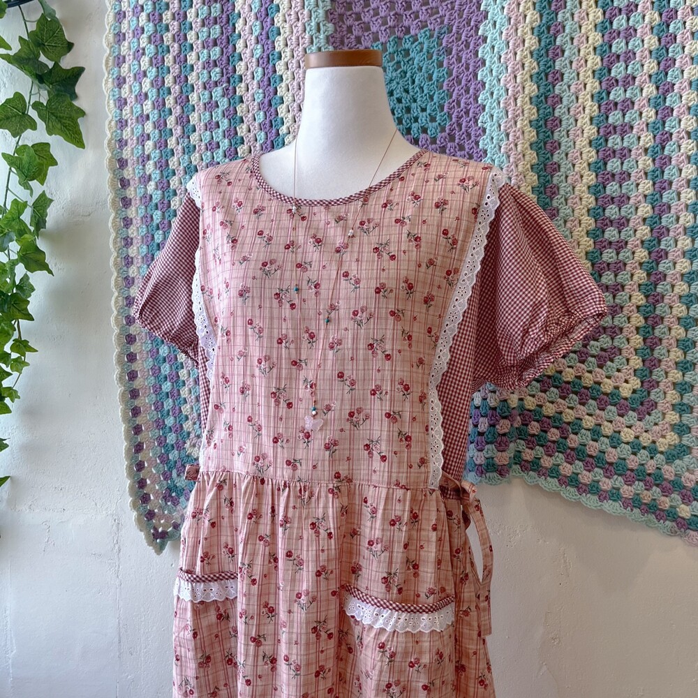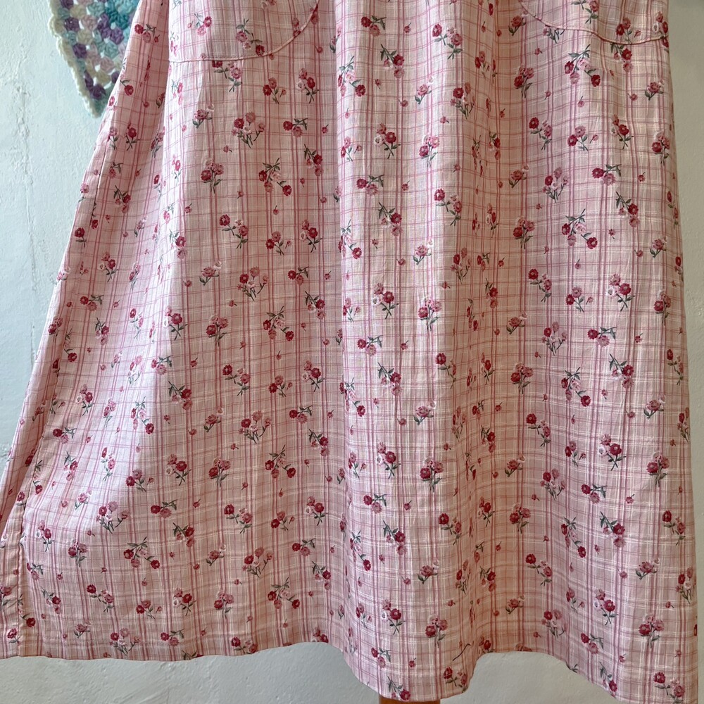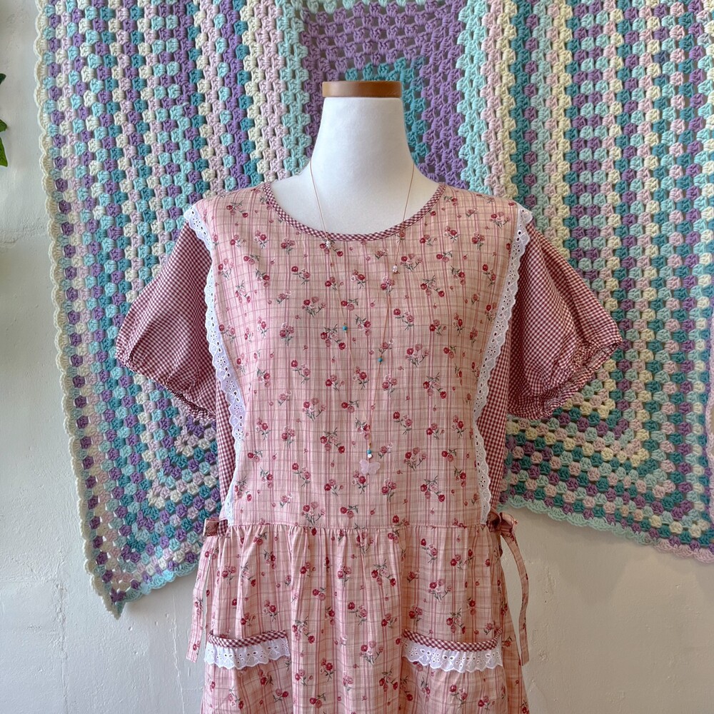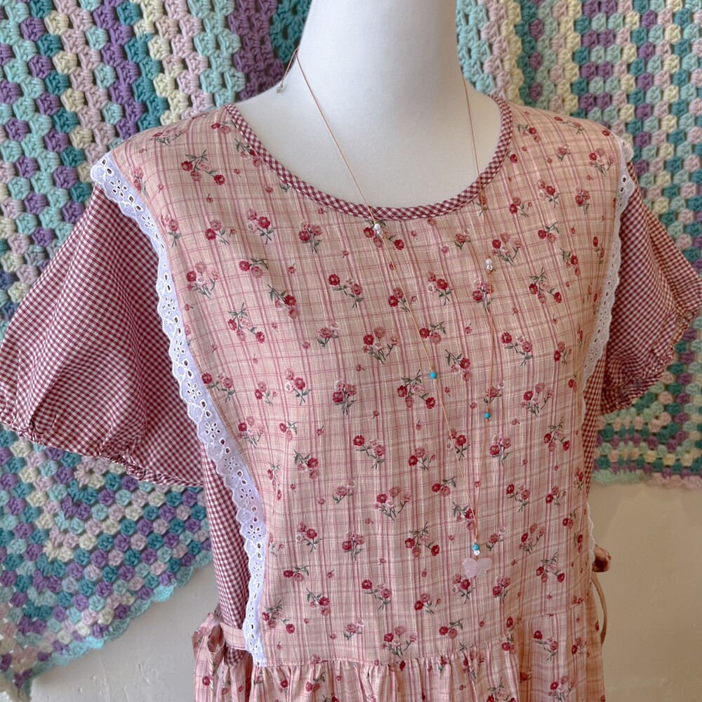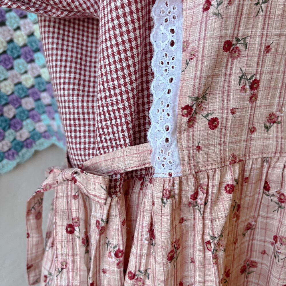 핑크, 레드 색감 조합의 코튼 원피스예요