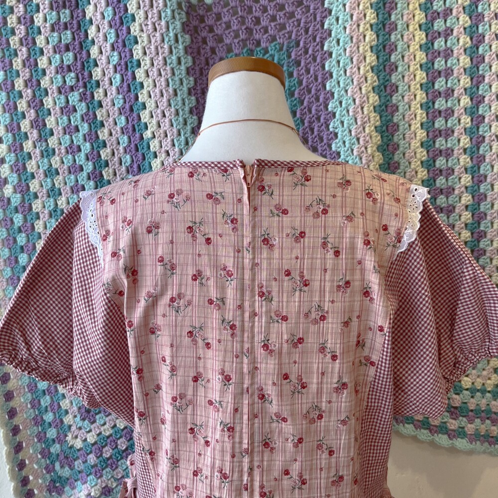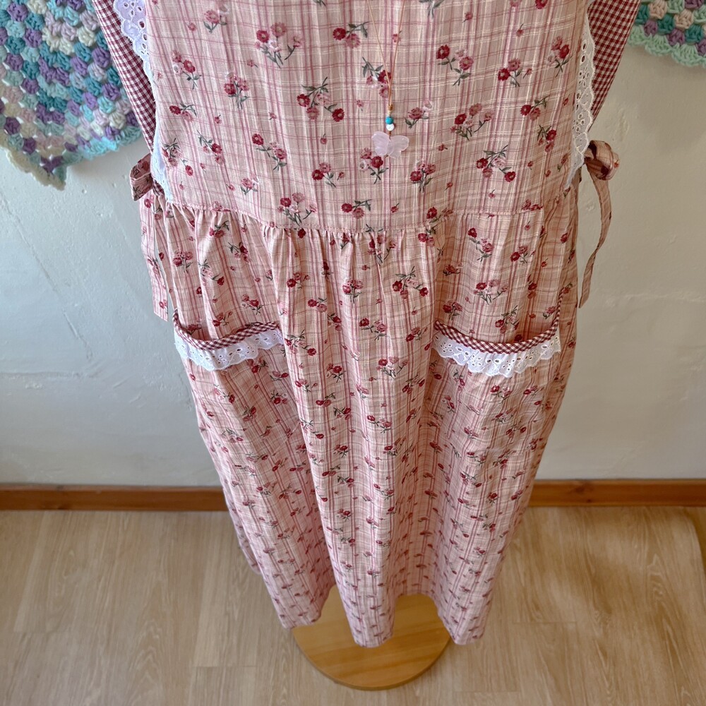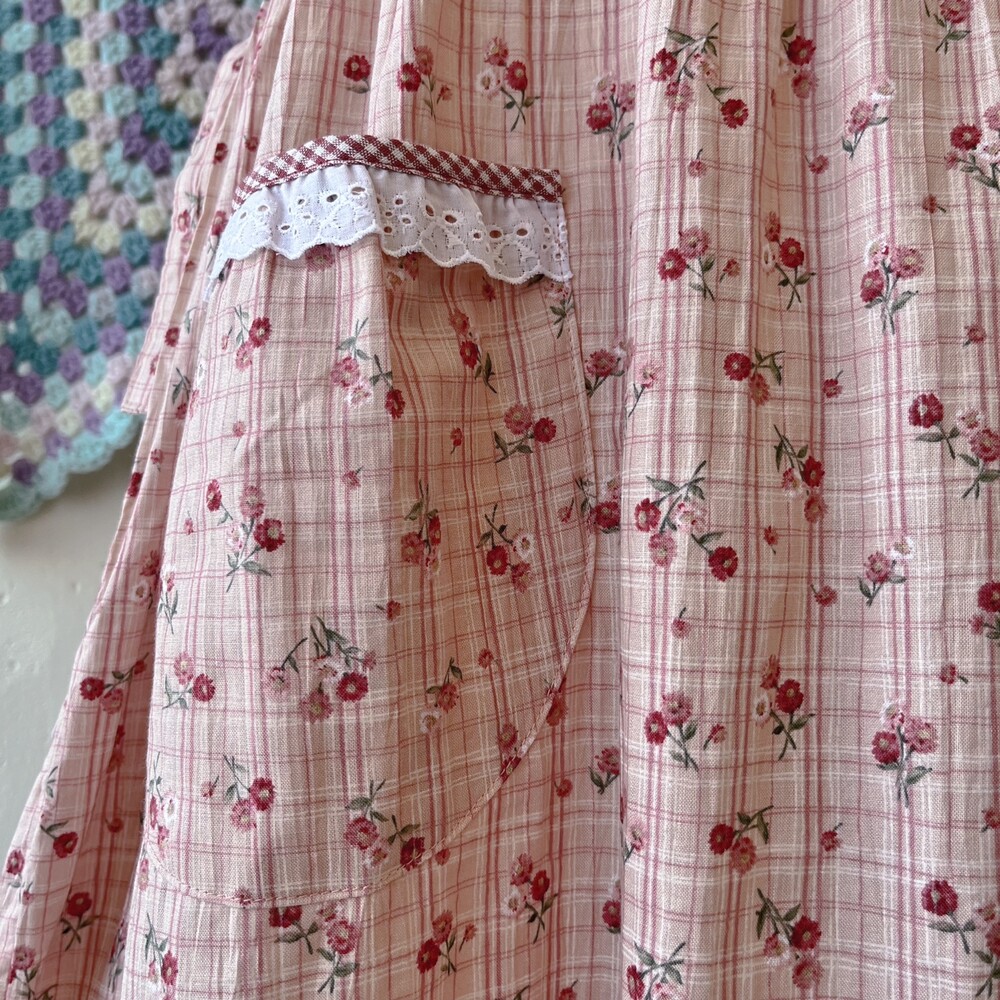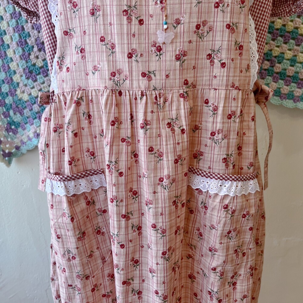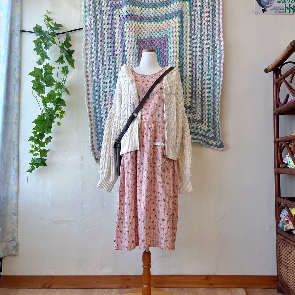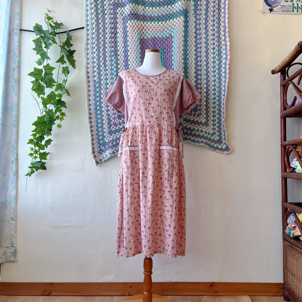 핑크, 레드 색감 조합의 코튼 원피스예요
