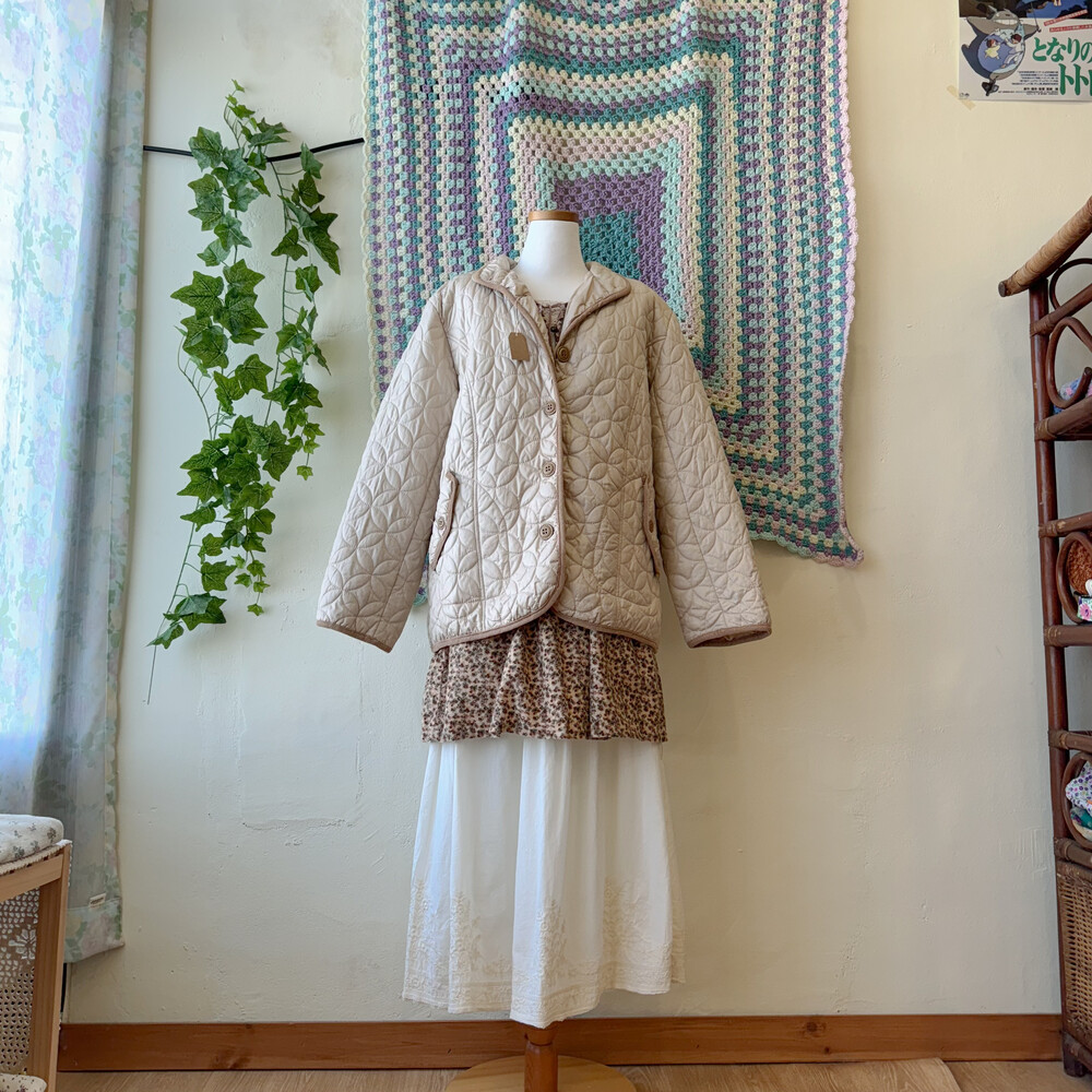 beige corduroy line point quilting jk