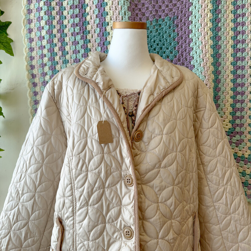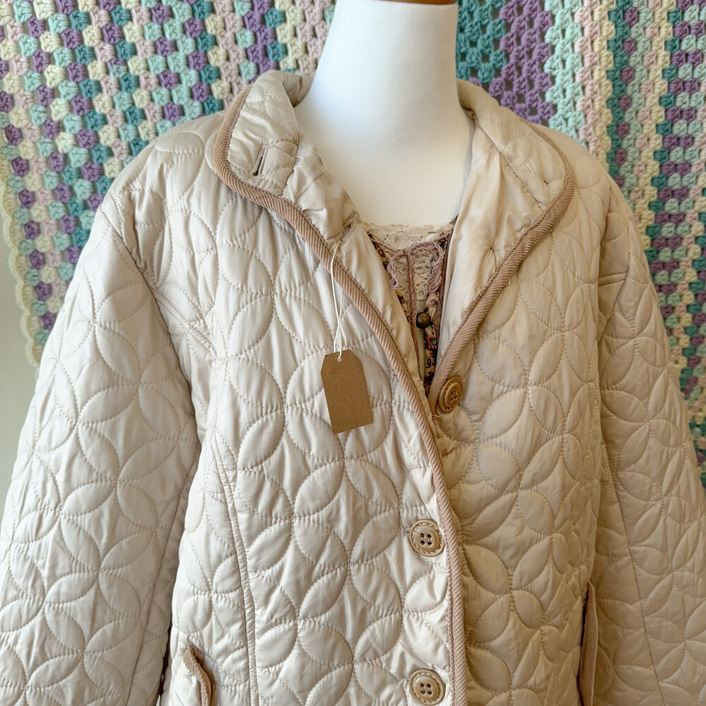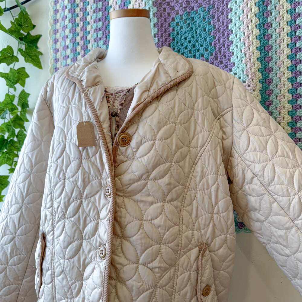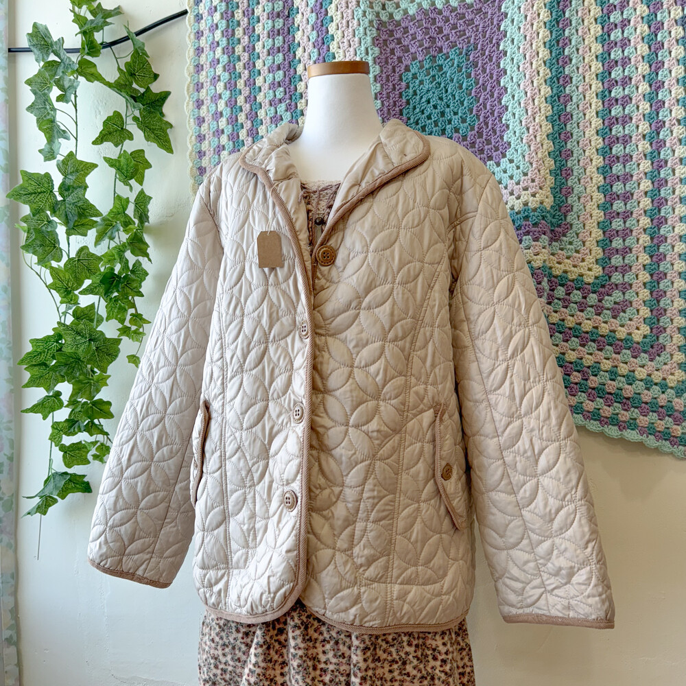 연베이지 색감의 퀼팅 자켓이에요