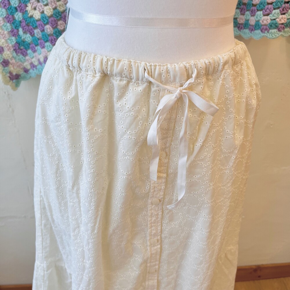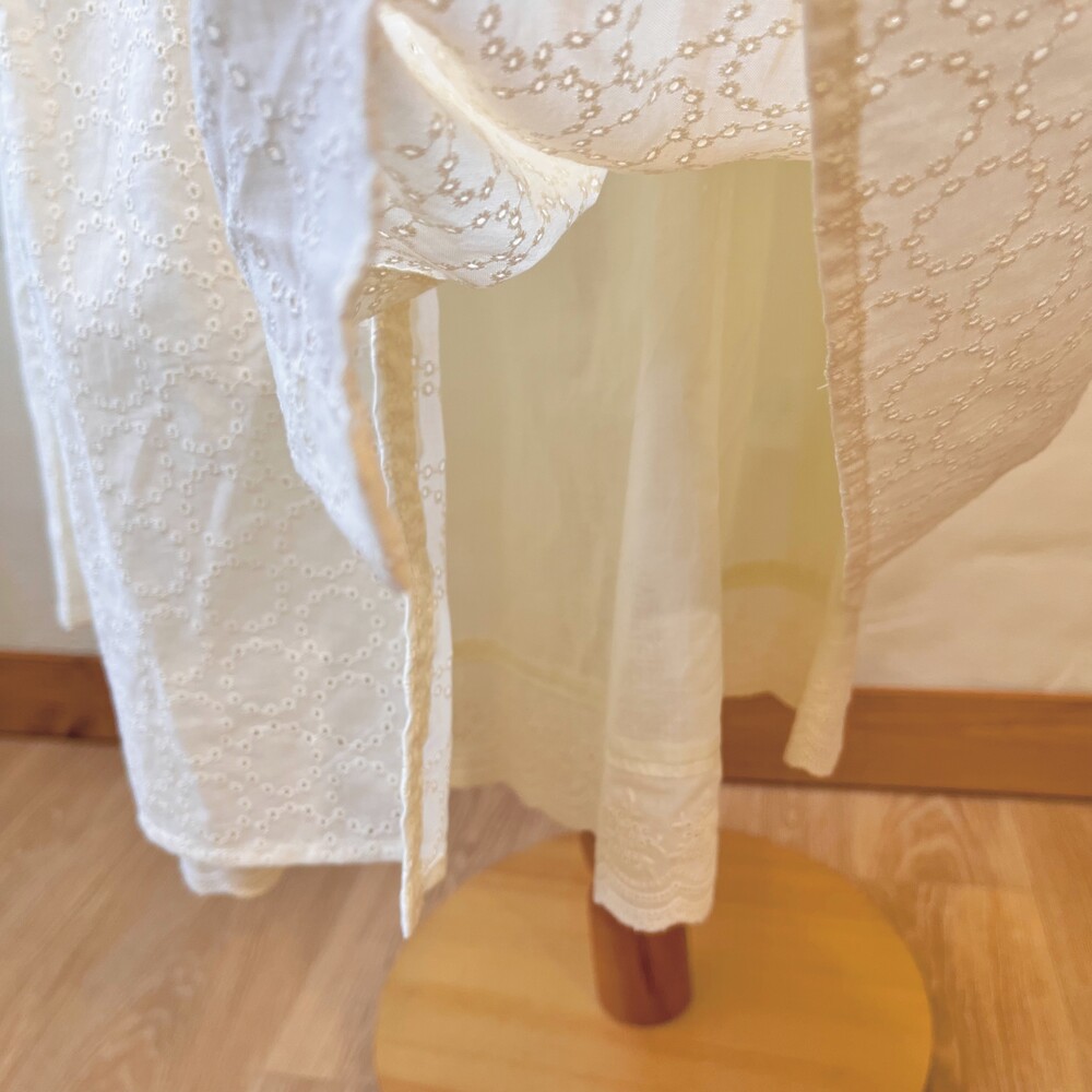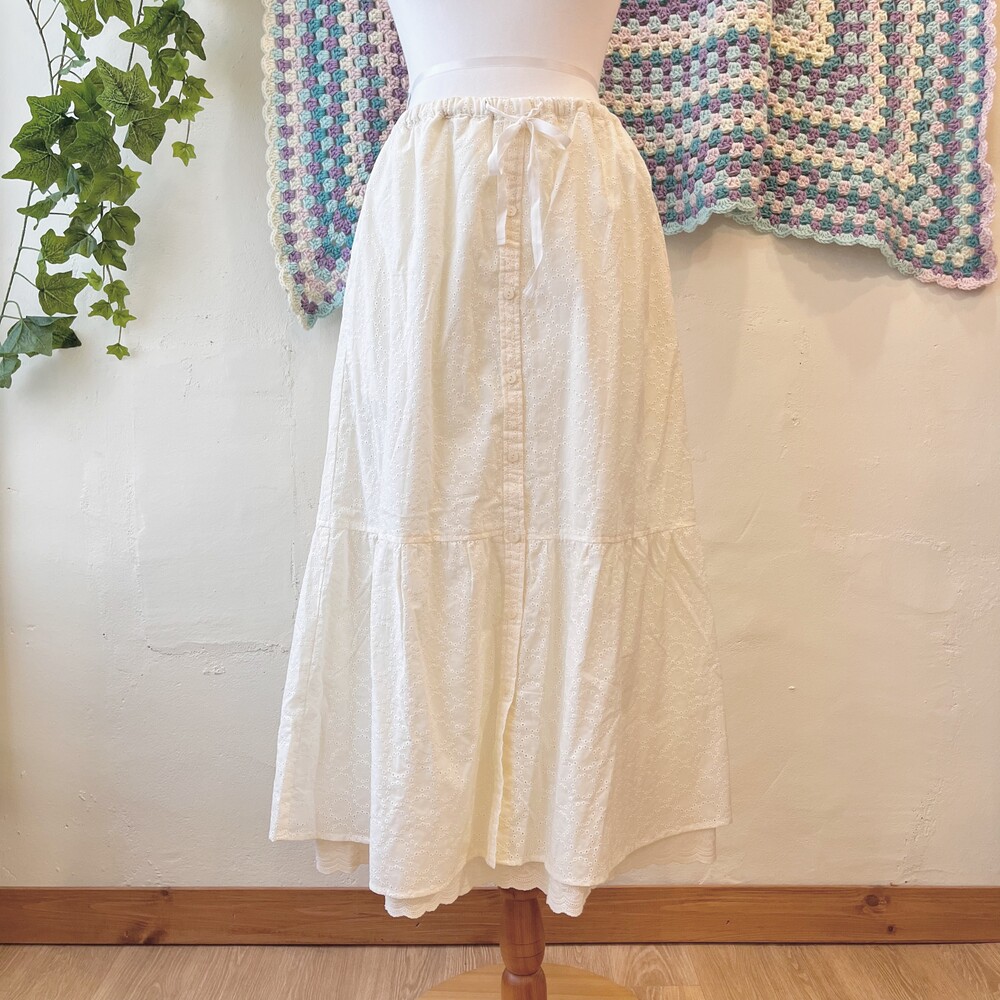 아이보리 색감의 펀칭 롱스커트예요