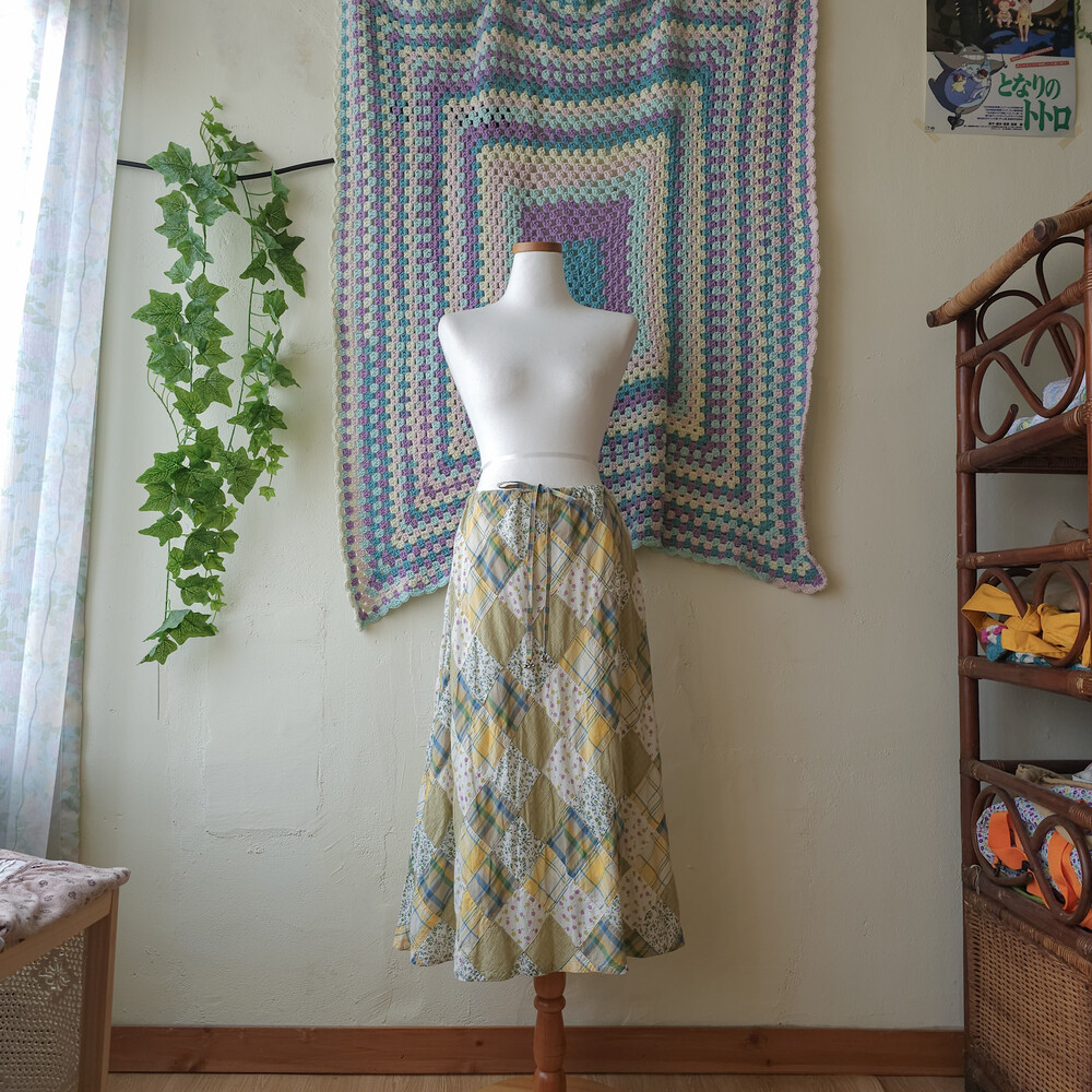 그리너리한 분위기의 코튼 패치워크 스커트예요