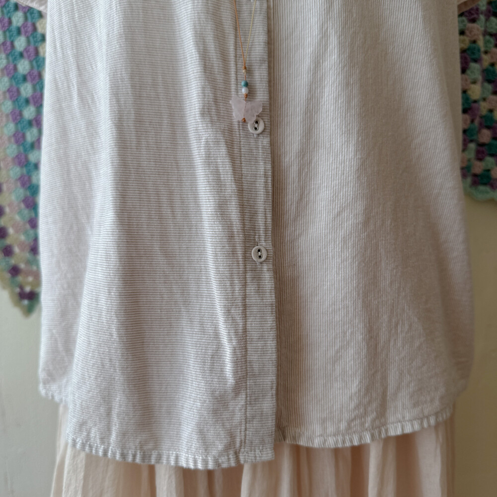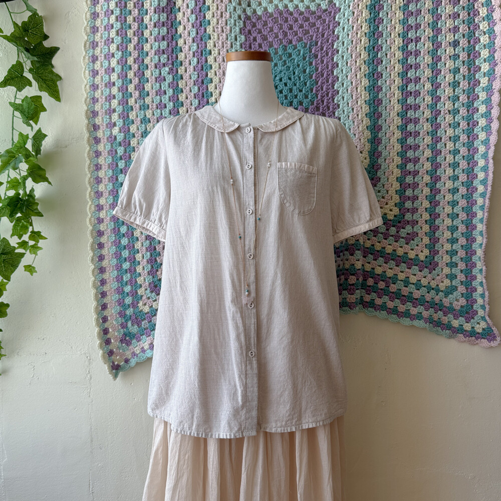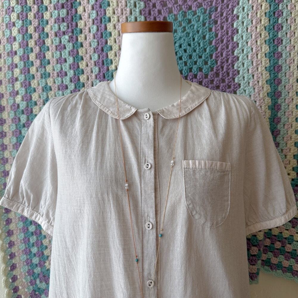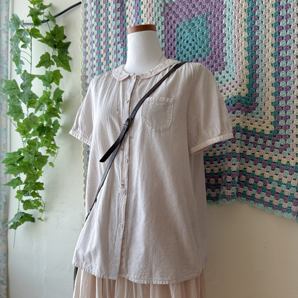 잔세로 스트라이프 디자인의 카라 블라우스예요
