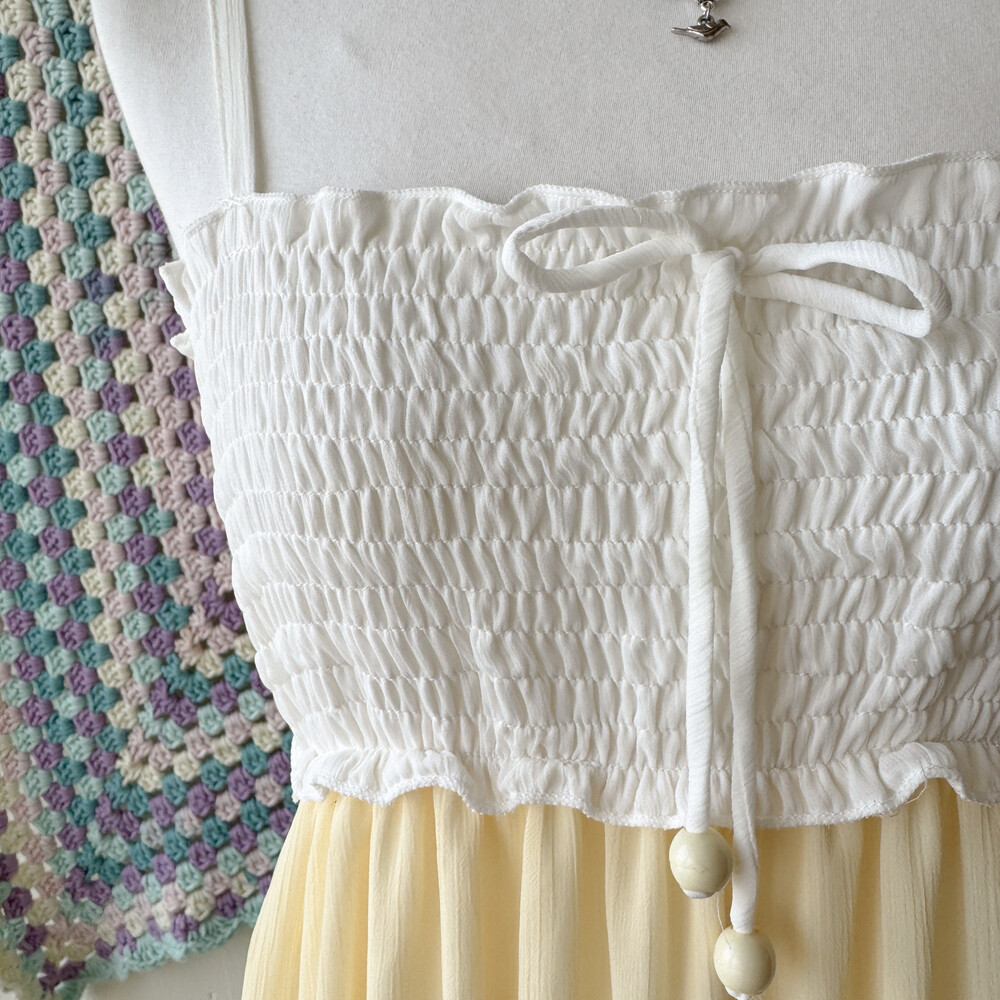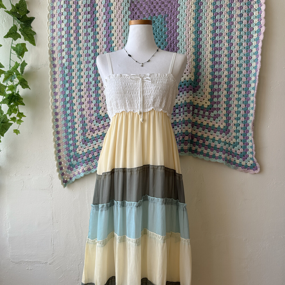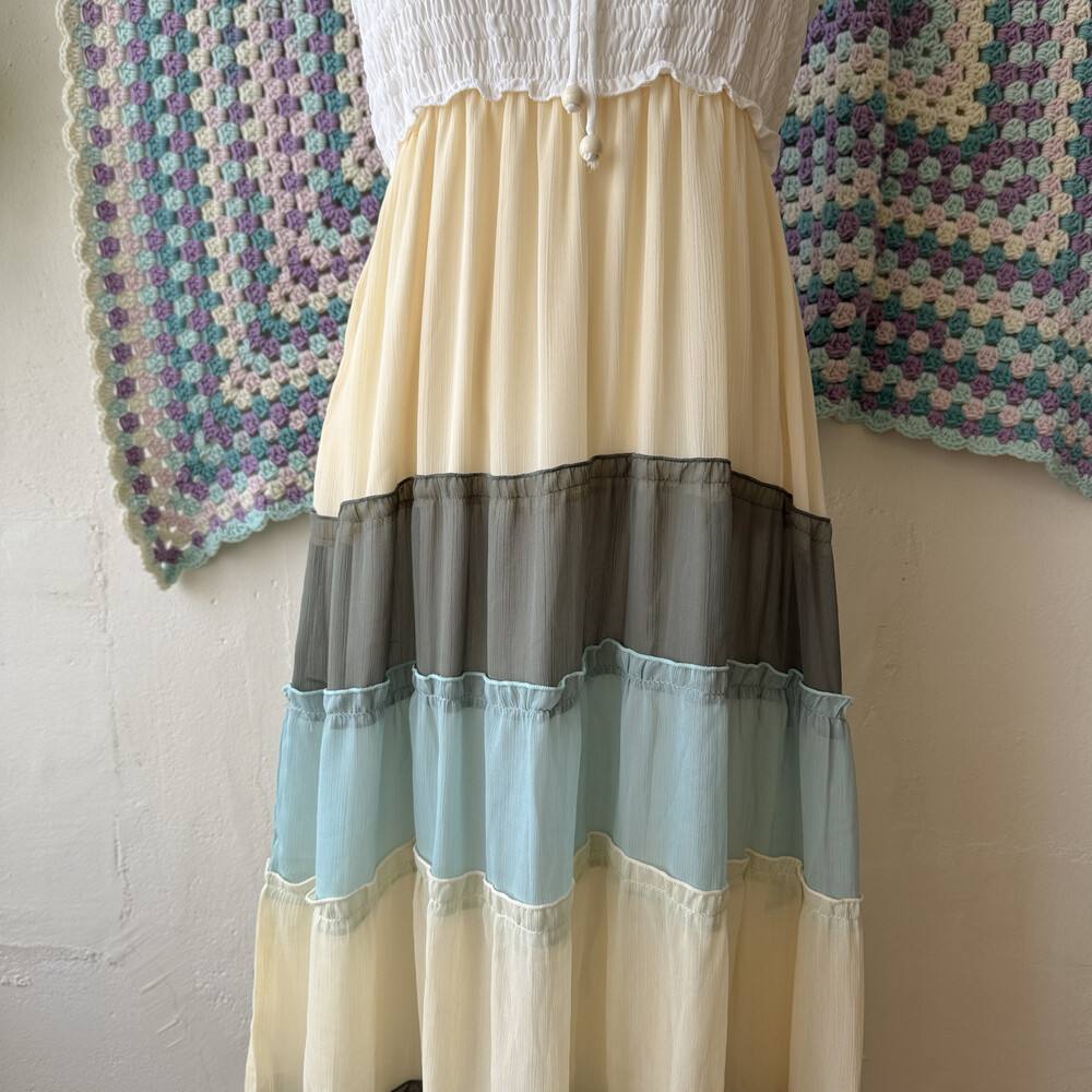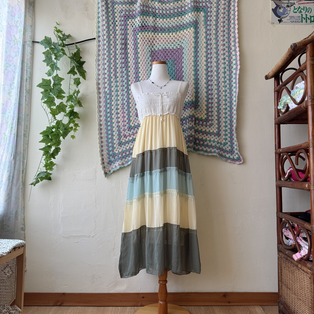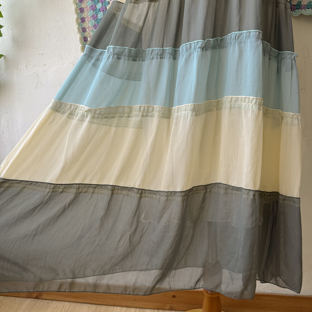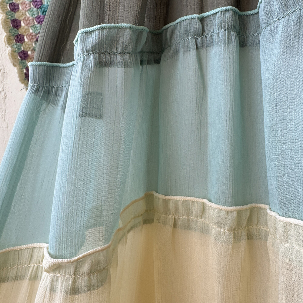 butter&khaki&sky blue chiffon patch ops