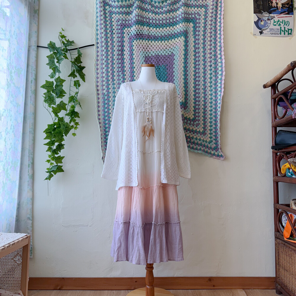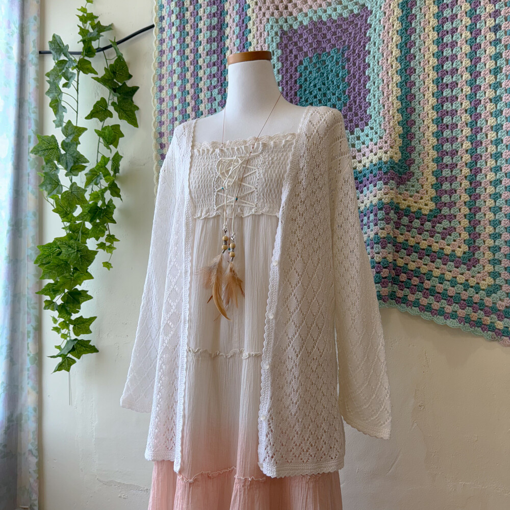 밝은 아이보리 색감의 펀칭 가디건이에요