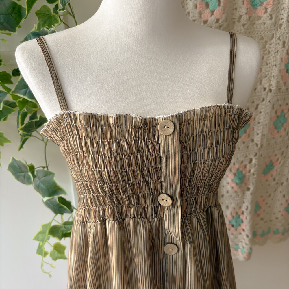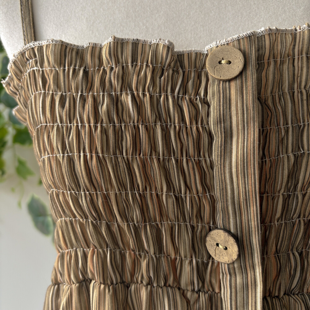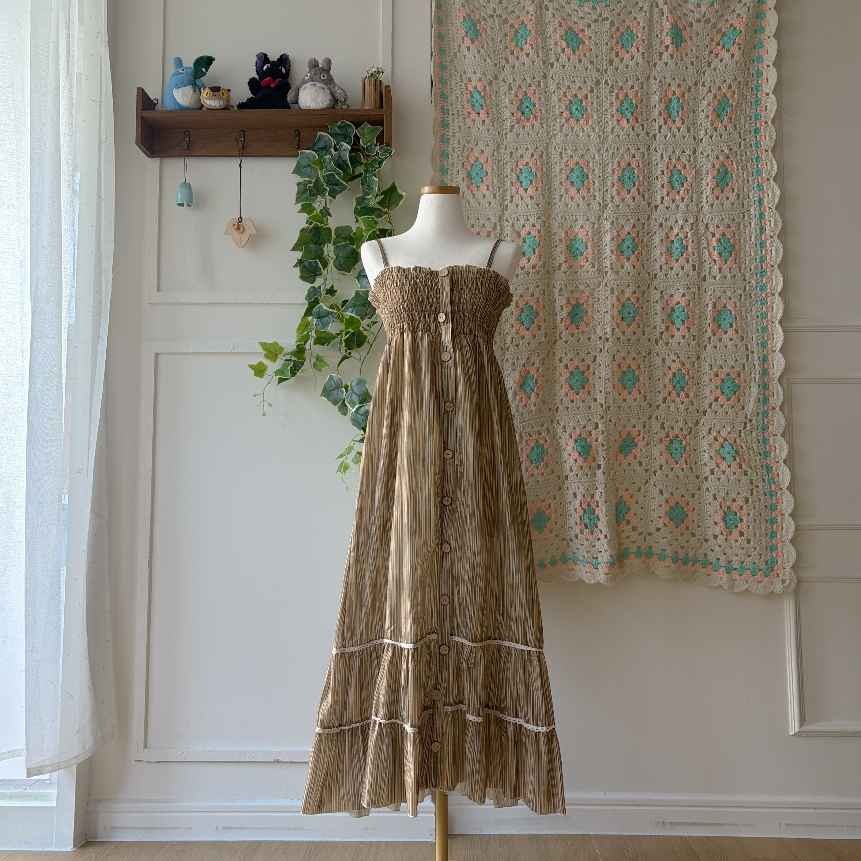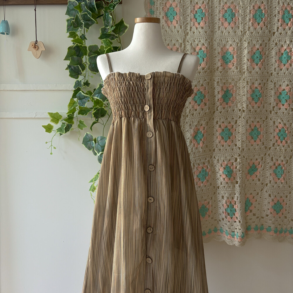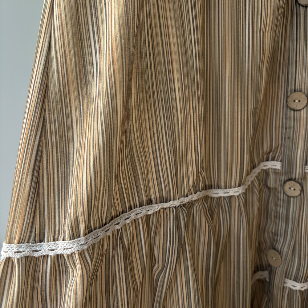 세로 스트라이프 패턴의 코튼 끈원피스예요