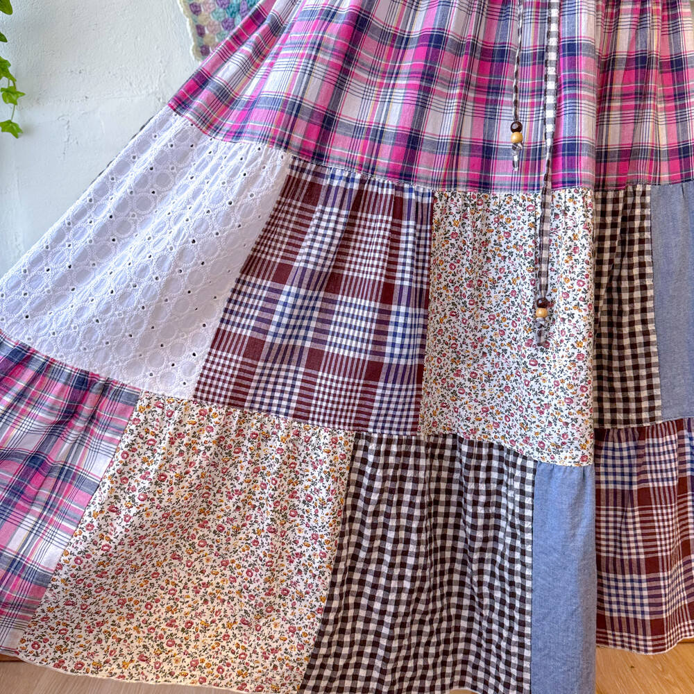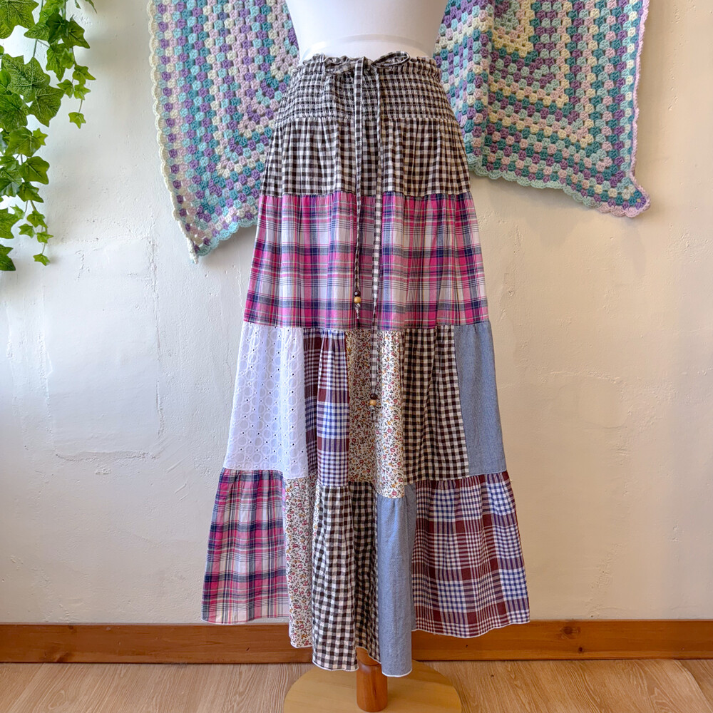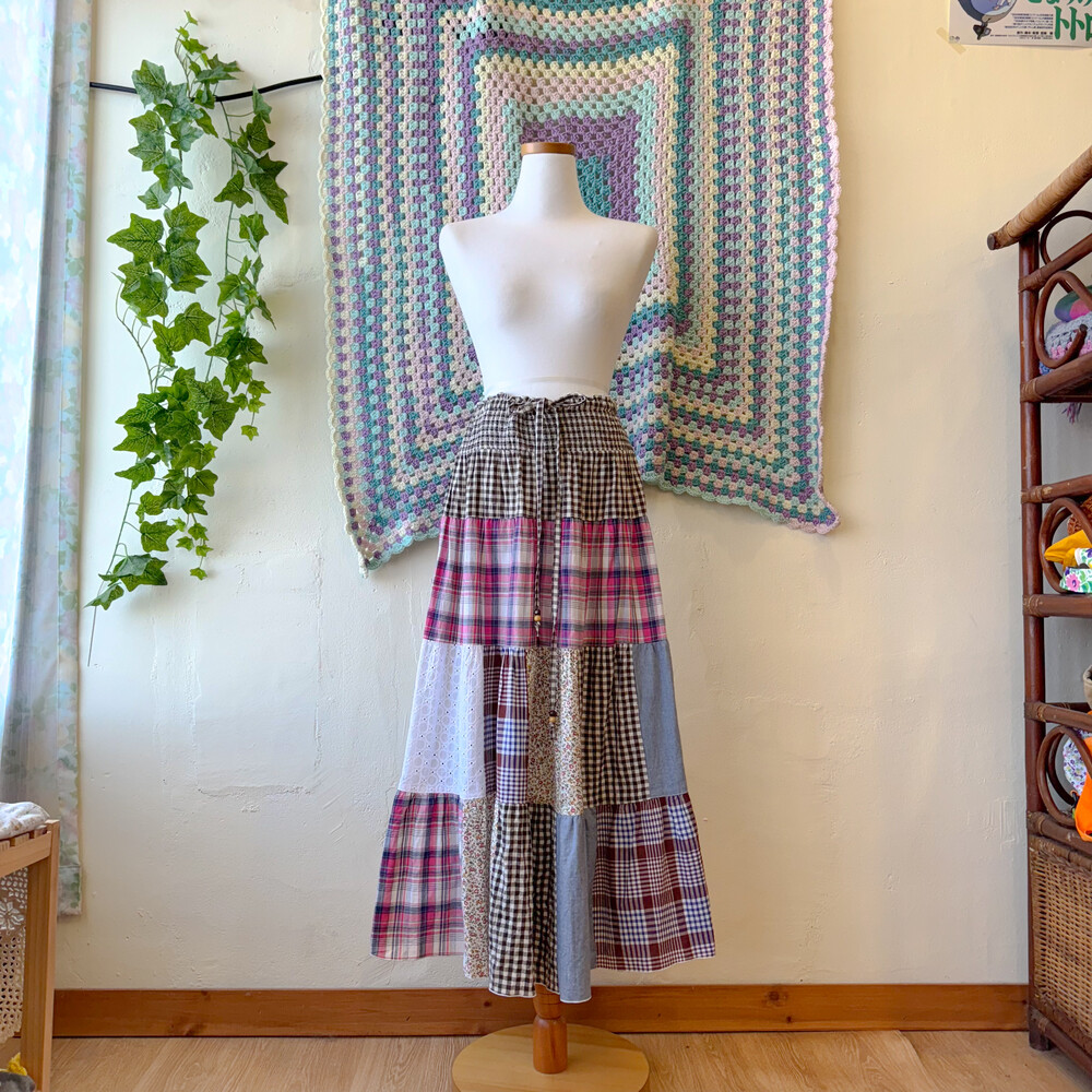 체크, 꽃무늬 패턴의 패치 스커트예요