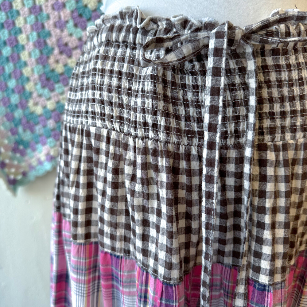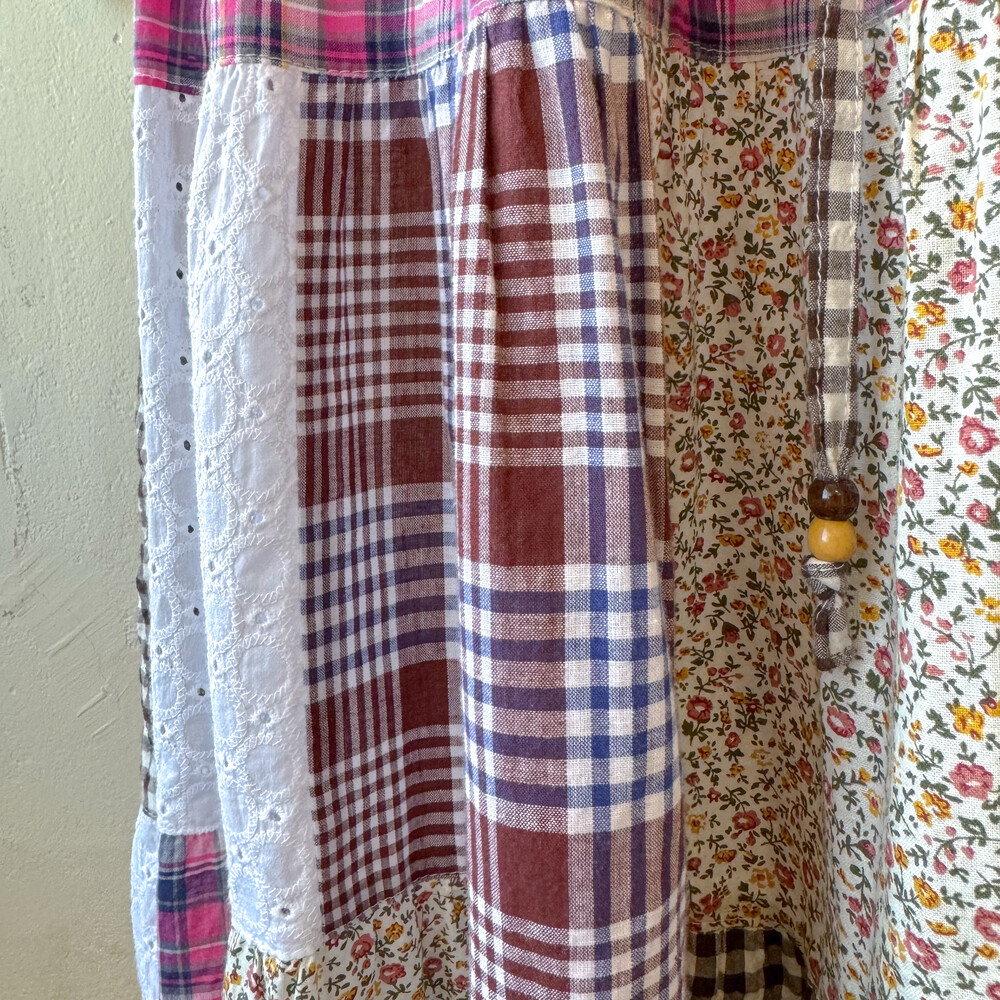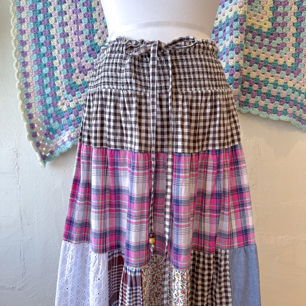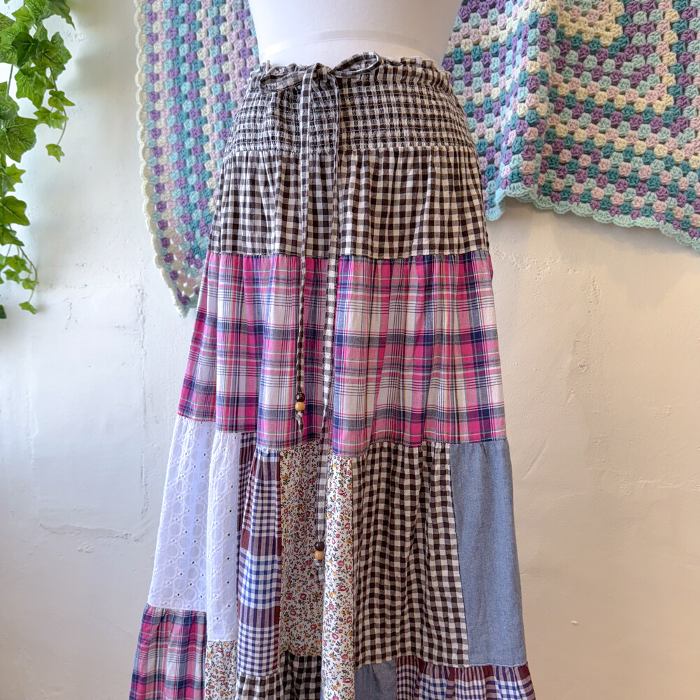 체크, 꽃무늬 패턴의 패치 스커트예요