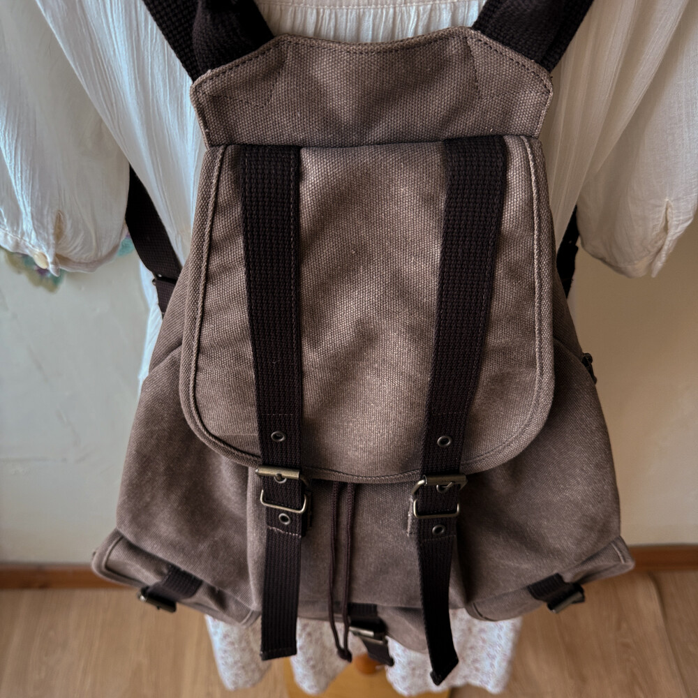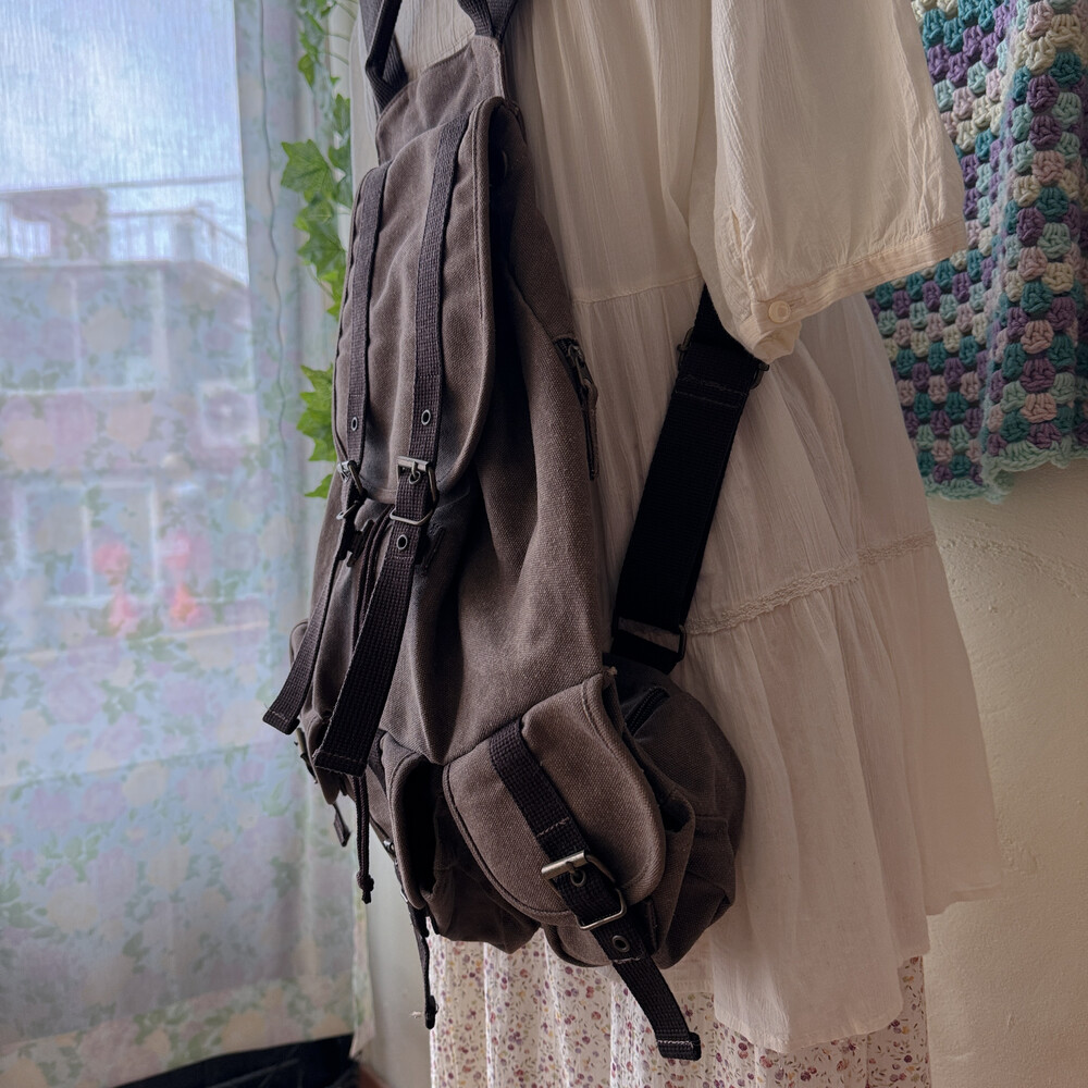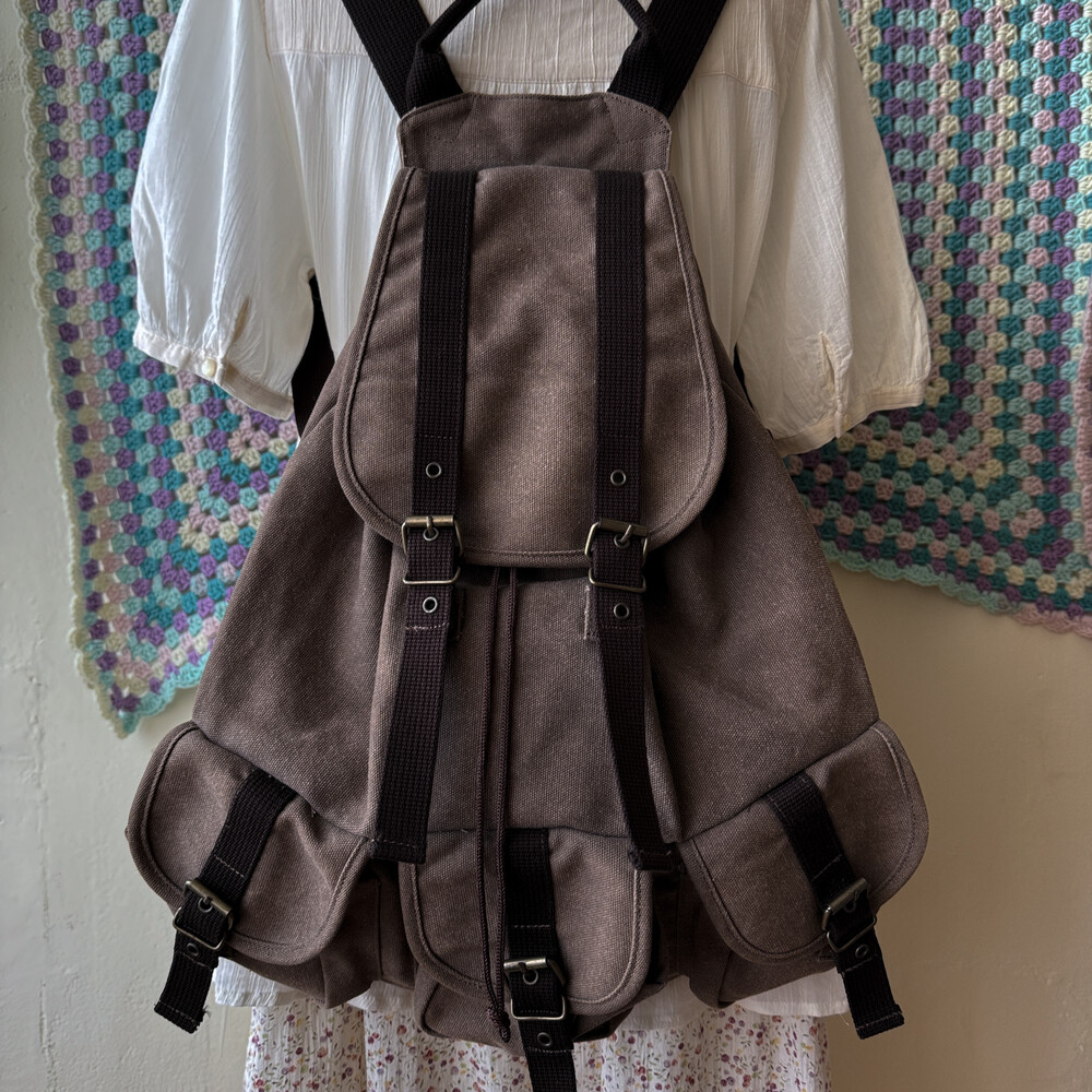 초콜릿 색감의 3 포켓 백팩이에요