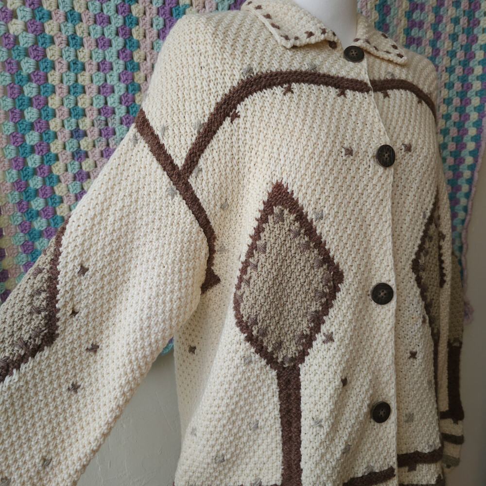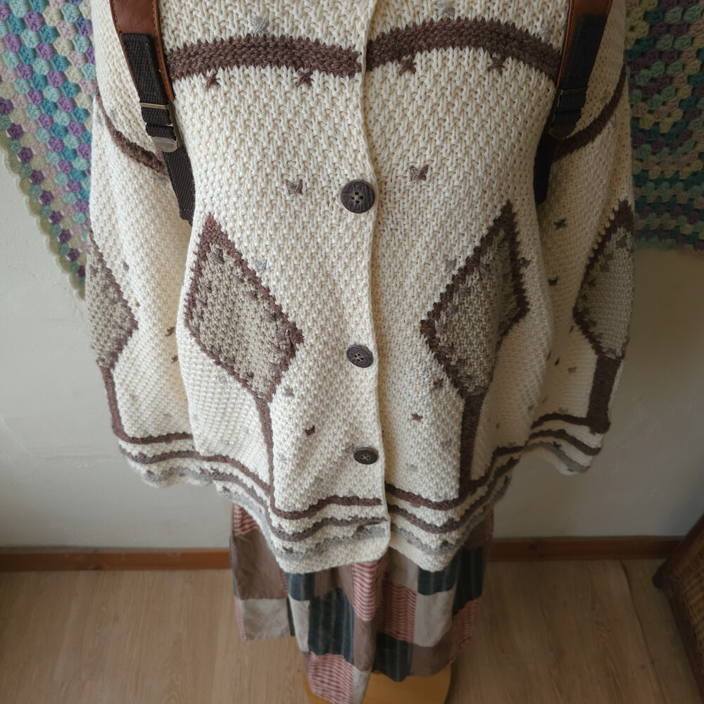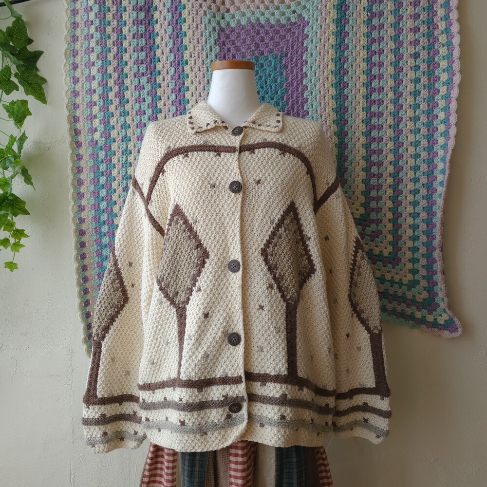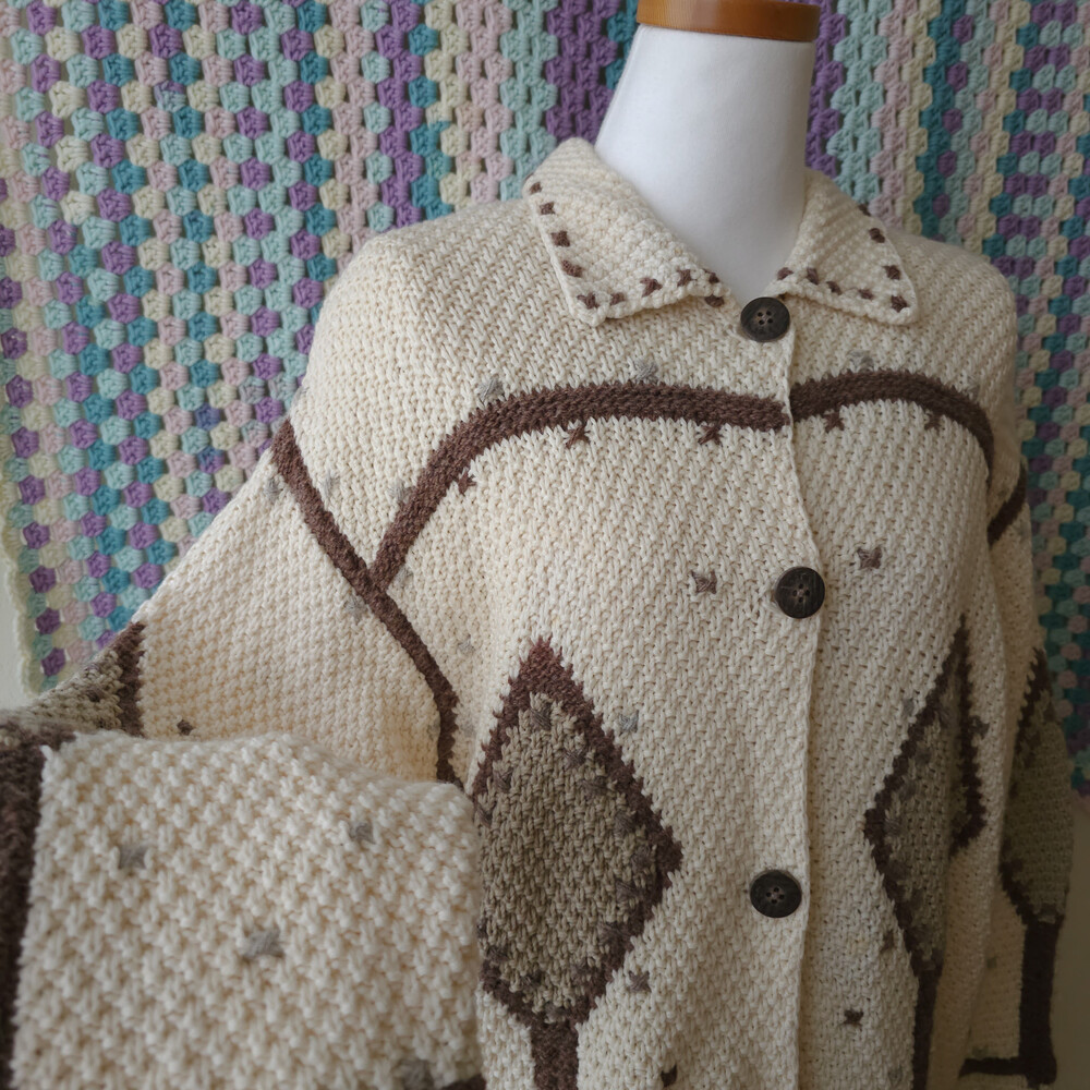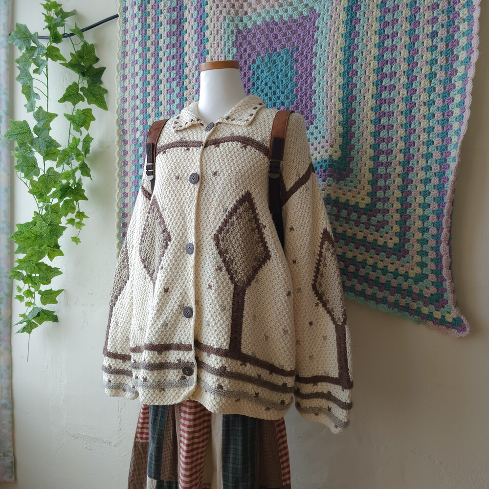아이보리 색감의 나무 패턴 카라 가디건이에요