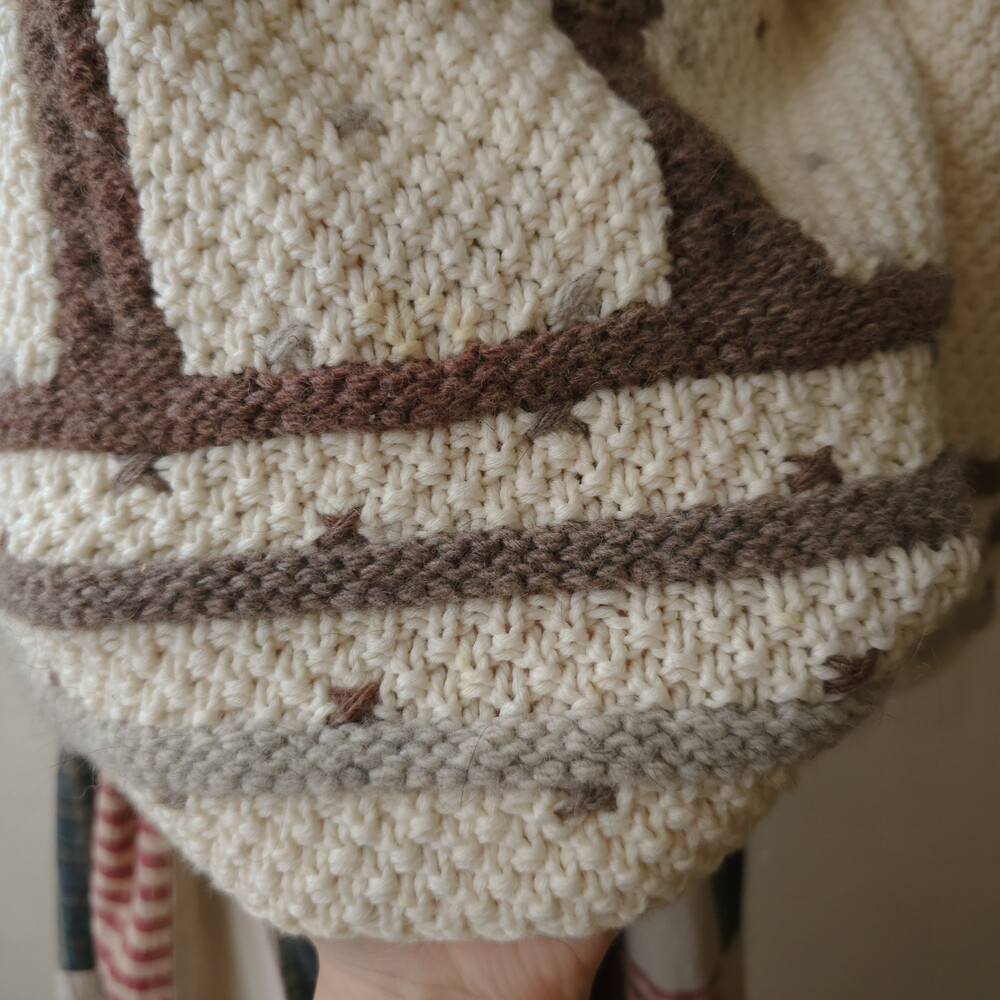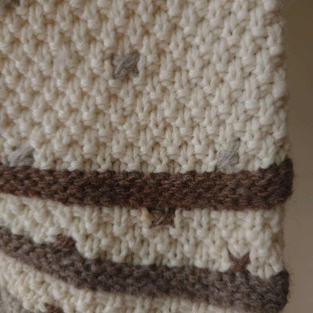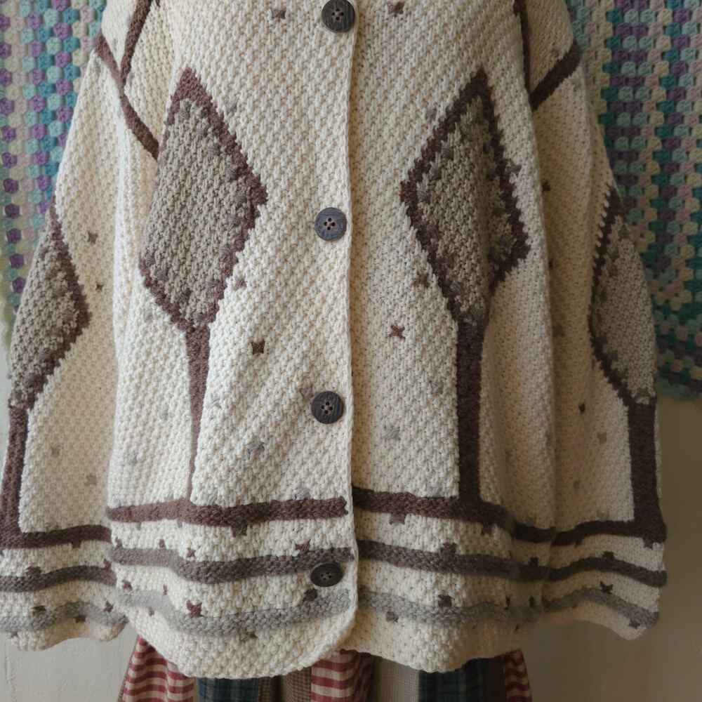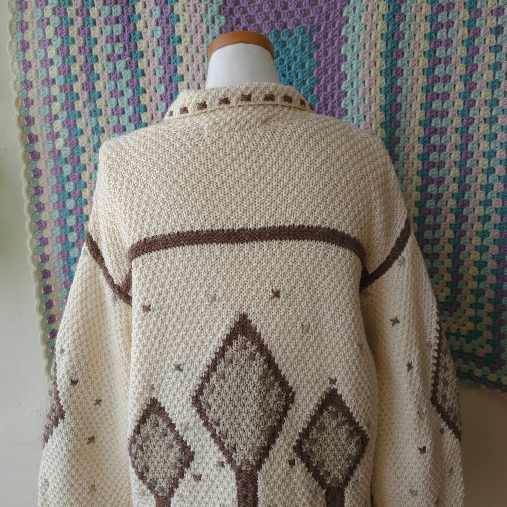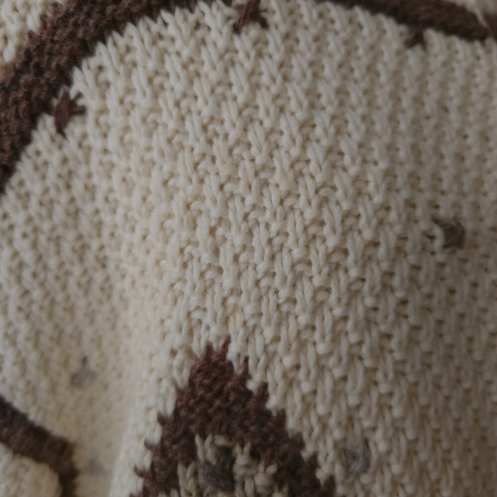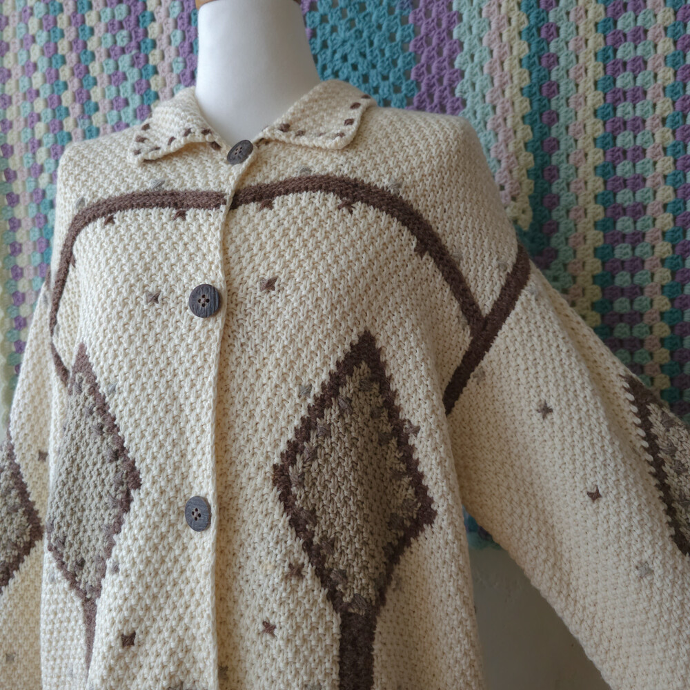 아이보리 색감의 나무 패턴 카라 가디건이에요