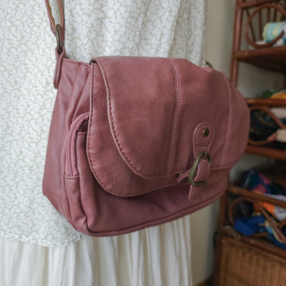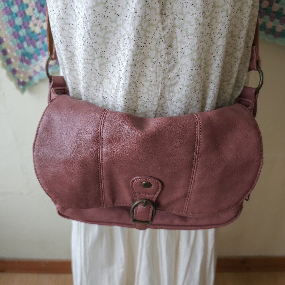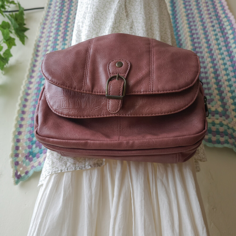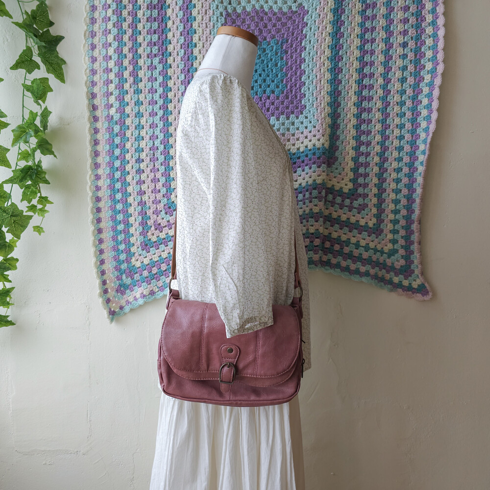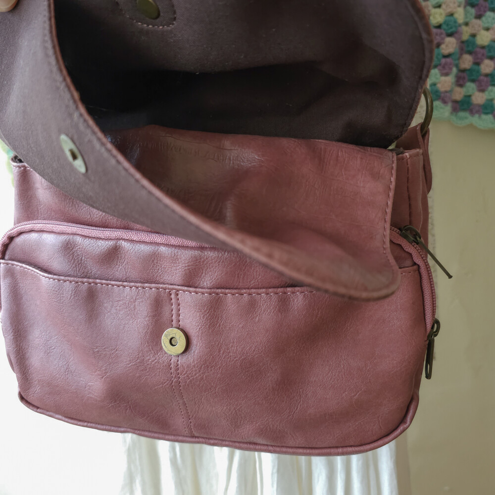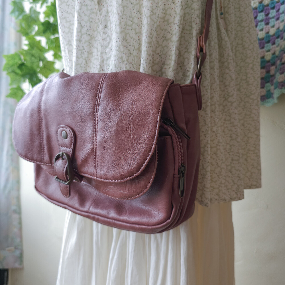 인디핑크와 팥죽색이 섞인 색감의 크로스백이에요